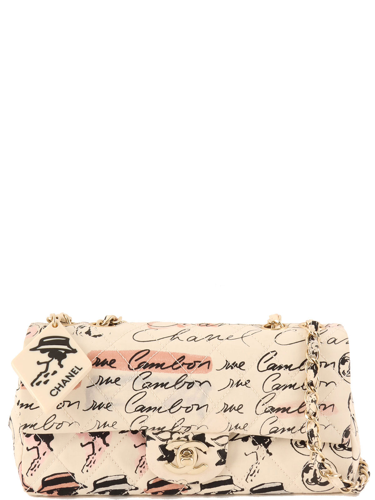 Circa 2005 Cotton CC Turnlock Mademoiselle Mirror Charm Chain Bag in Ivory/Multi