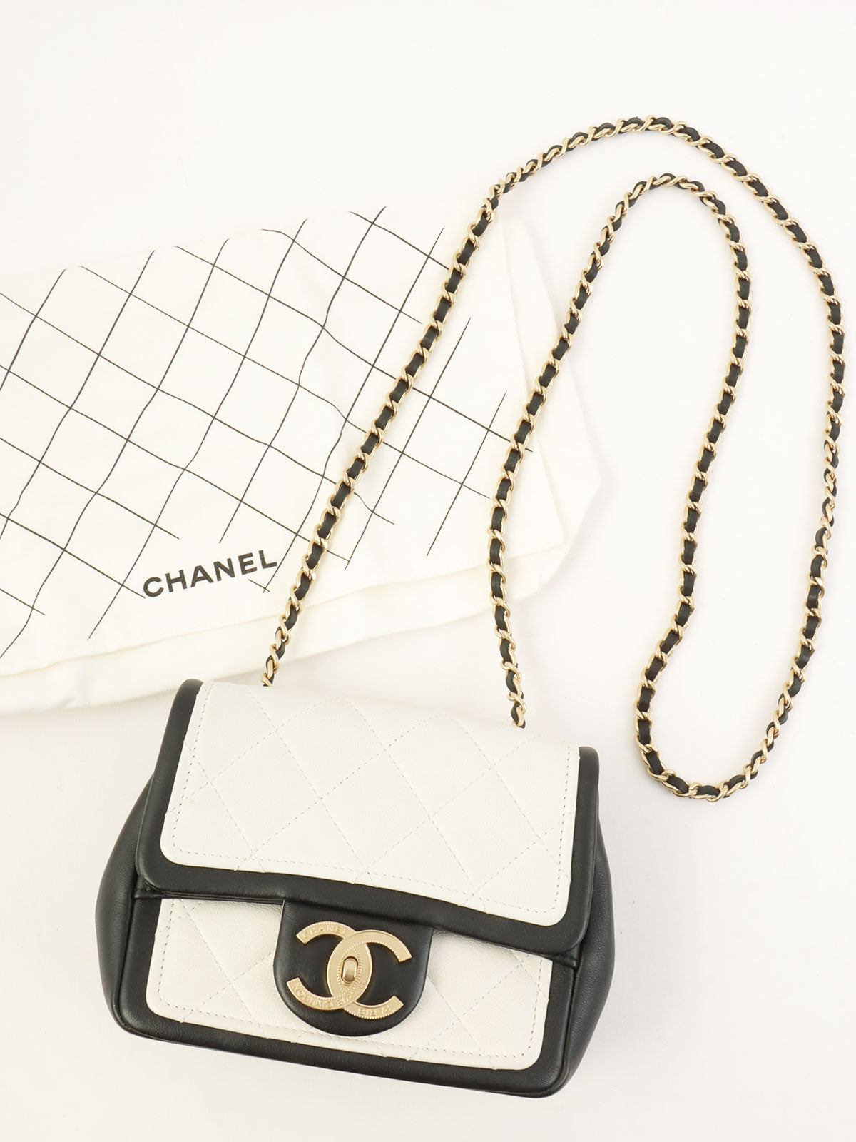 Made in 2014, Mini Two-Tone CC Mark Plate Chain Shoulder Bag, White/Black