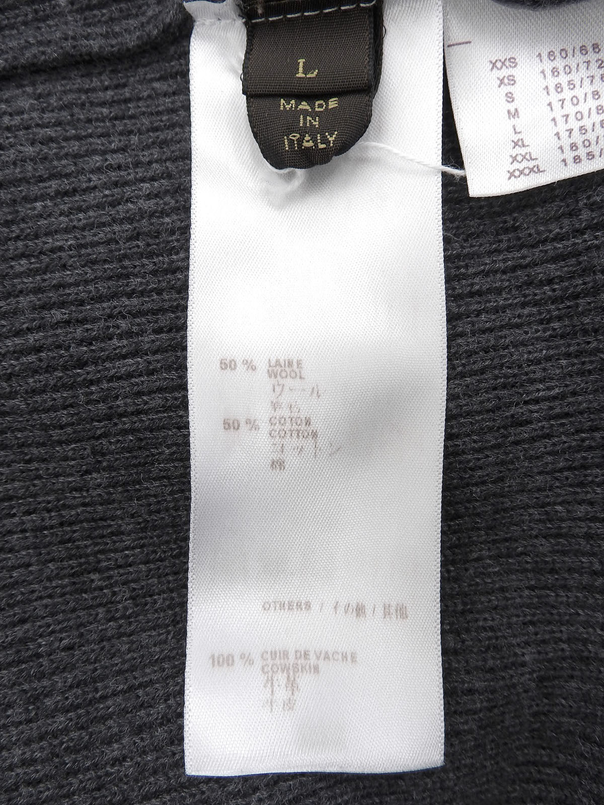 Logo-embossed shawl neck knit sweater in charcoal gray