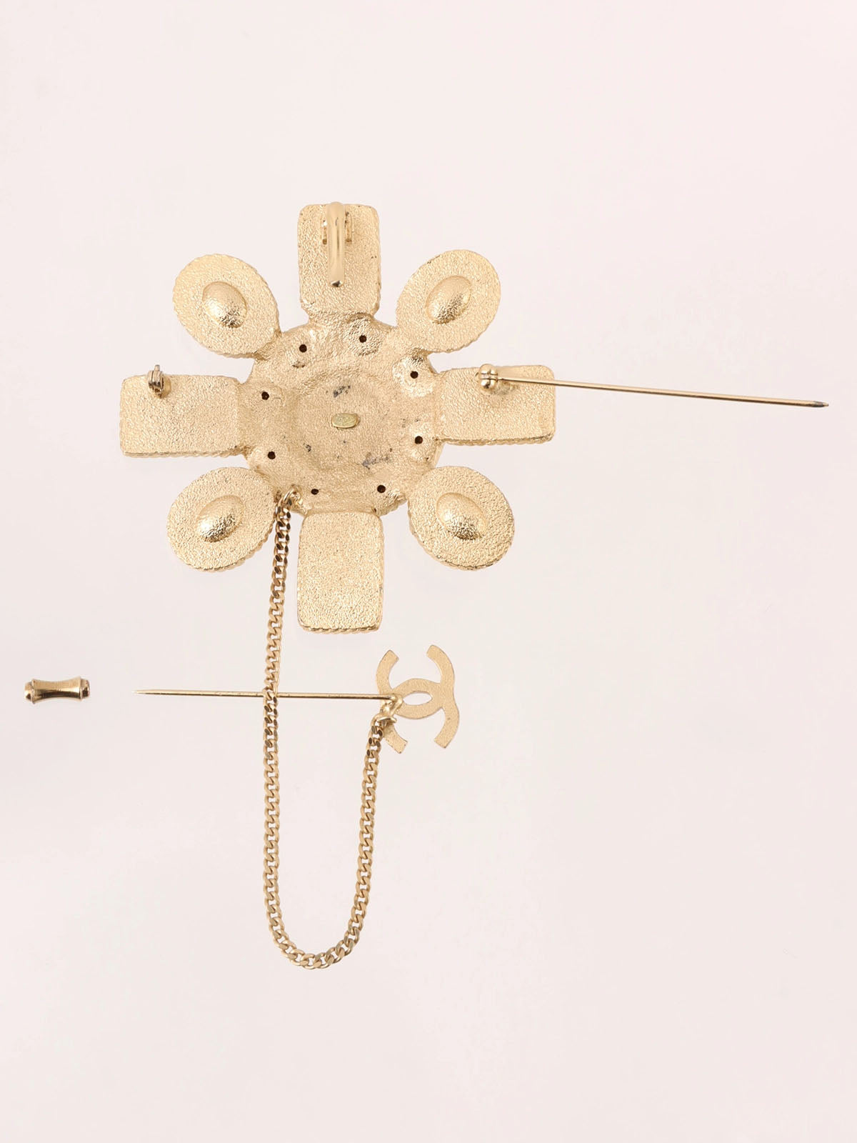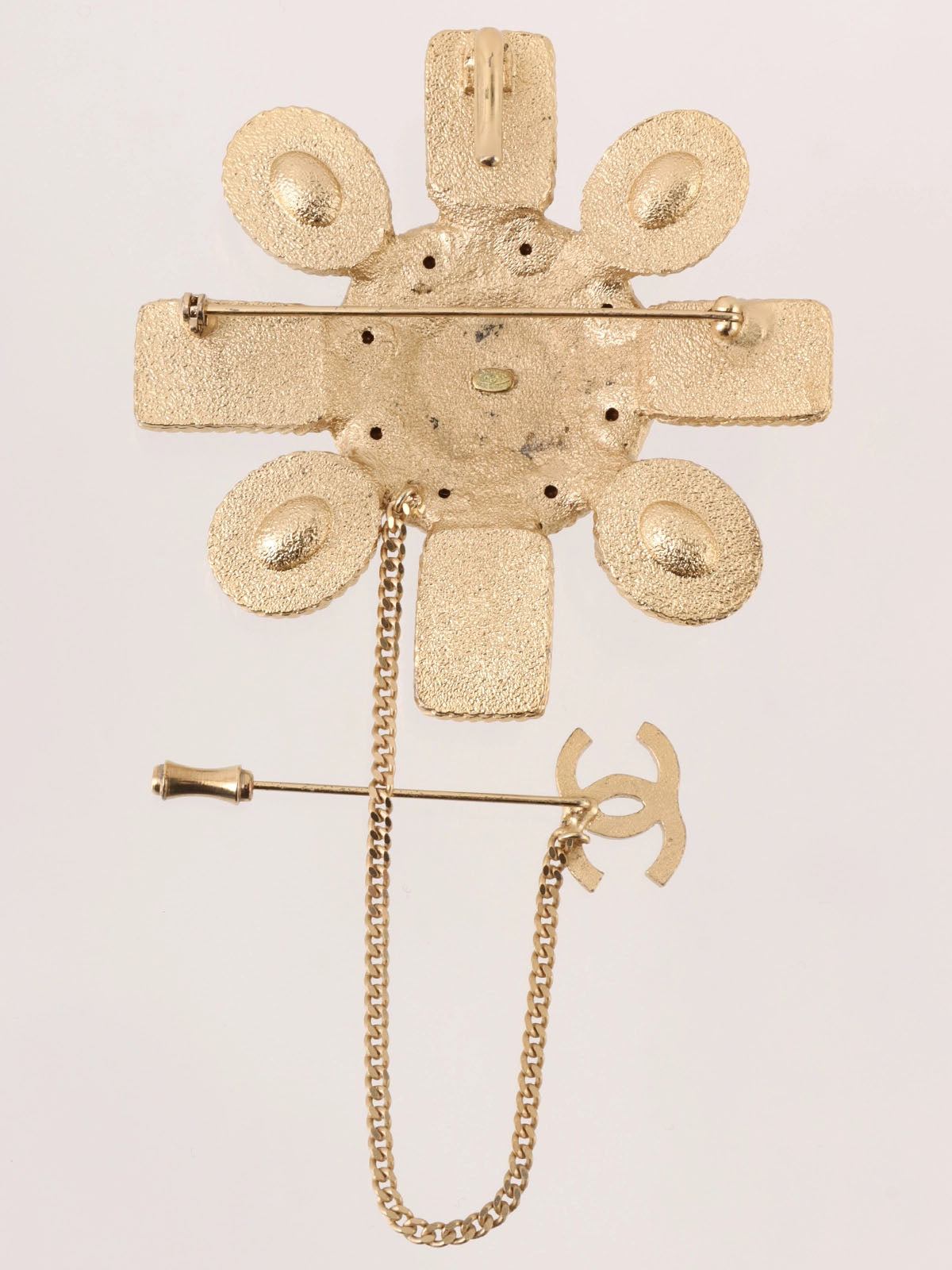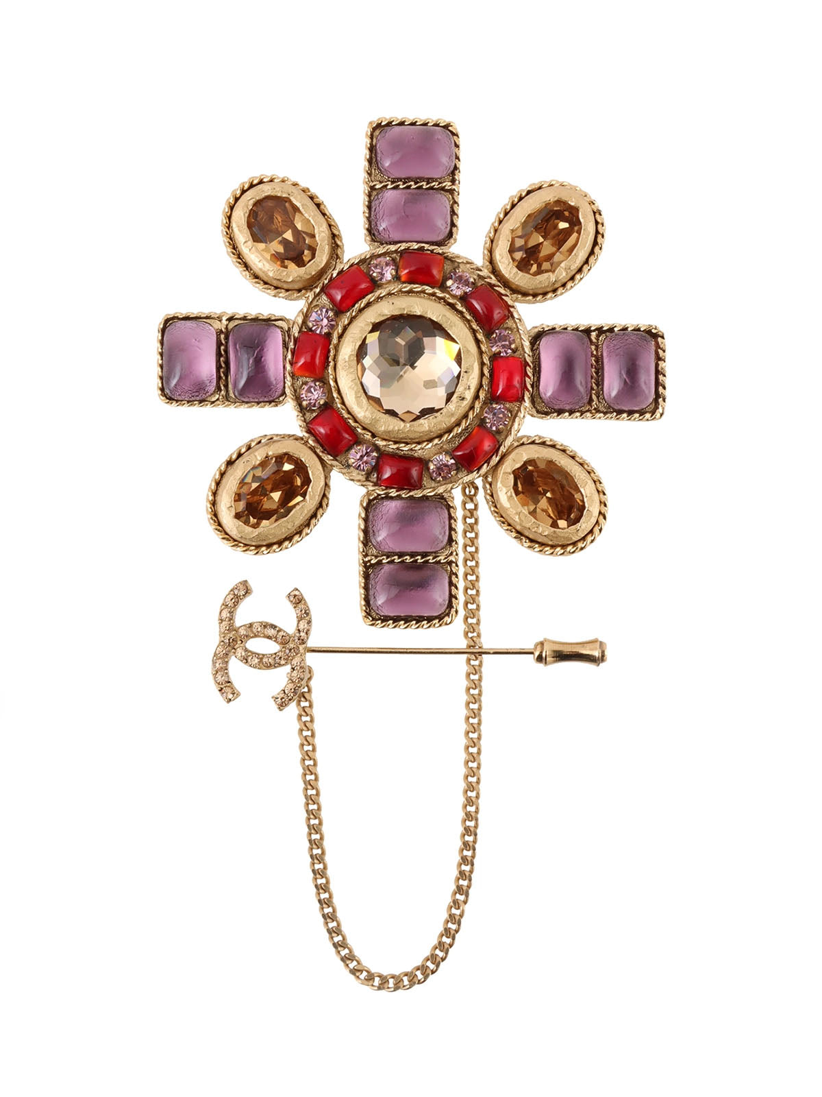 2002 Gripoix Design Motif Rhinestone CC Mark Pin Brooch in Gold/Purple/Multi