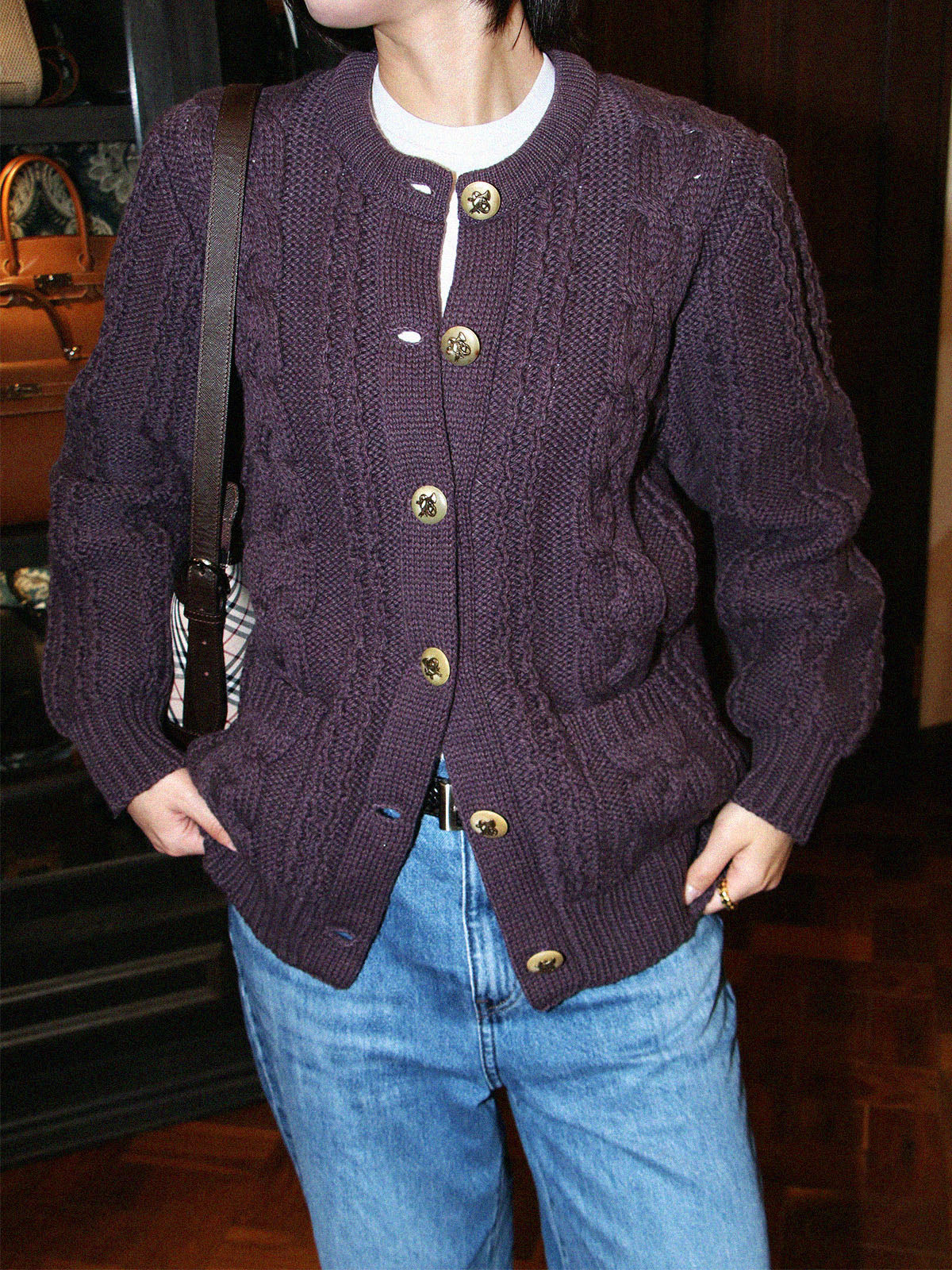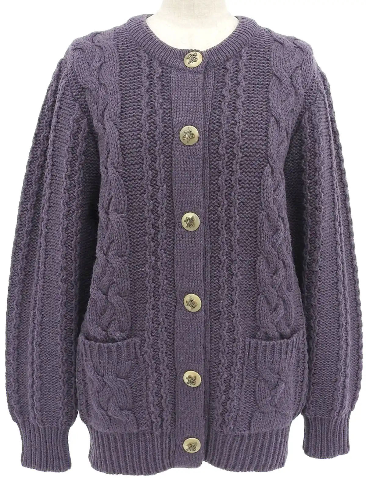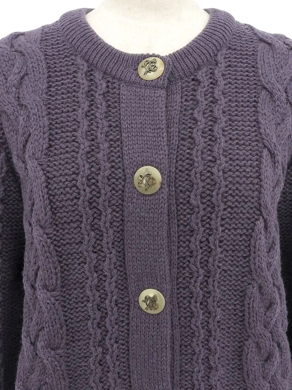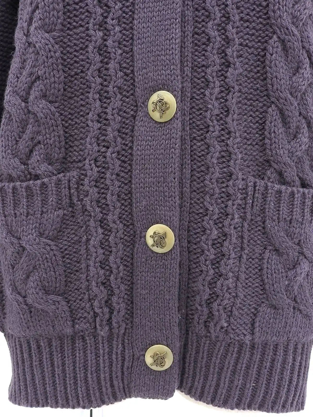 Wool Horn Logo Button Cable Knit Cardigan in Smoky Purple