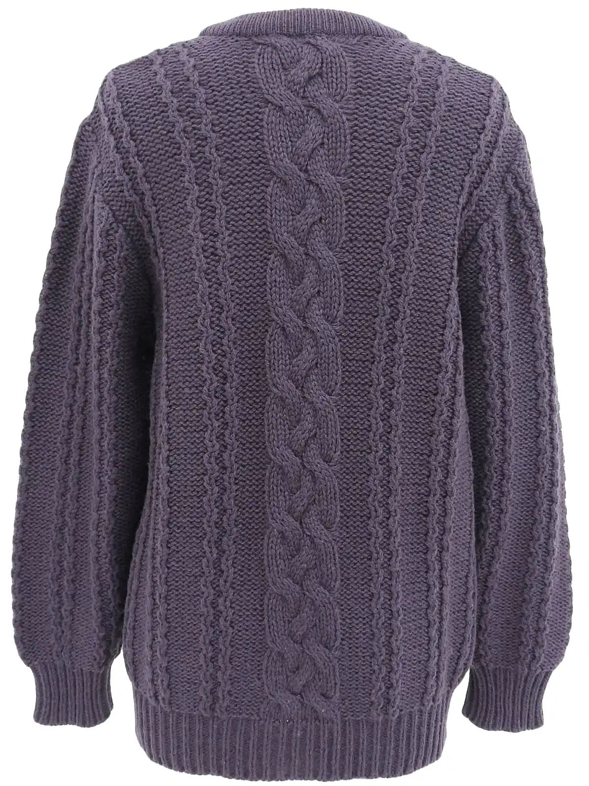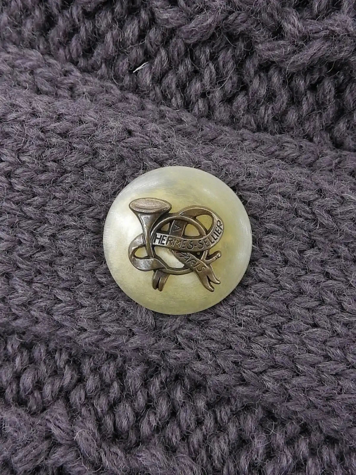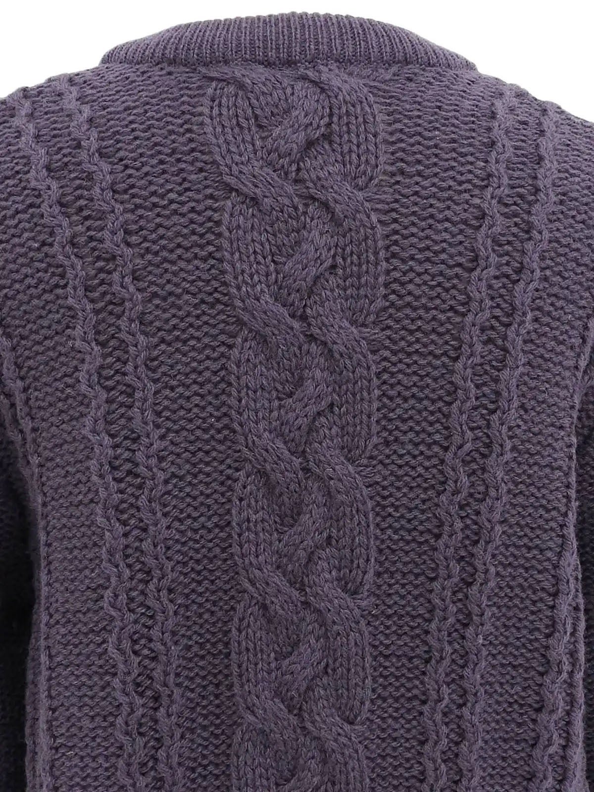 Wool Horn Logo Button Cable Knit Cardigan in Smoky Purple
