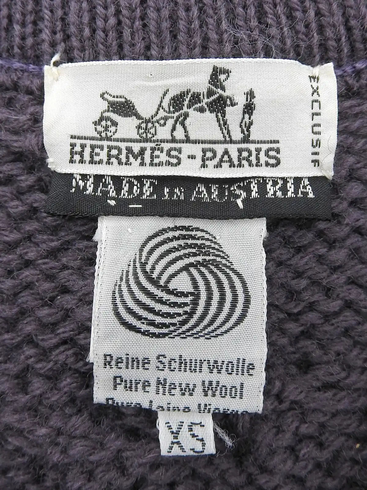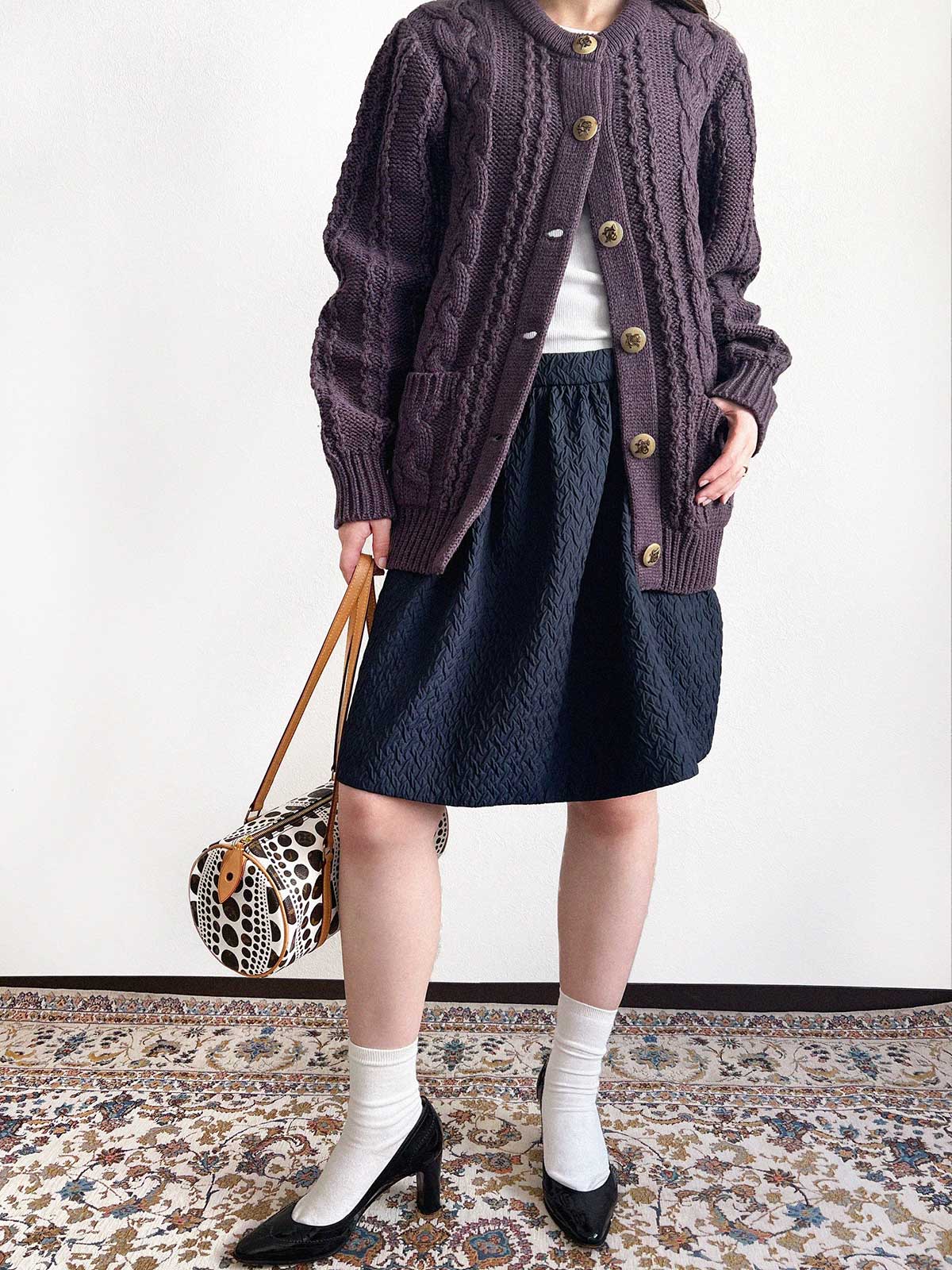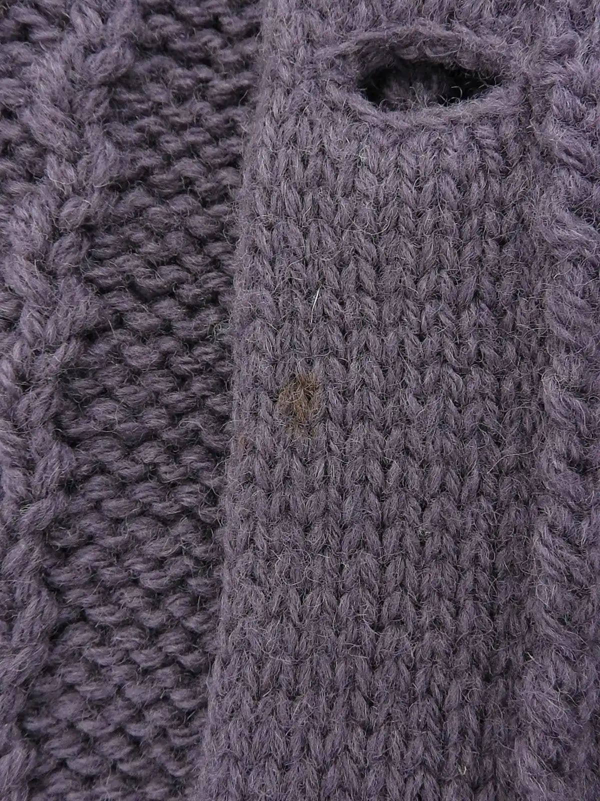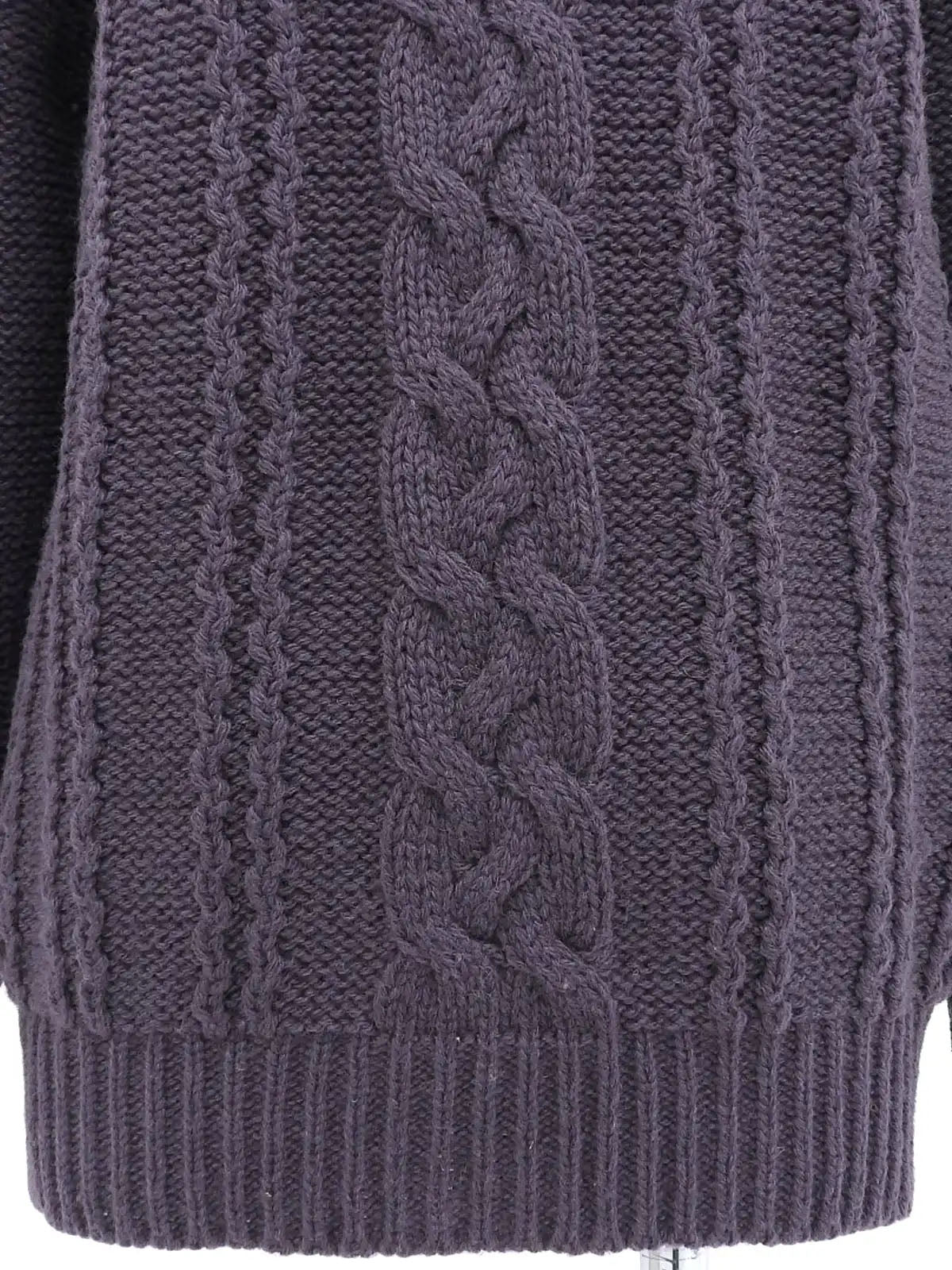Wool Horn Logo Button Cable Knit Cardigan in Smoky Purple