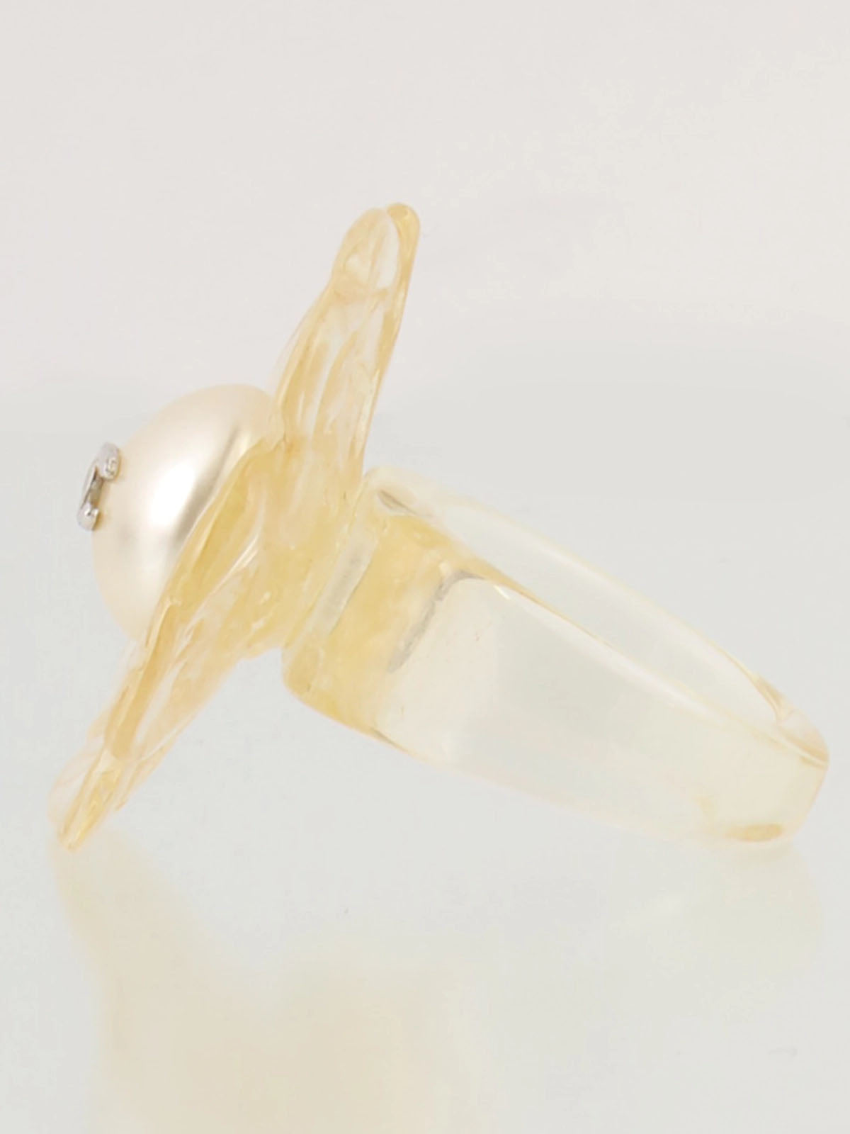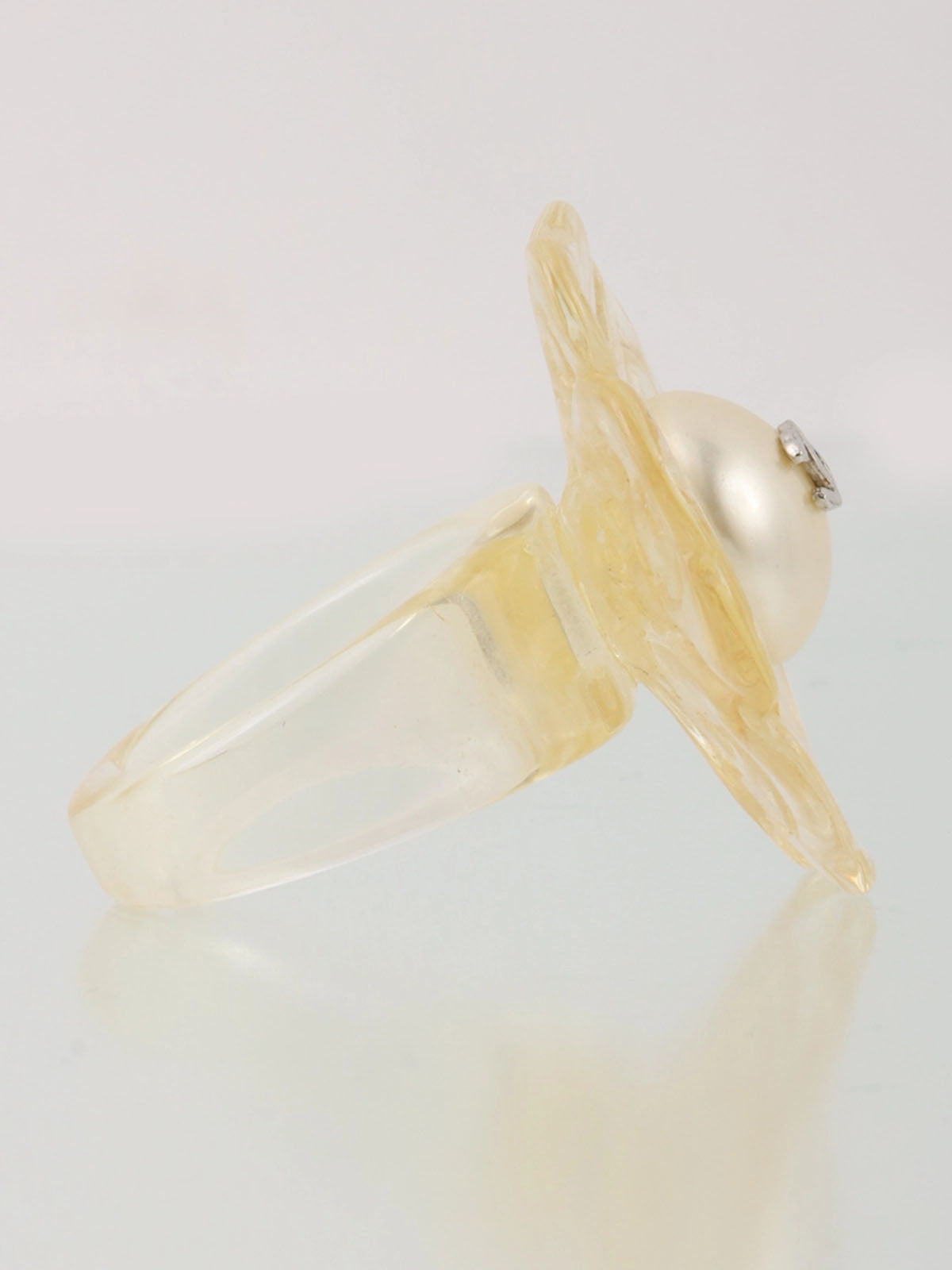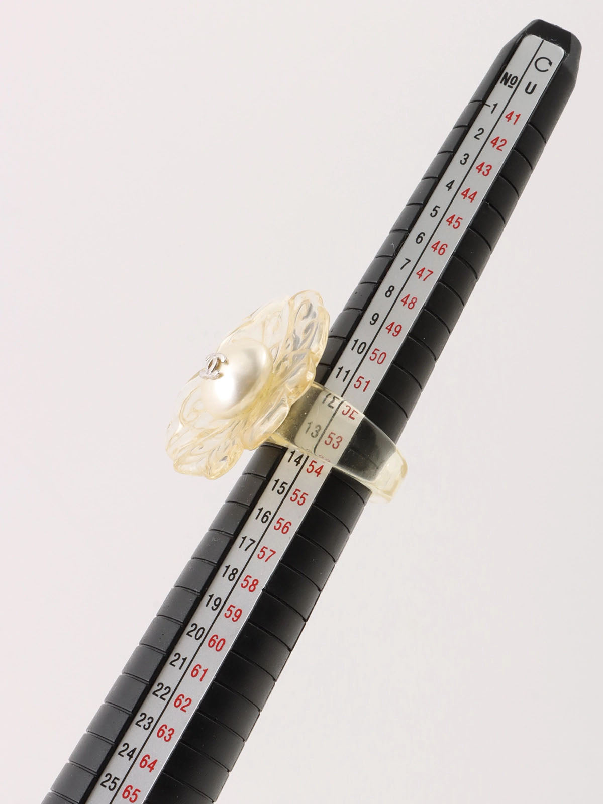 2003 Pearl CC Mark Camellia Motif Ring Clear