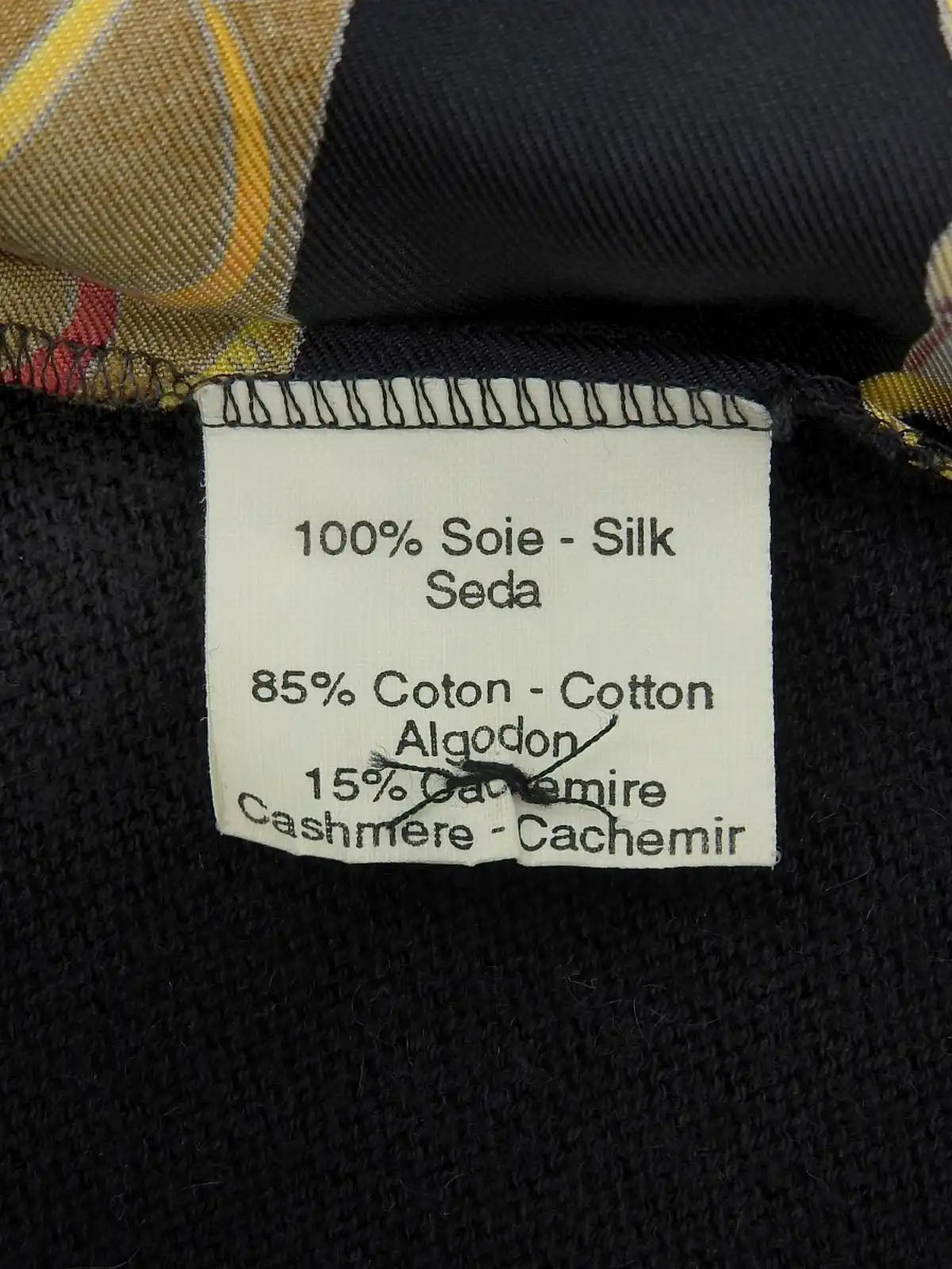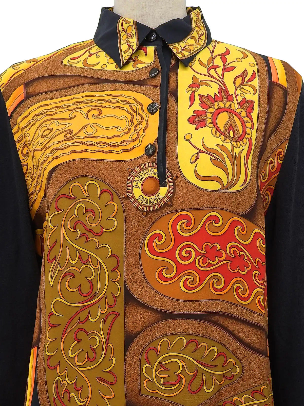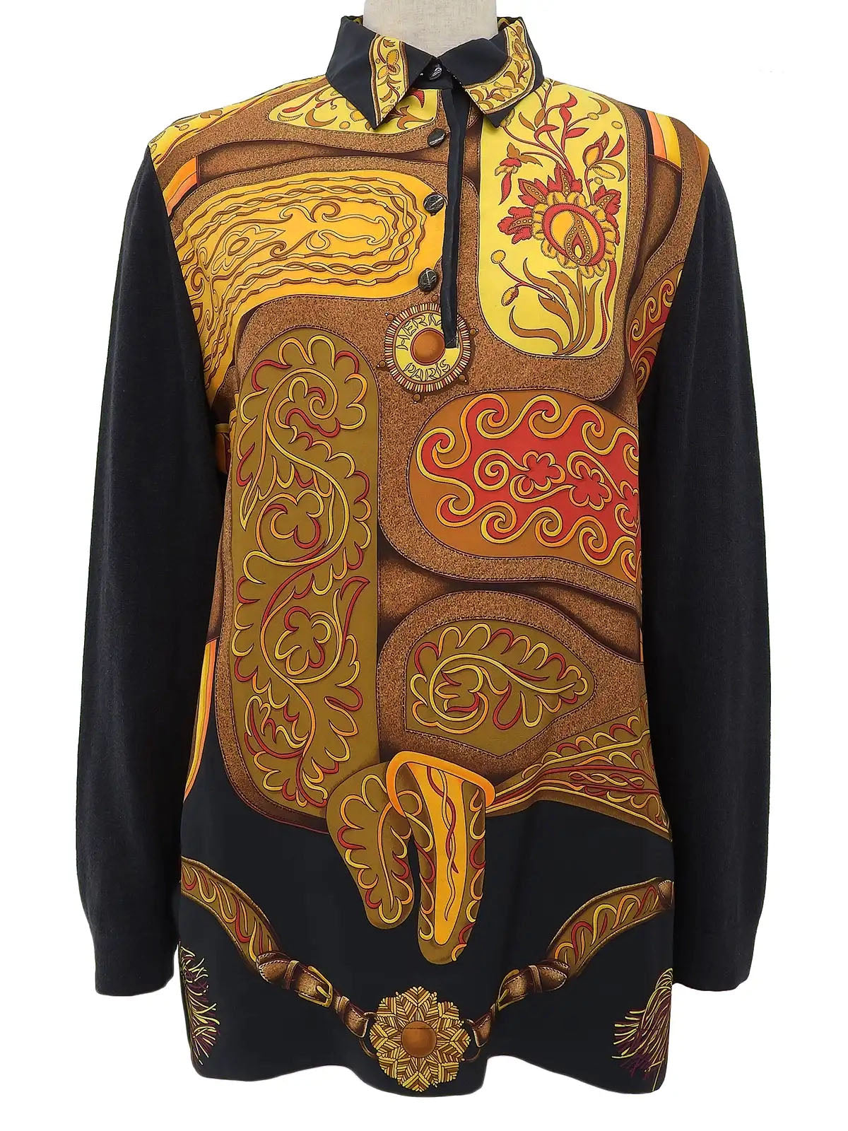 Silk knit combination design pattern long sleeve shirt in black/brown/multi
