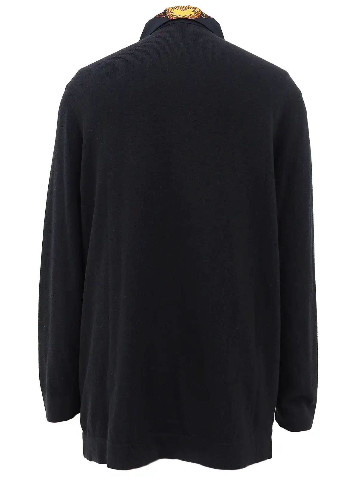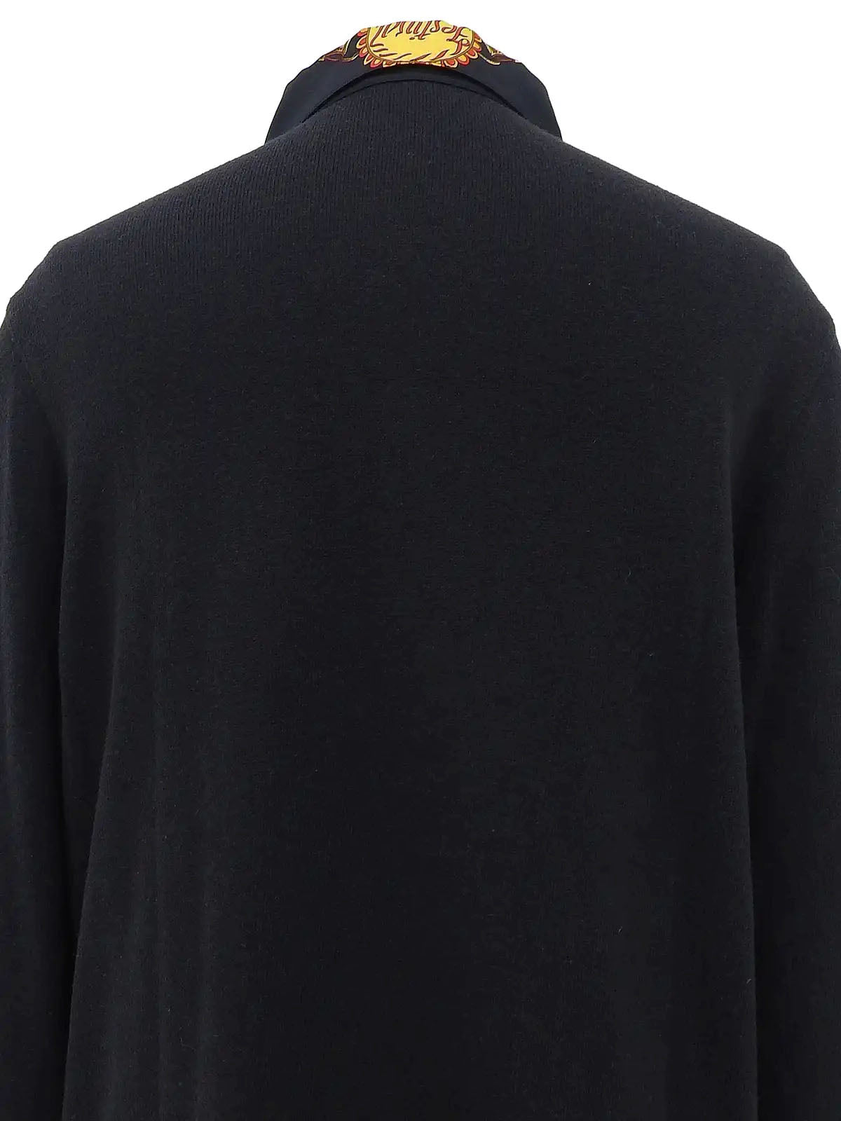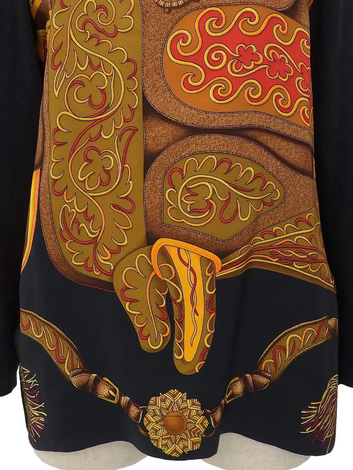 Silk knit combination design pattern long sleeve shirt in black/brown/multi