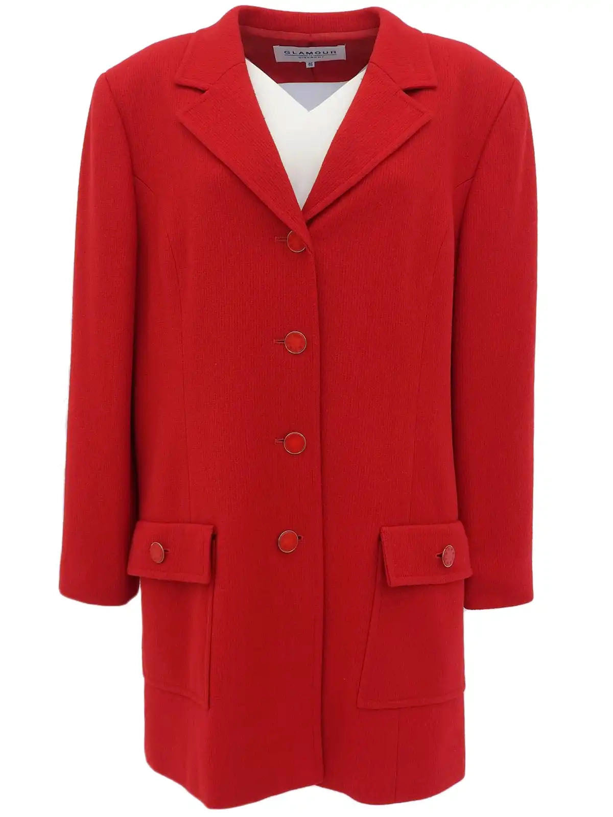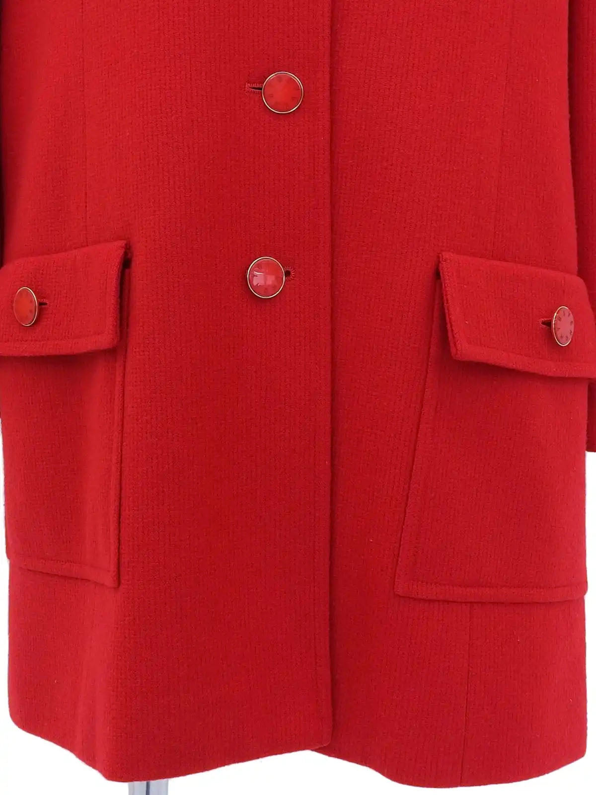 Wool logo button coat in red