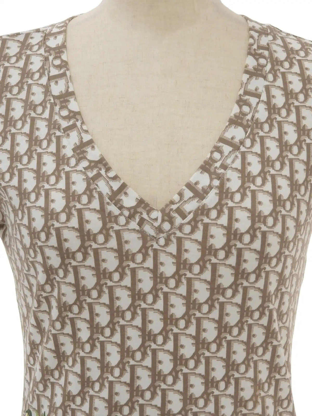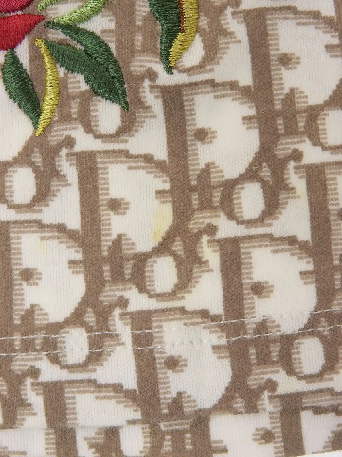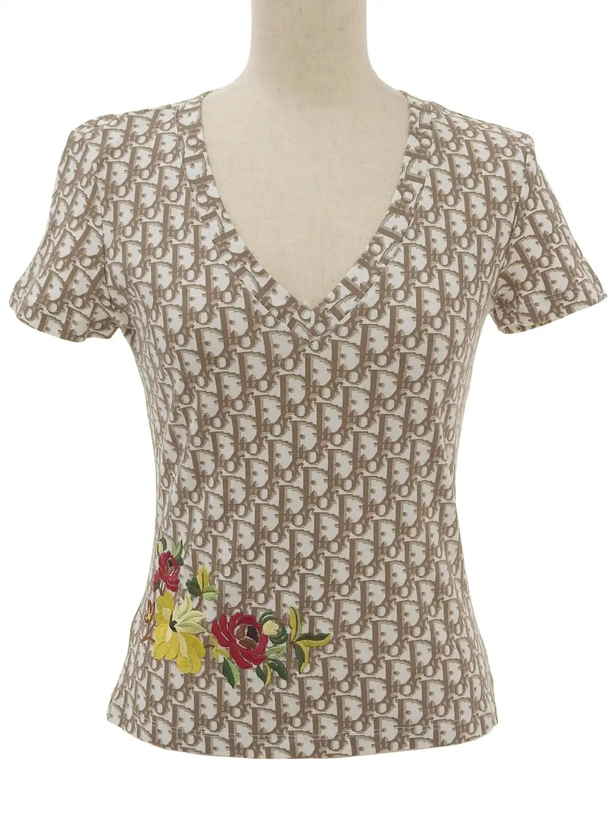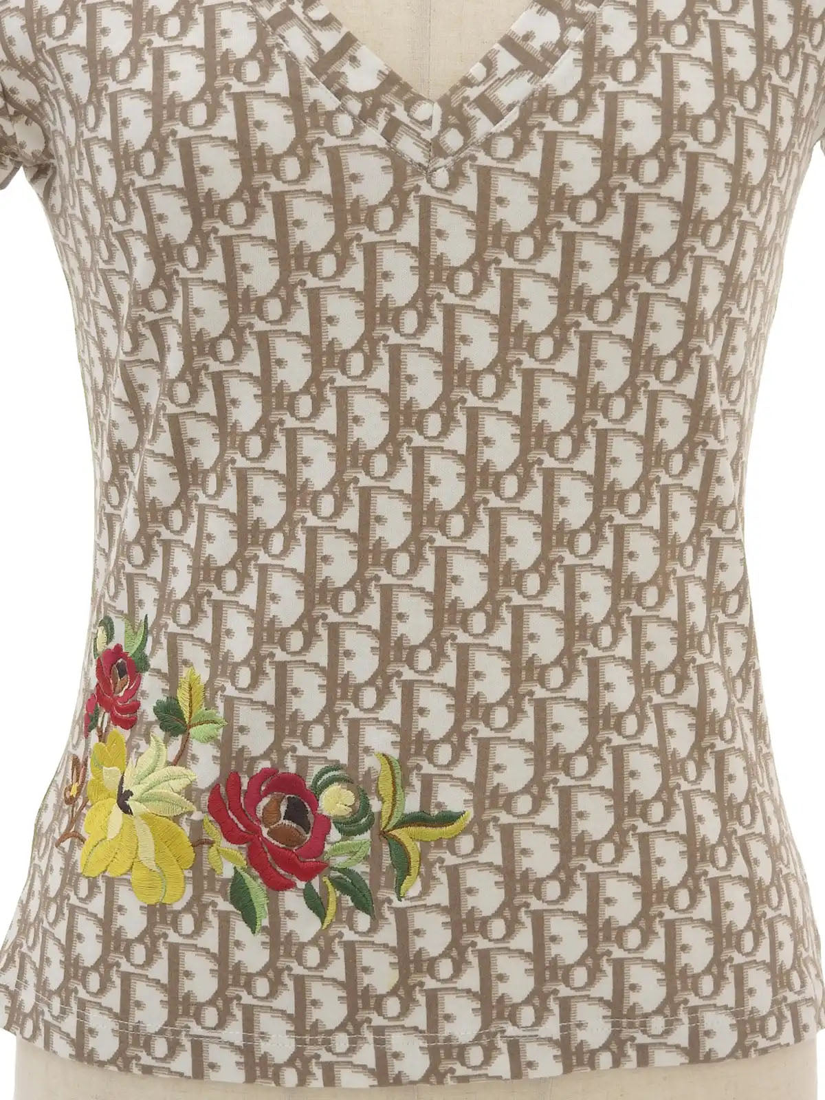 Flower Embroidered Trotter Logo Half Sleeve Top in Brown/White