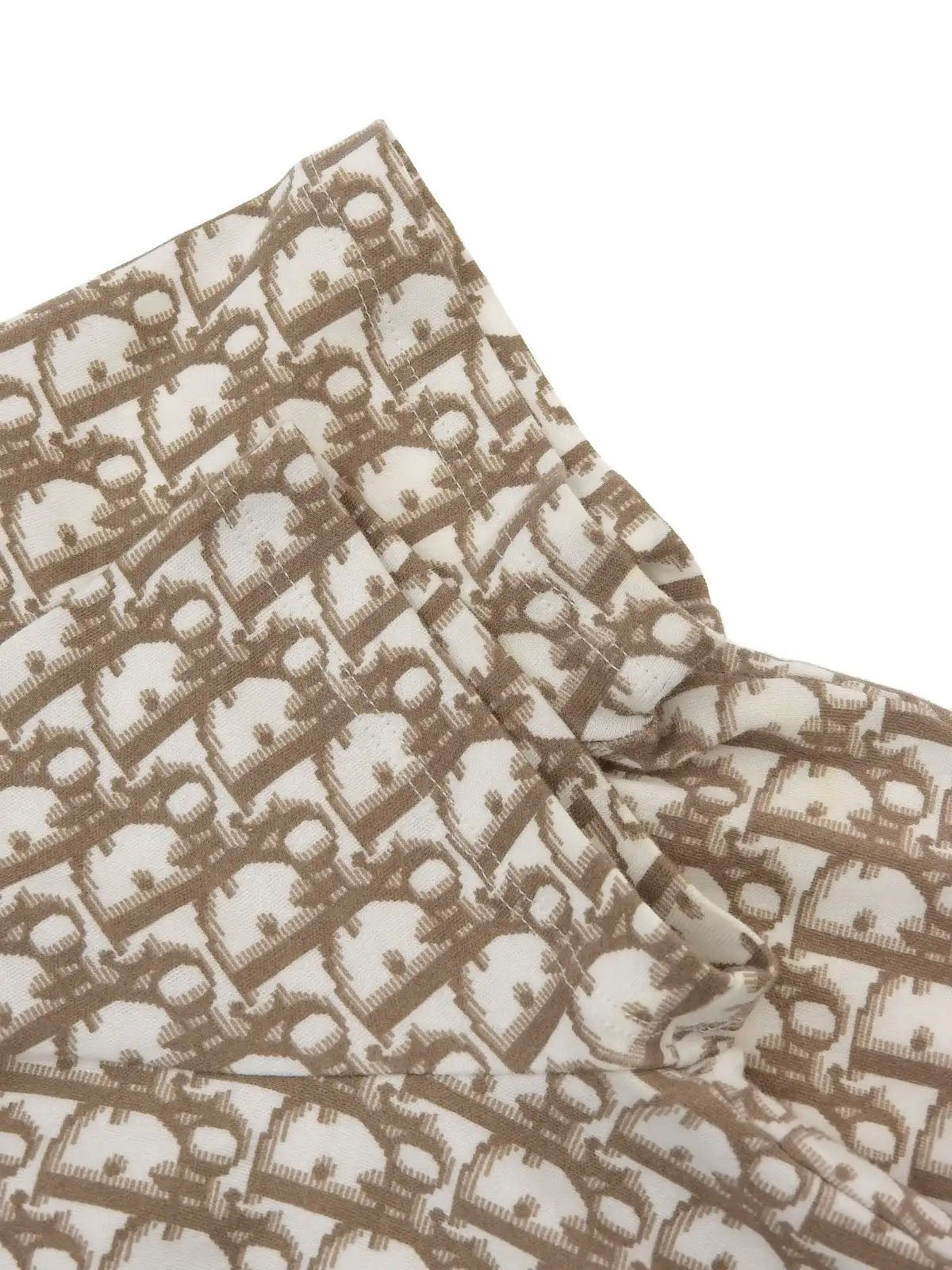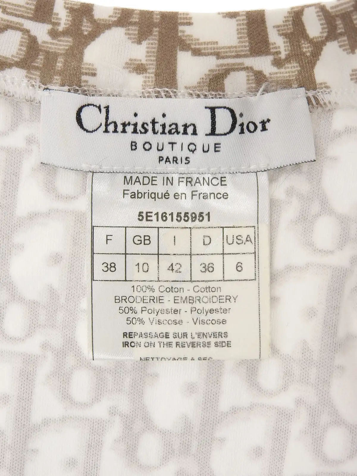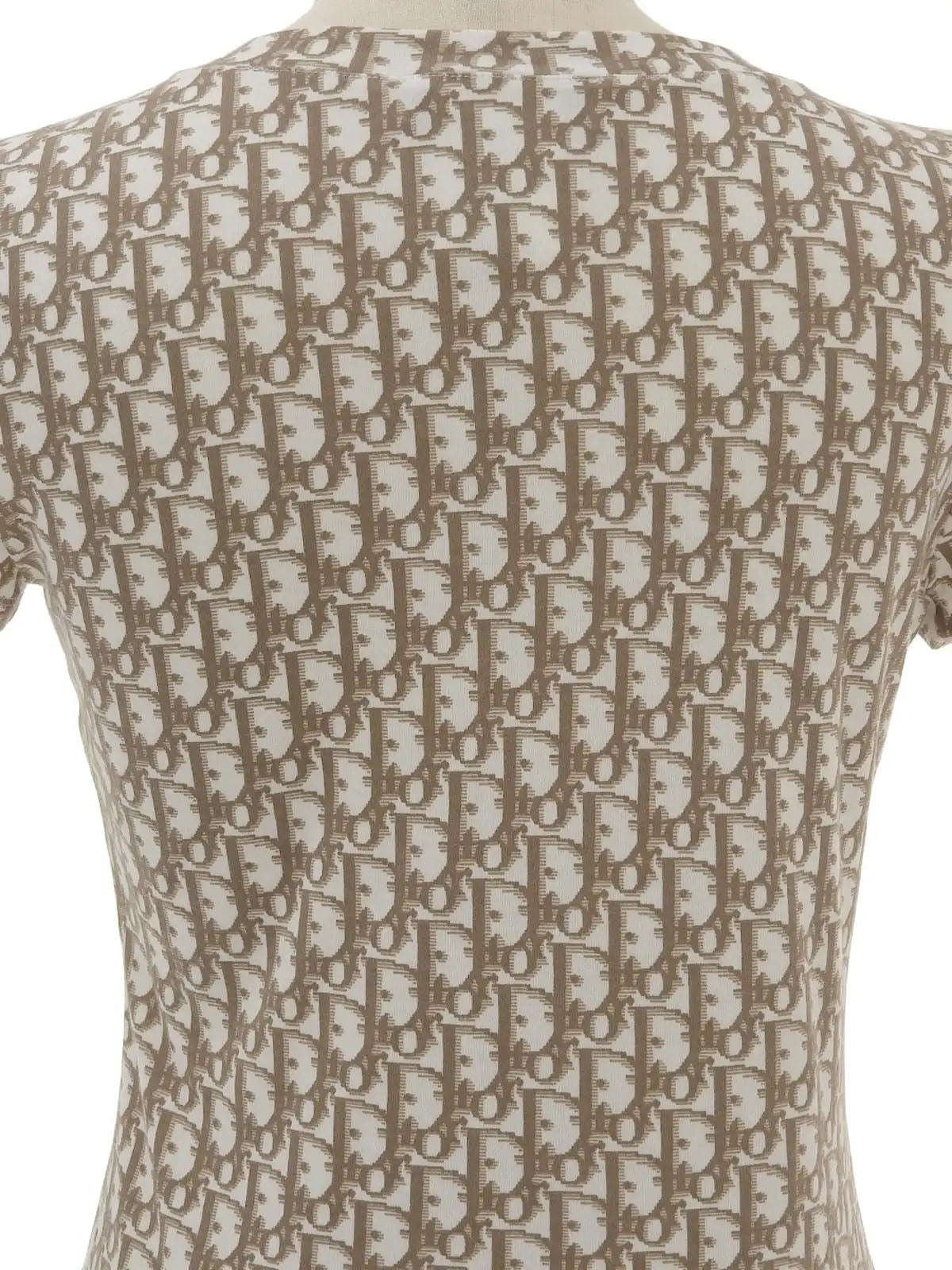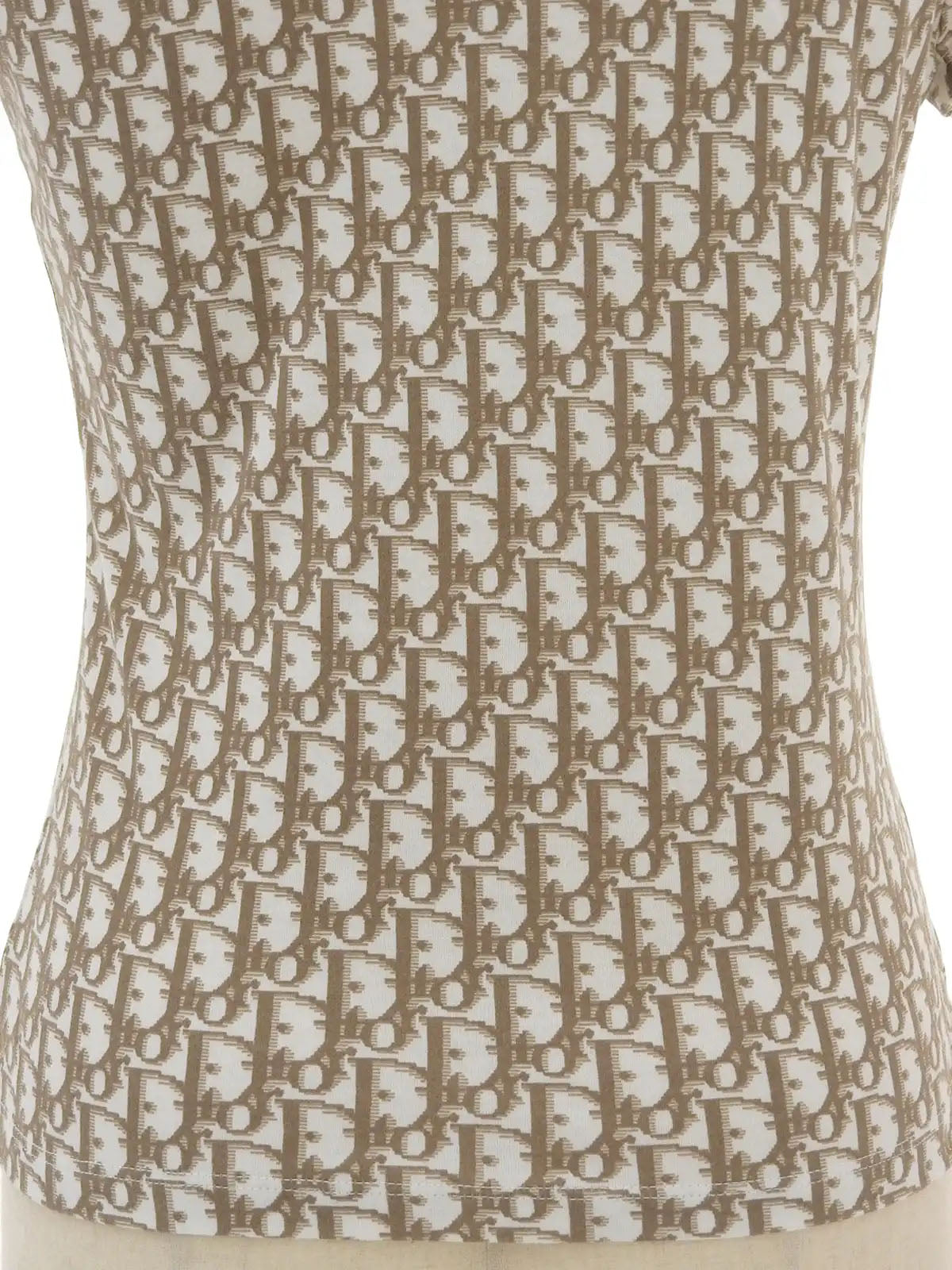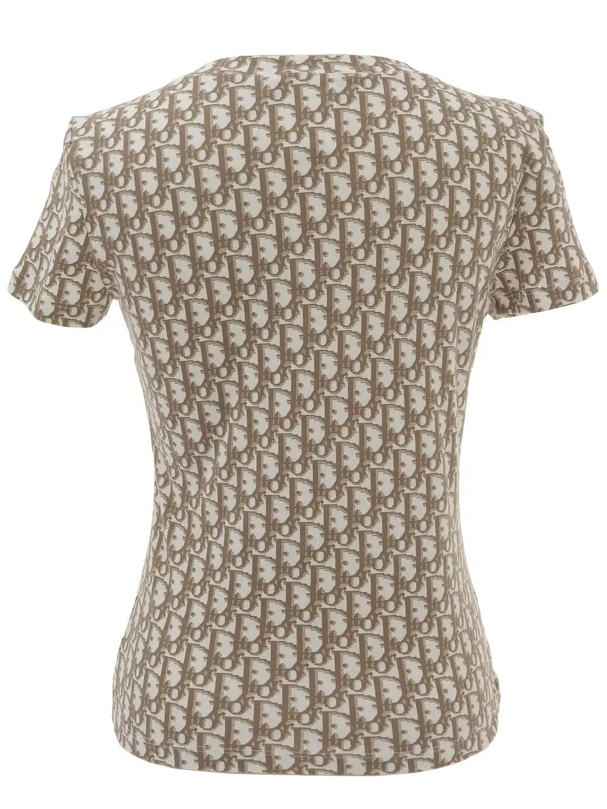 Flower Embroidered Trotter Logo Half Sleeve Top in Brown/White
