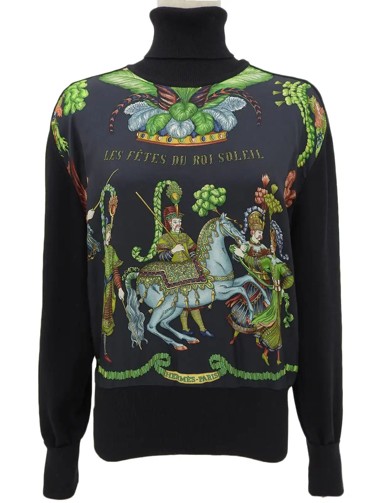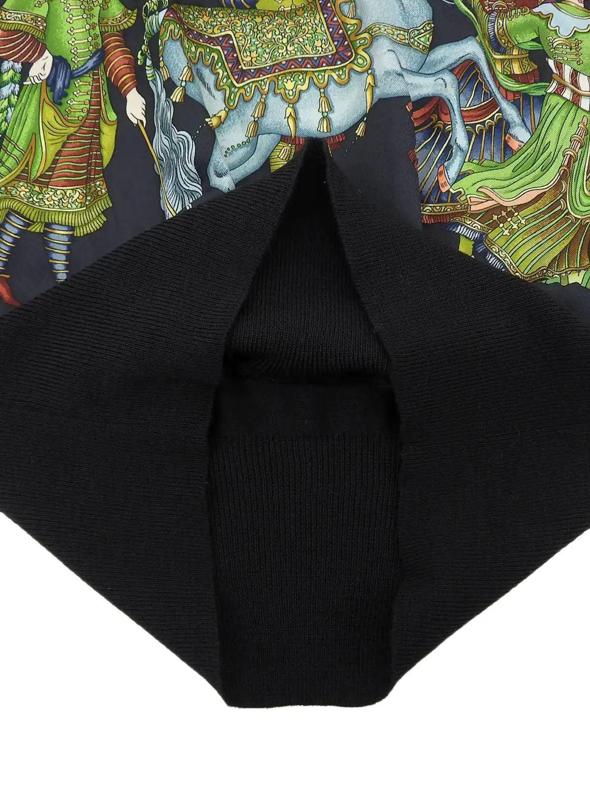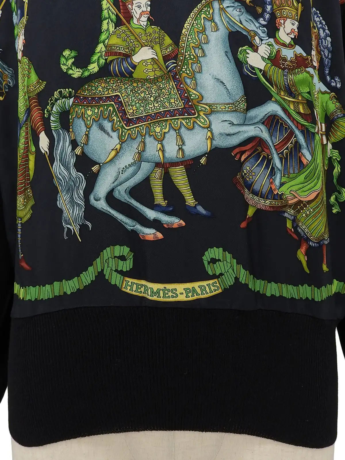 Silk knit combination design pattern long sleeve shirt in black/multi