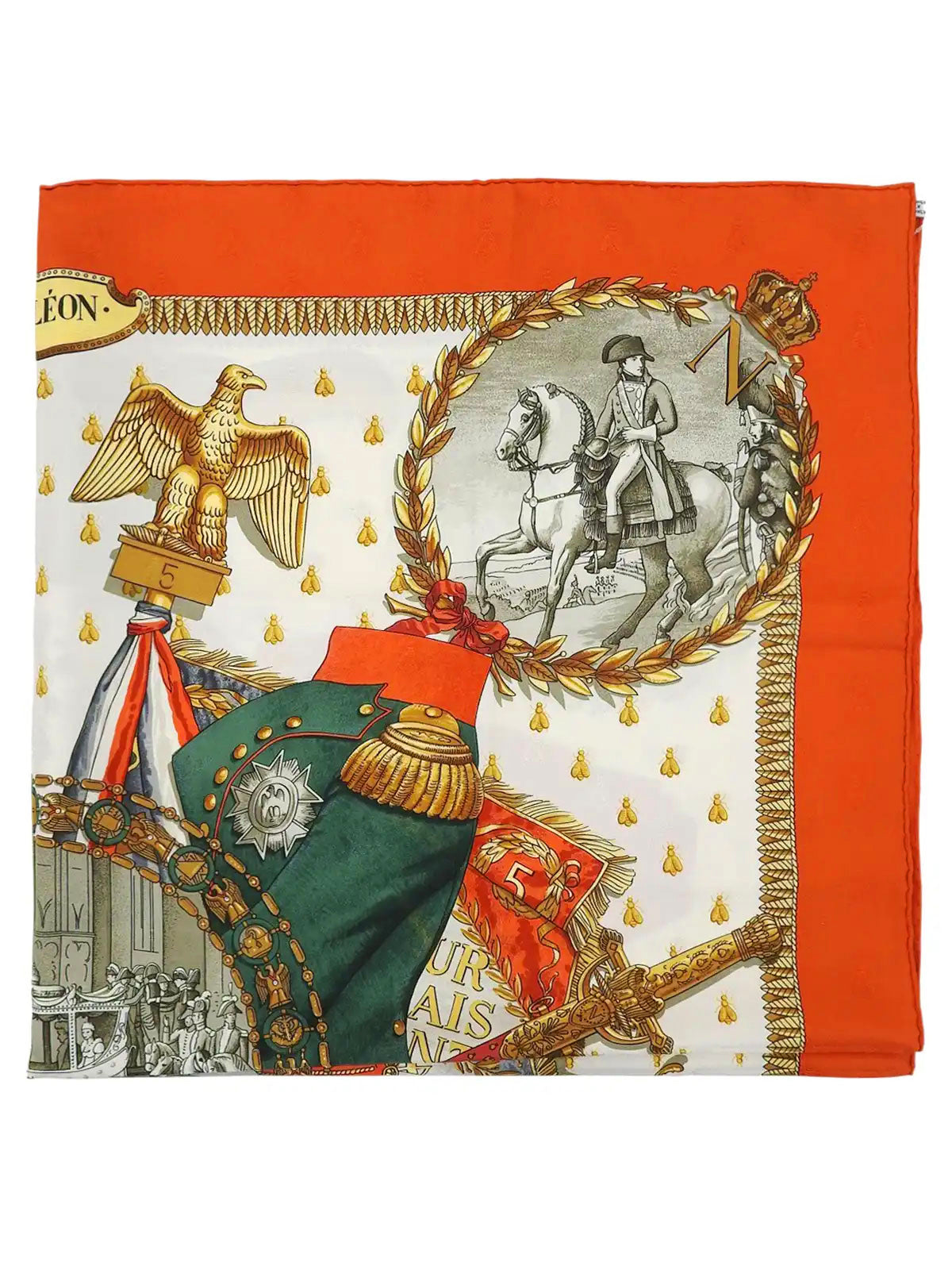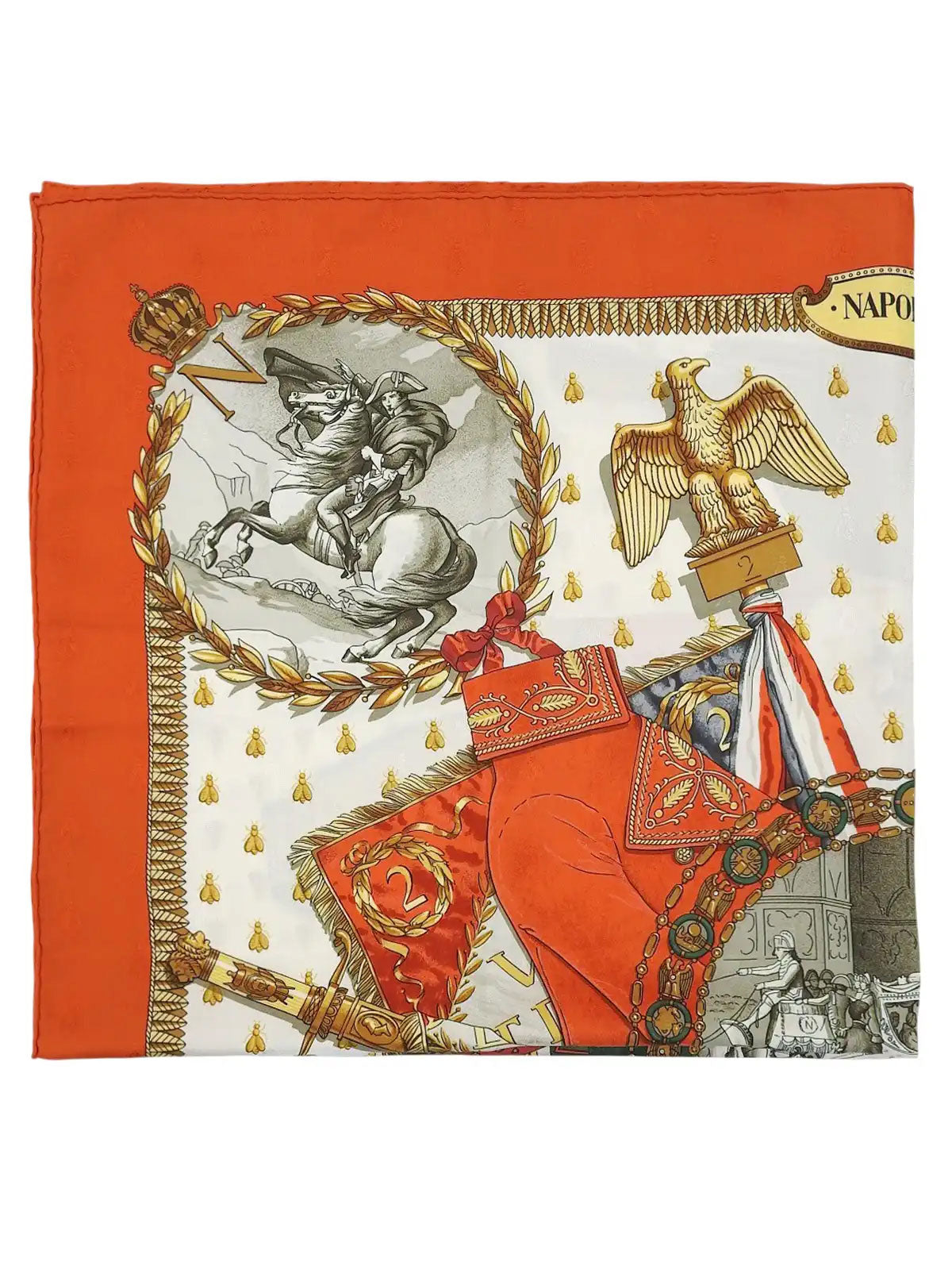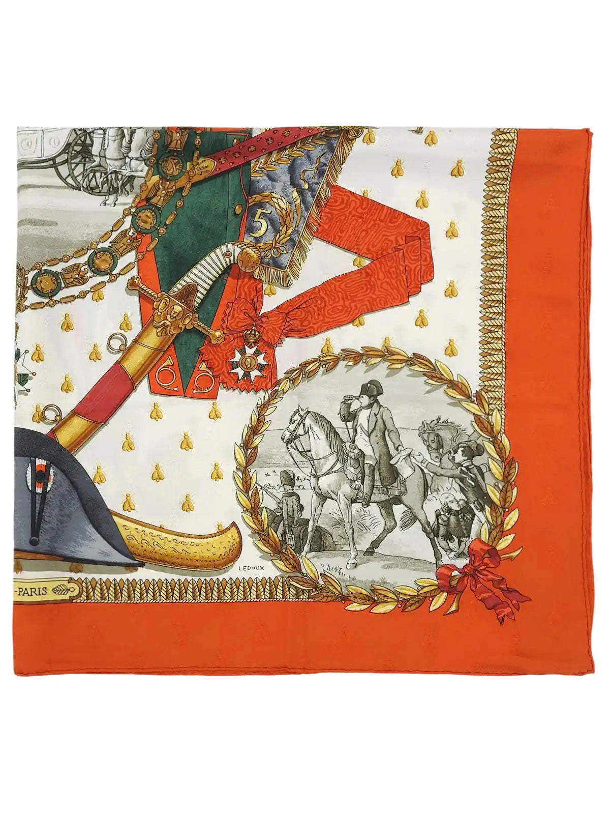 Carré 90 Napoleon Pattern Scarf Orange/Multi