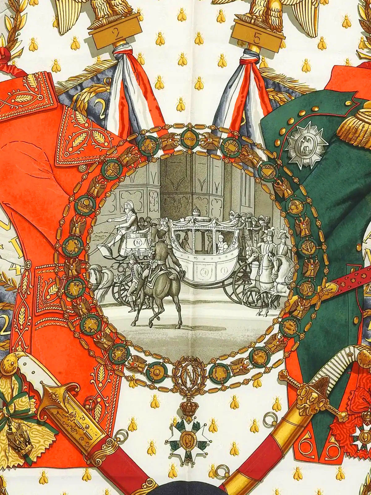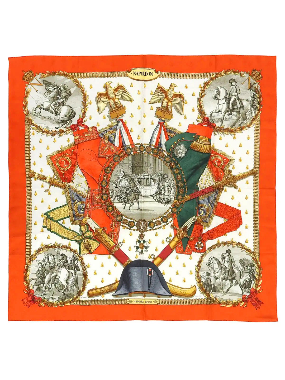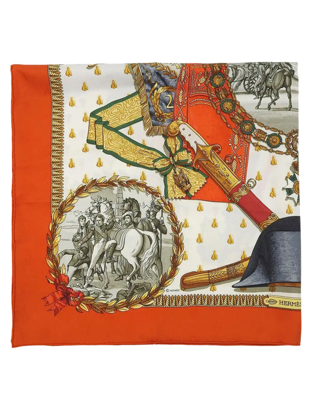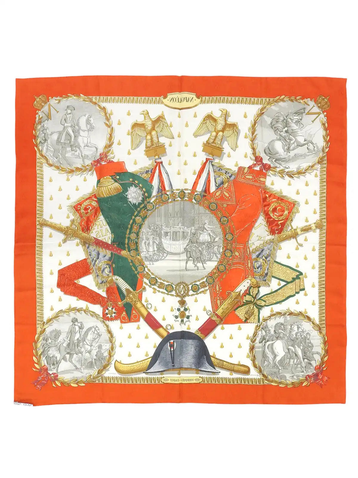 Carré 90 Napoleon Pattern Scarf Orange/Multi