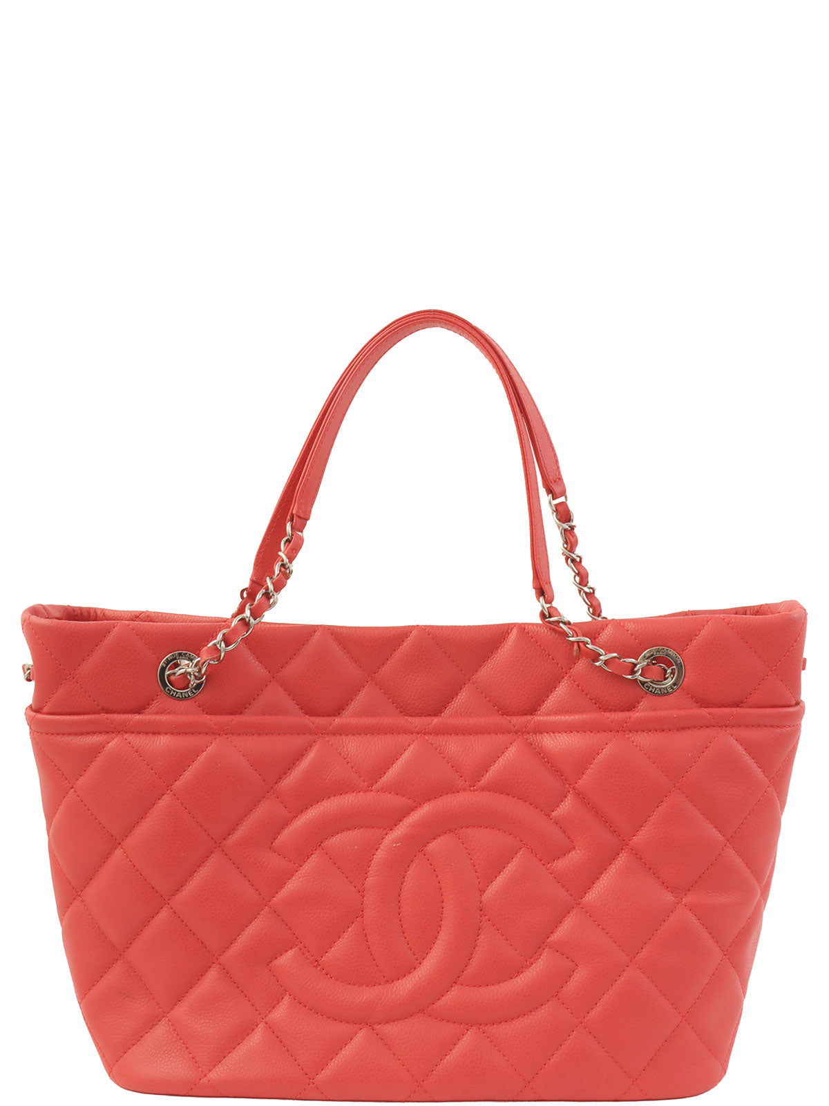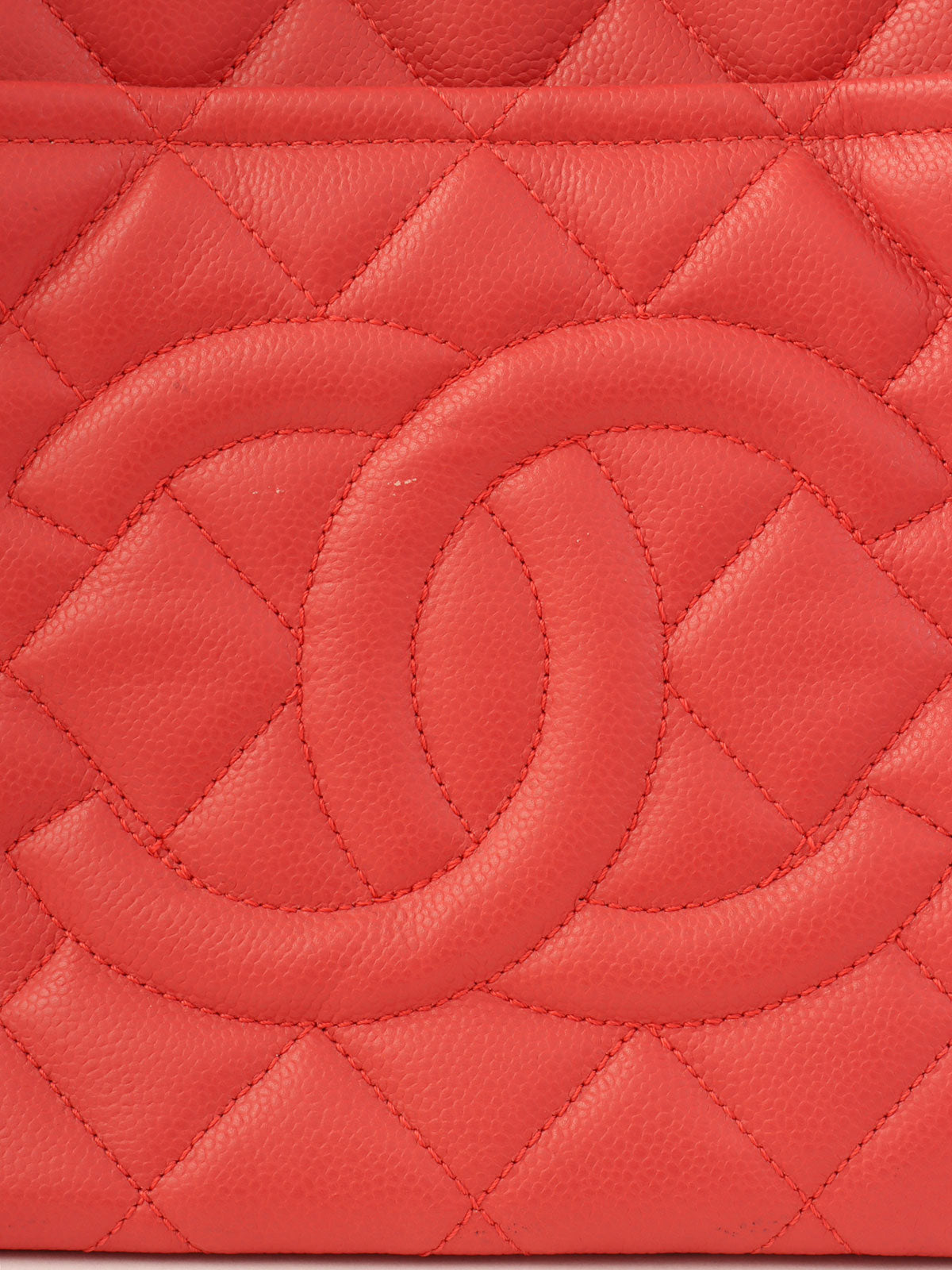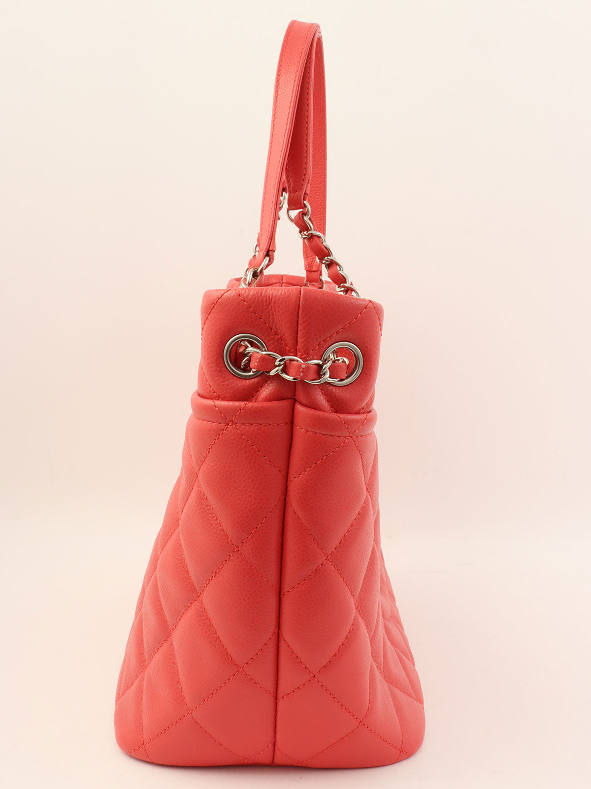 2014 Caviar Skin CC Mark Stitch Chain Tote Bag, Salmon Pink