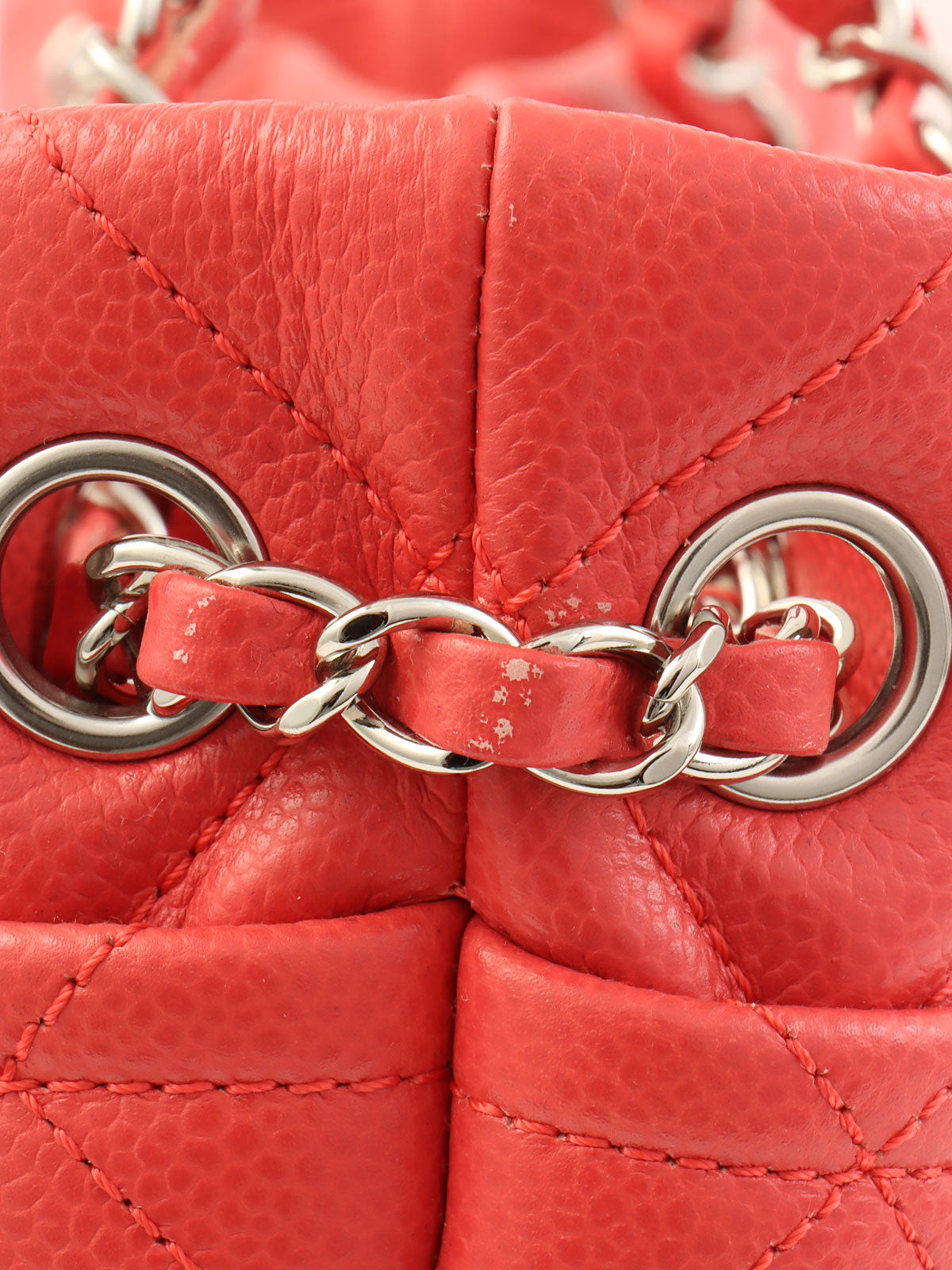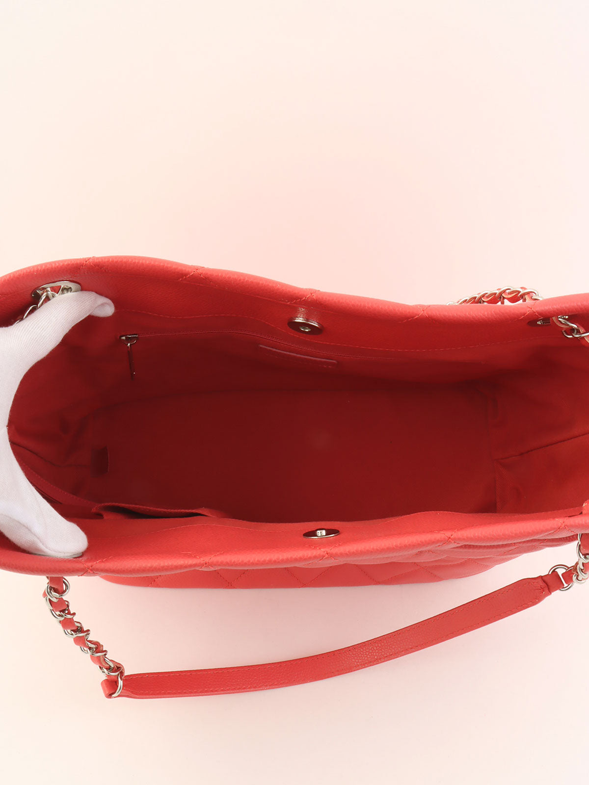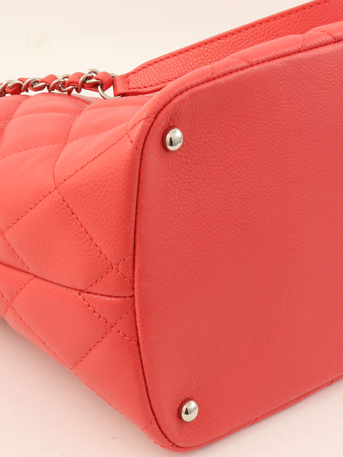 2014 Caviar Skin CC Mark Stitch Chain Tote Bag, Salmon Pink