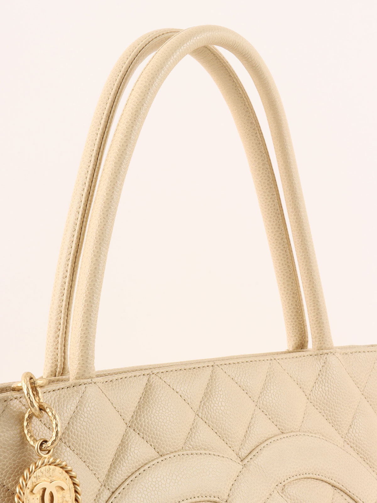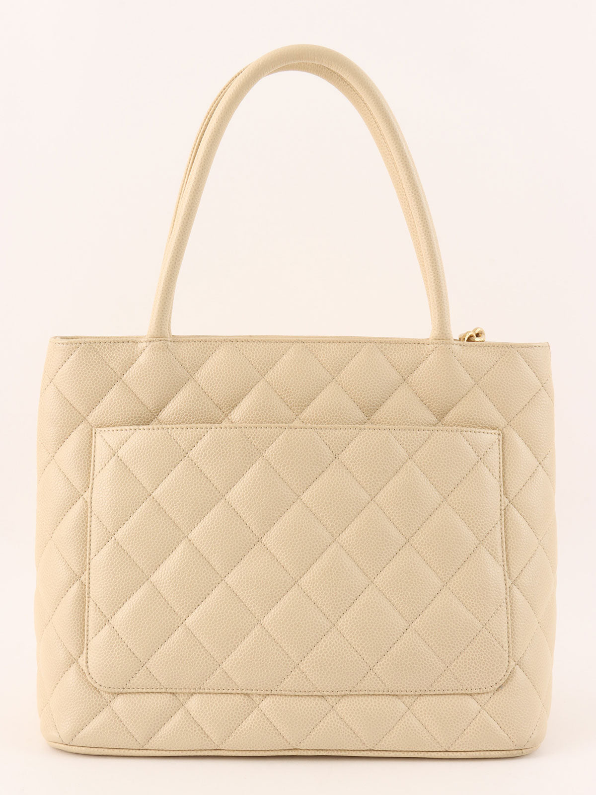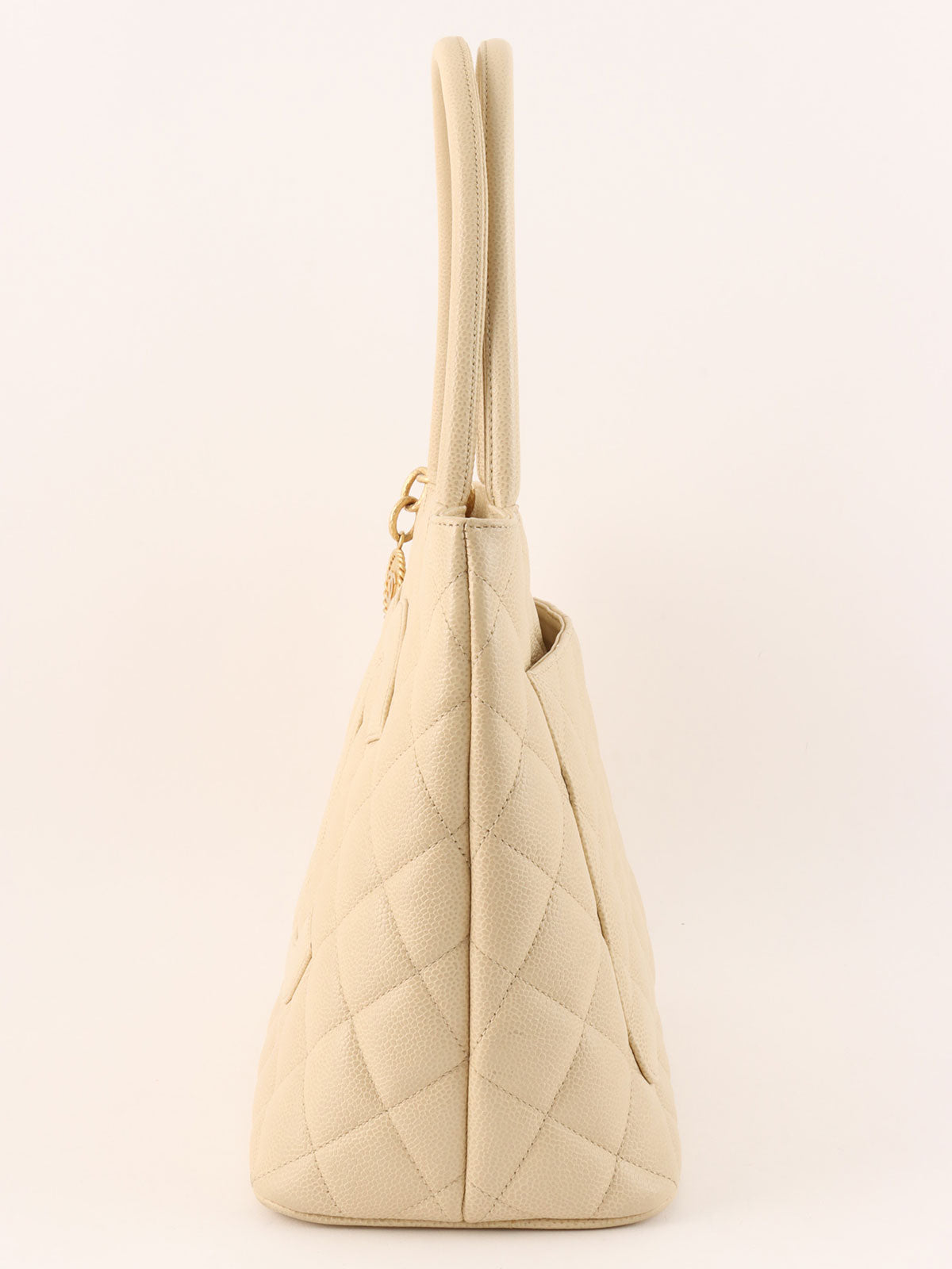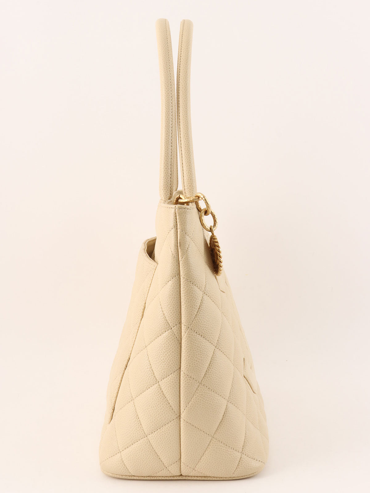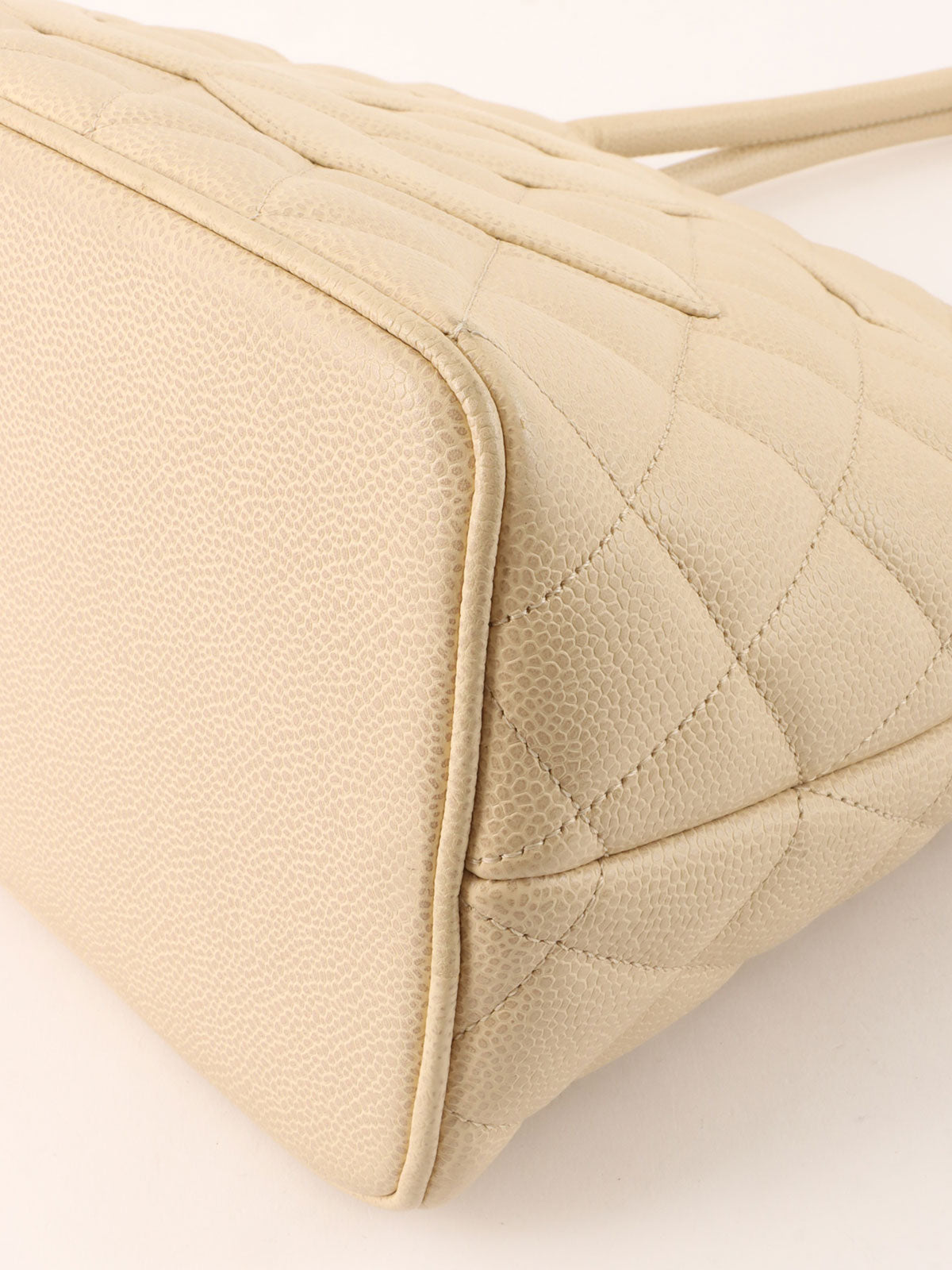Around 2000 Made Caviar Skin CC Mark Stitch Revival Tote Bag Ivory