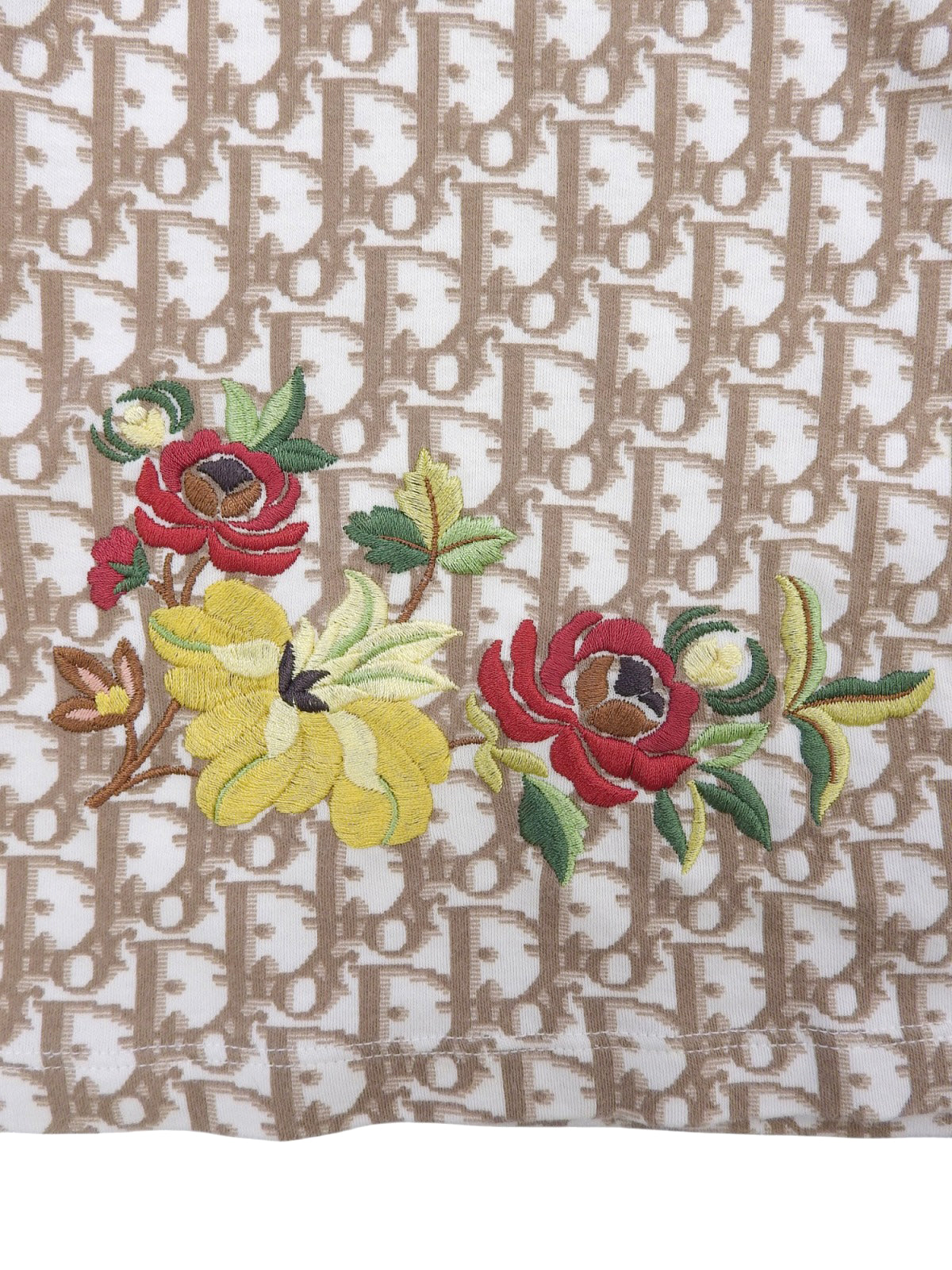 Trotter Pattern Flower Embroidered Half Sleeve Top in White/Brown