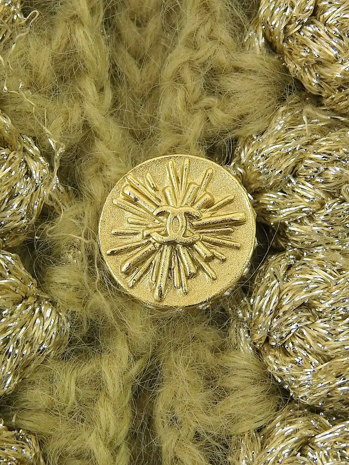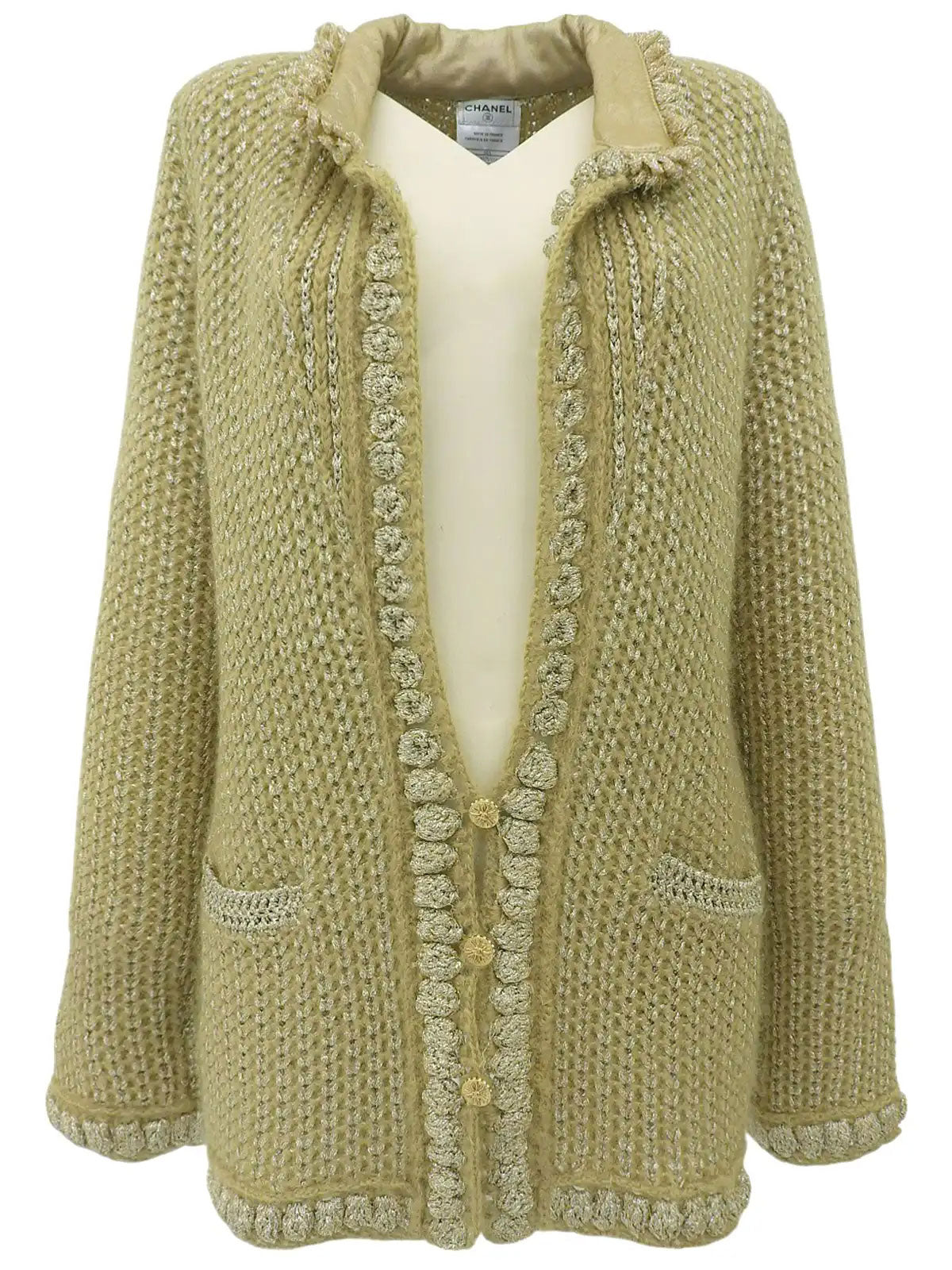 2004 Mohair Rhinestone CC Mark Button Cardigan in Khaki/Gold/Silver