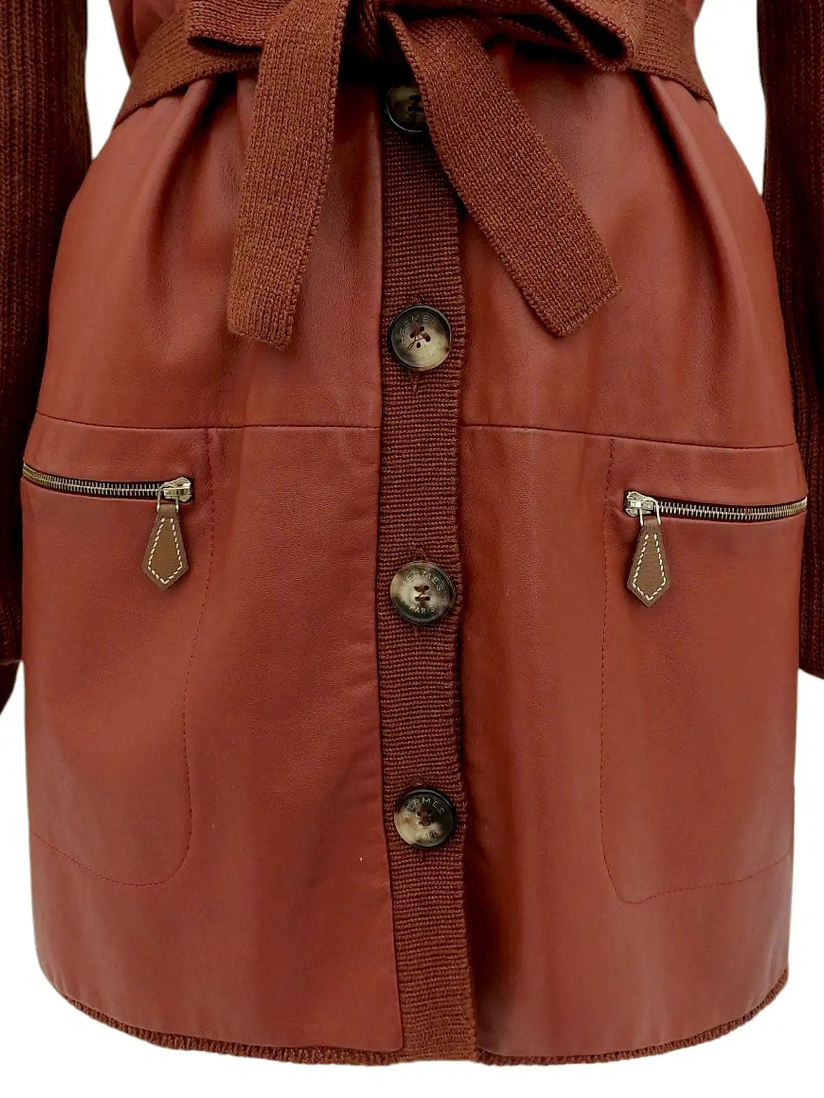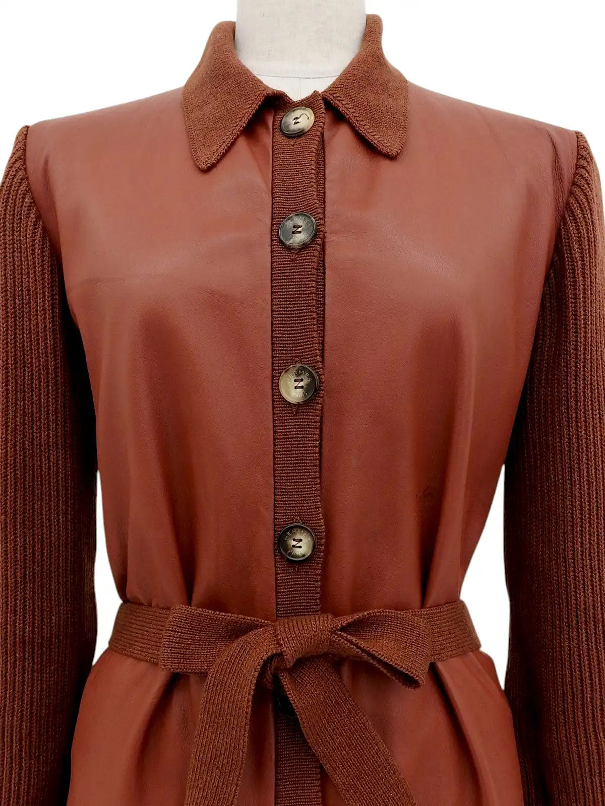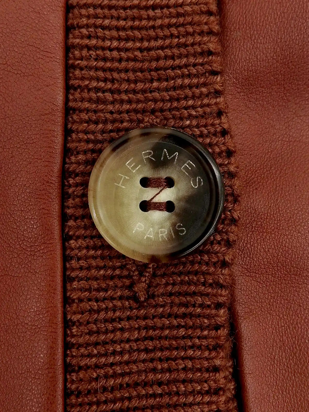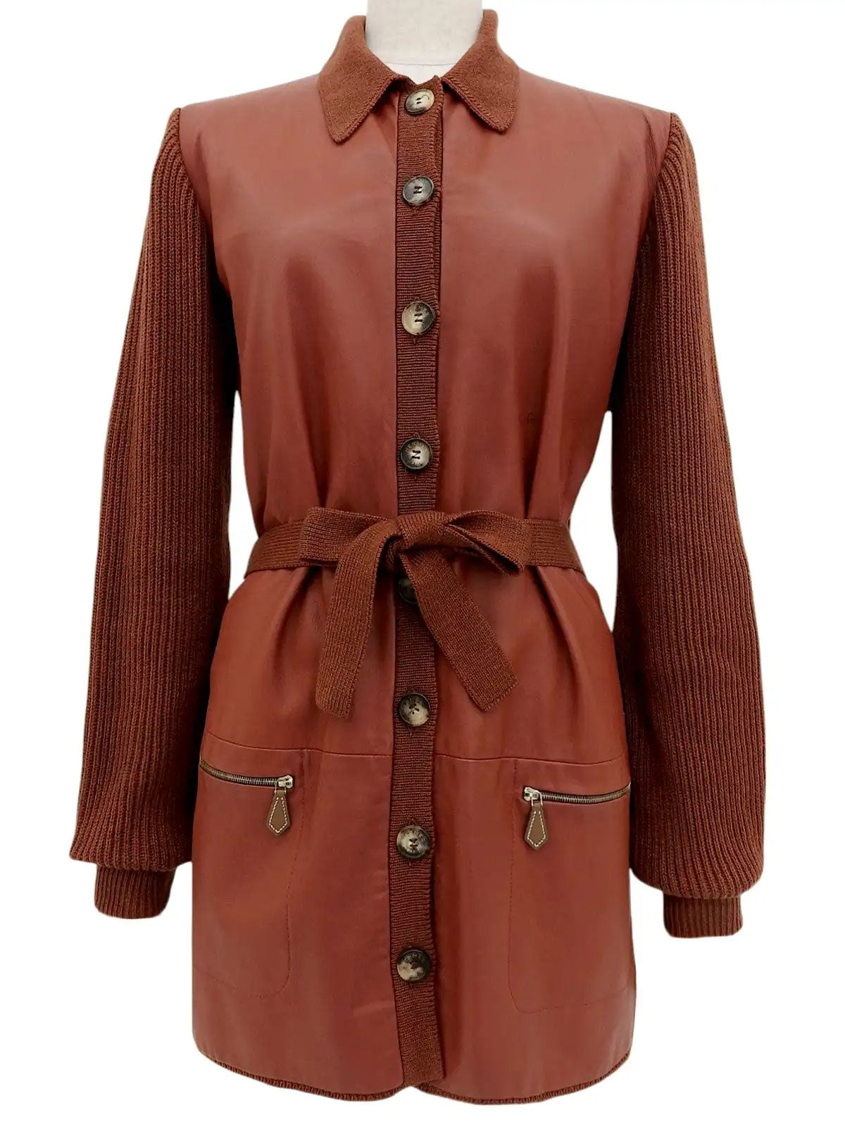 Cashmere and leather combination logo button jacket in brick