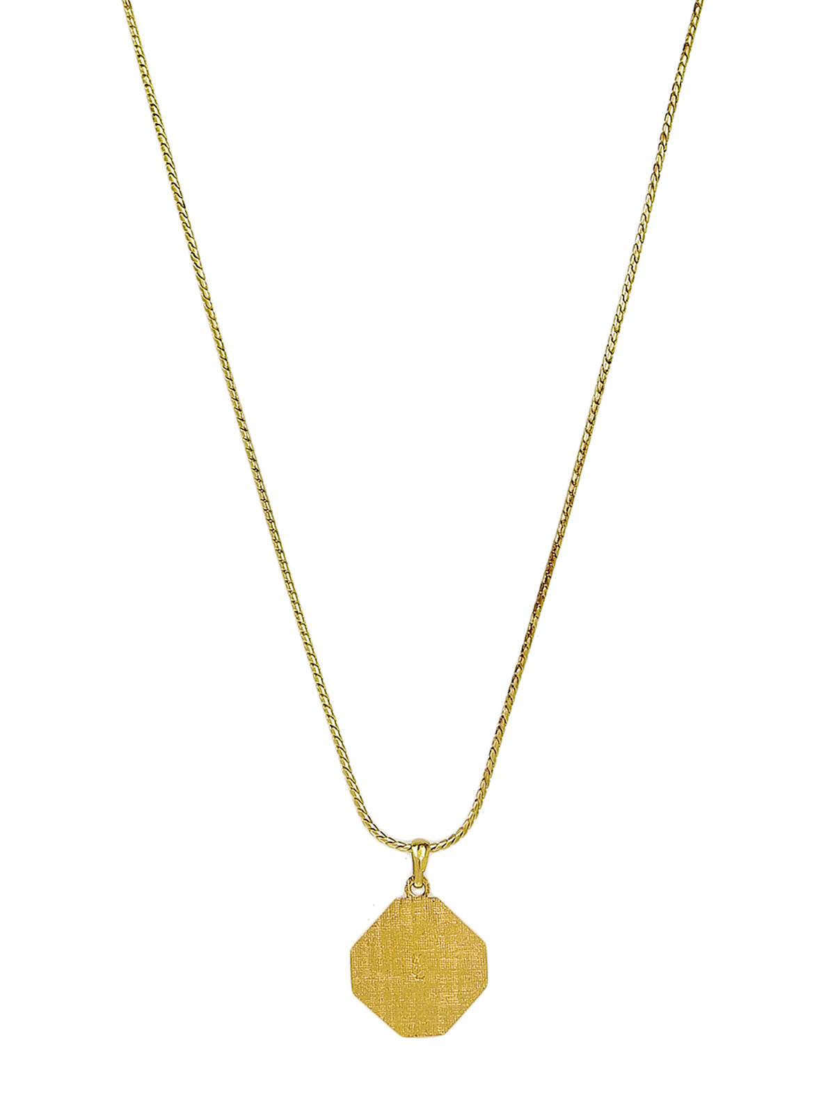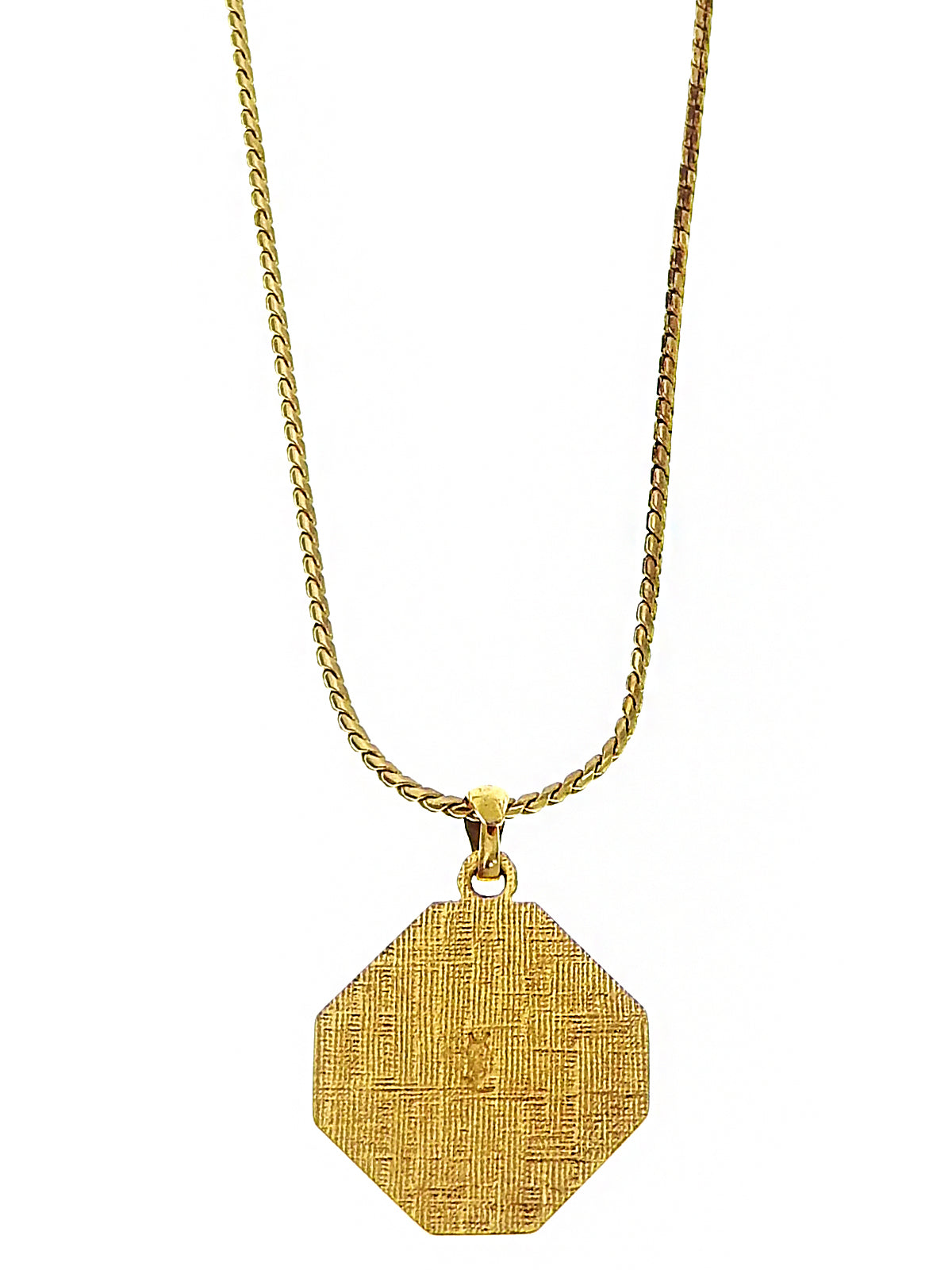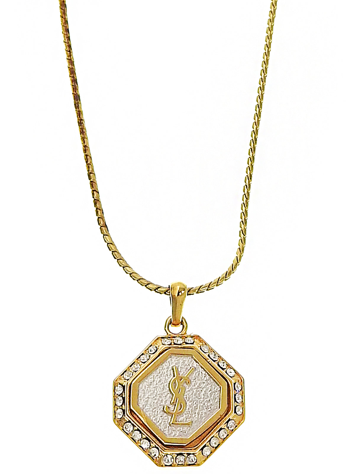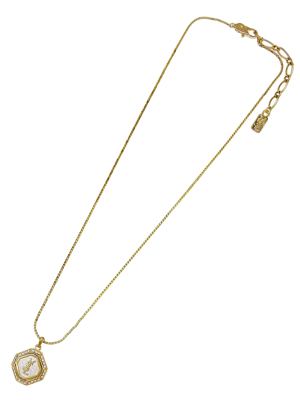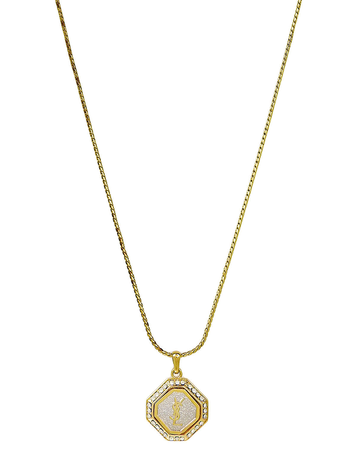Rhinestone Octagon Logo Plate Necklace in Gold/Silver