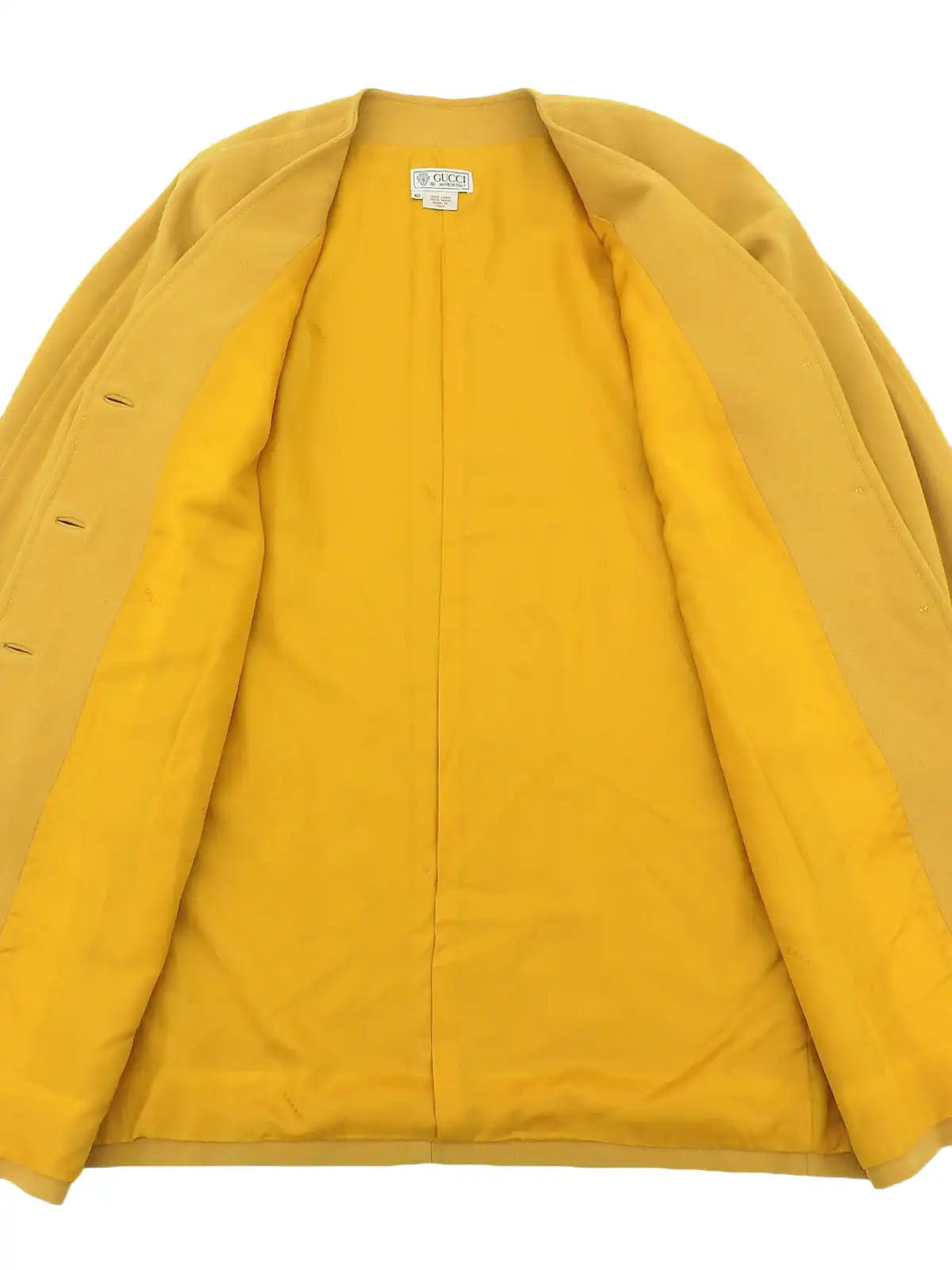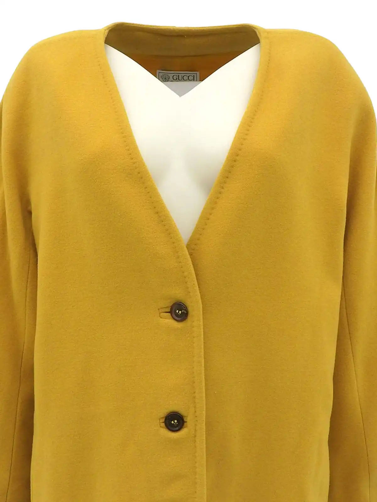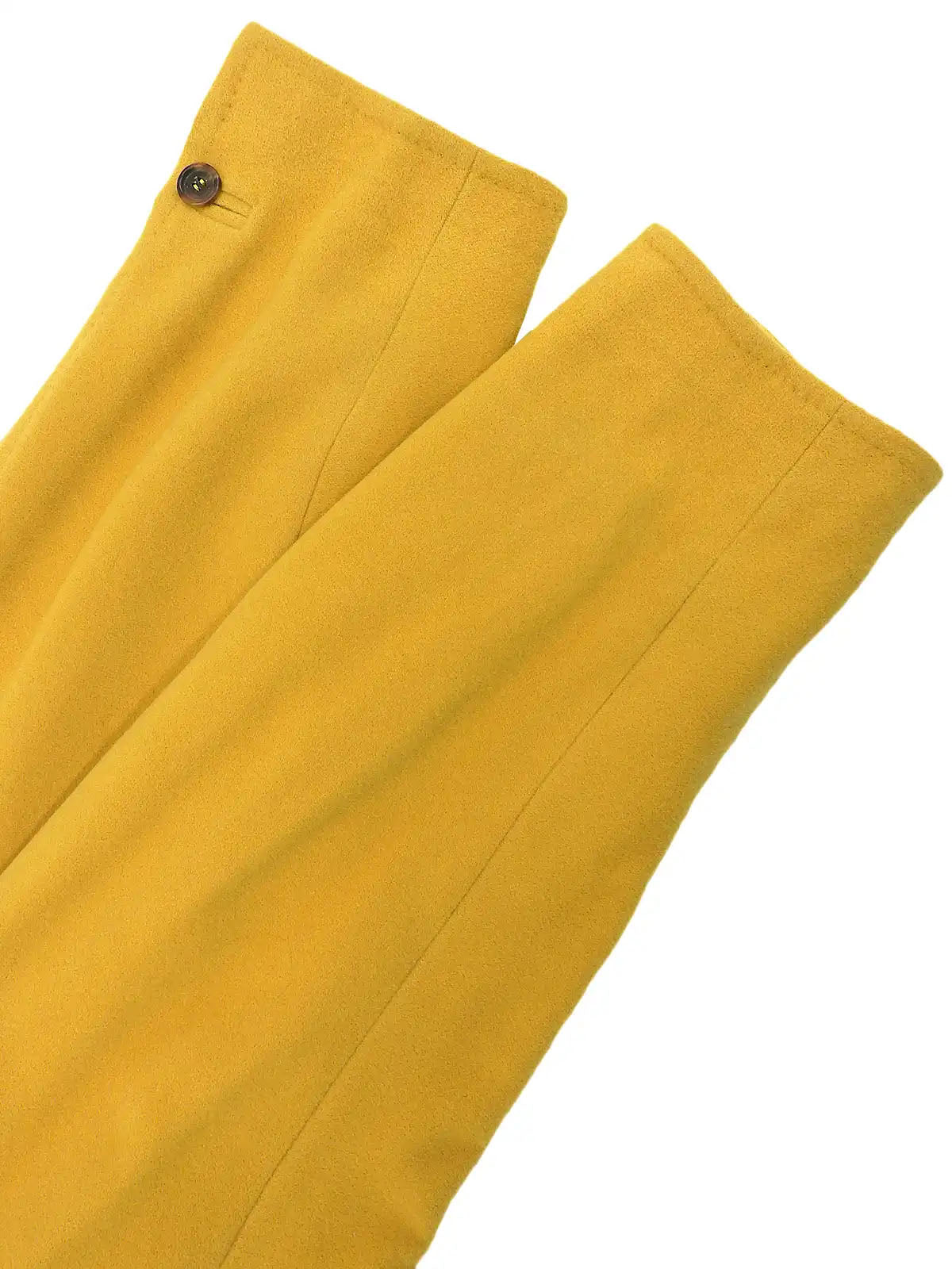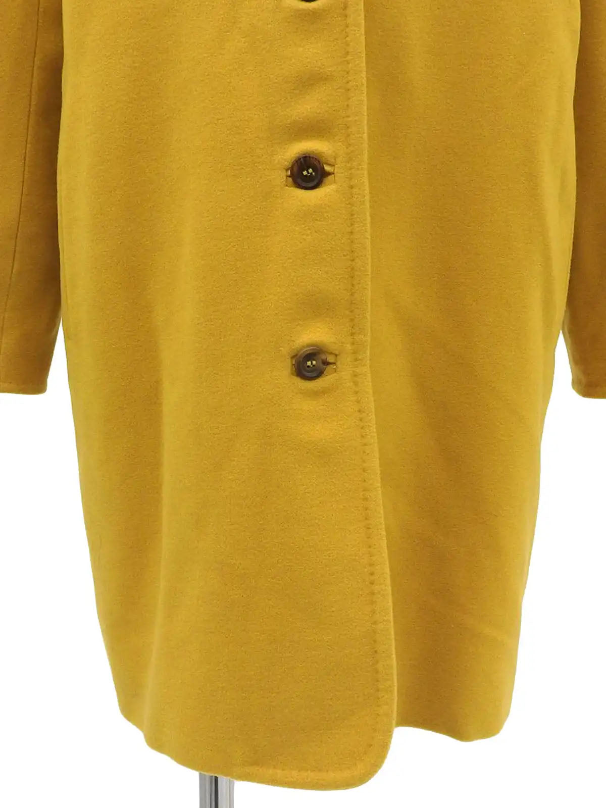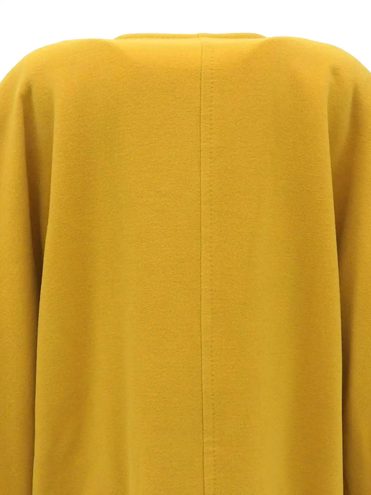 Wool collarless long coat in mustard yellow