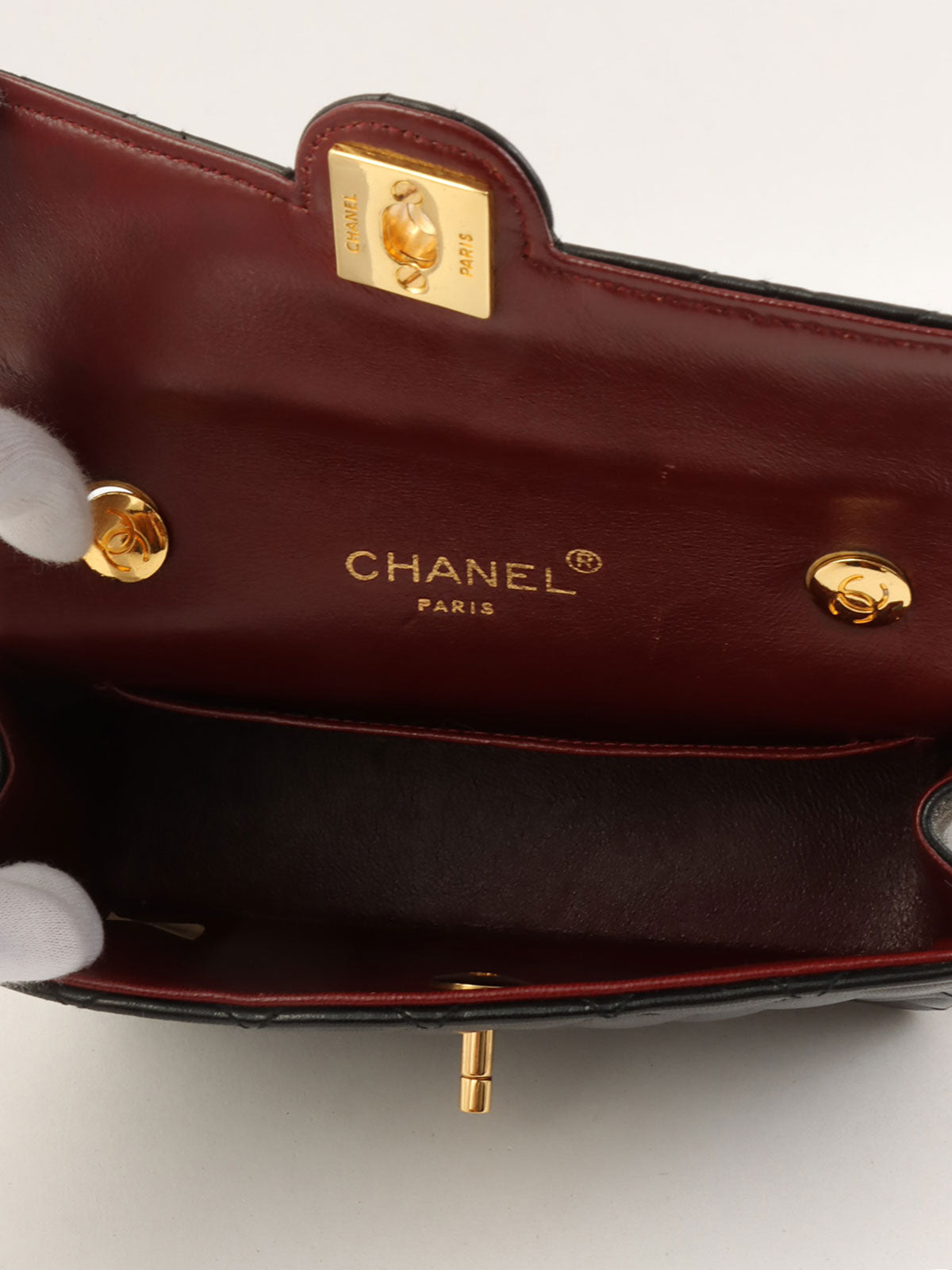 Circa 1990 Circle CC Turn Lock Chain Bag Mini Black
