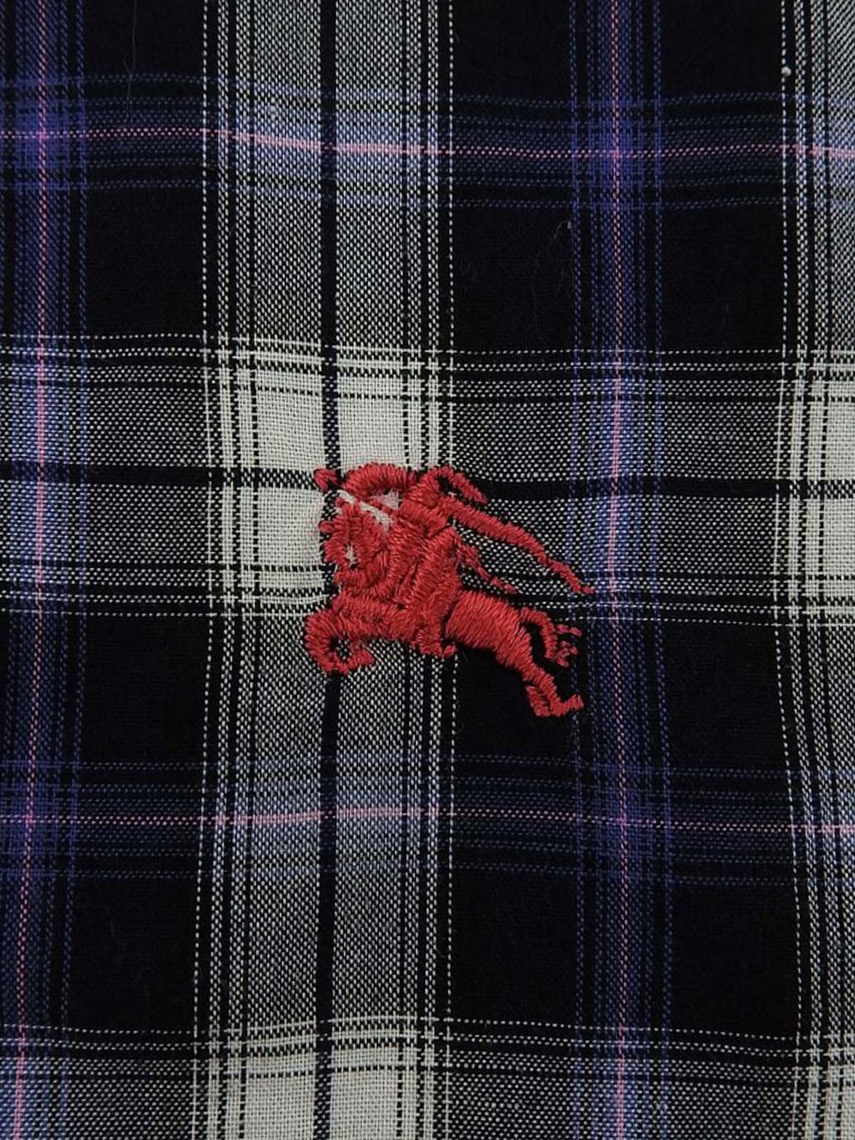 Check pattern logo embroidered short sleeve shirt in gray/navy/white