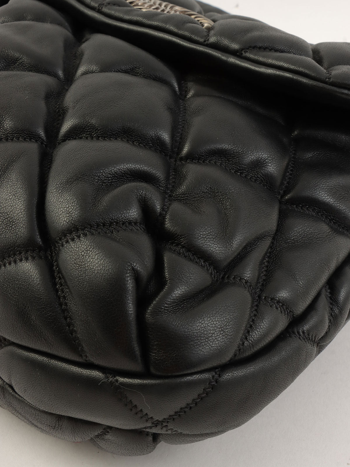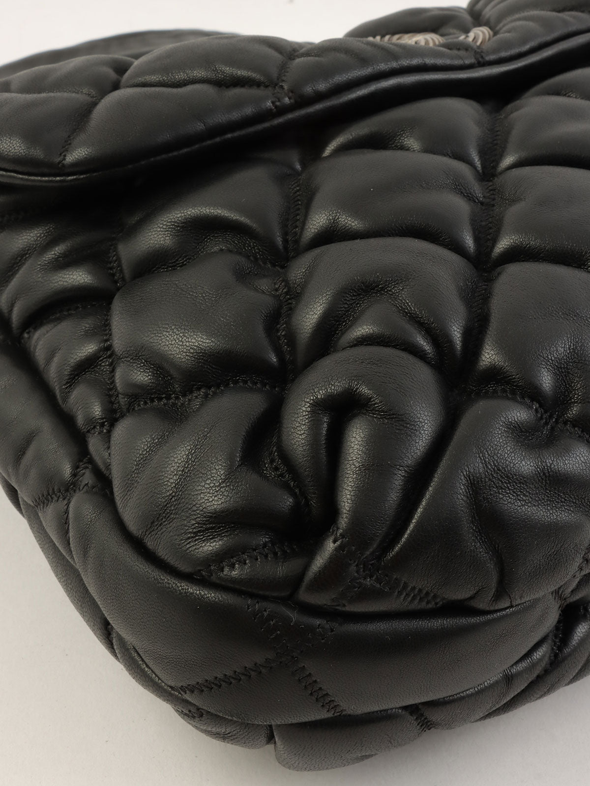 2008 Bubble Quilt CC Mark Plate Chain Shoulder Bag Black