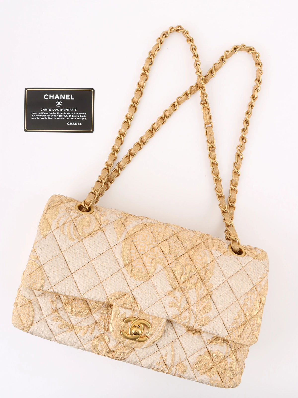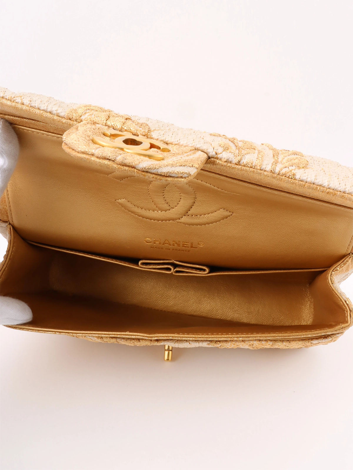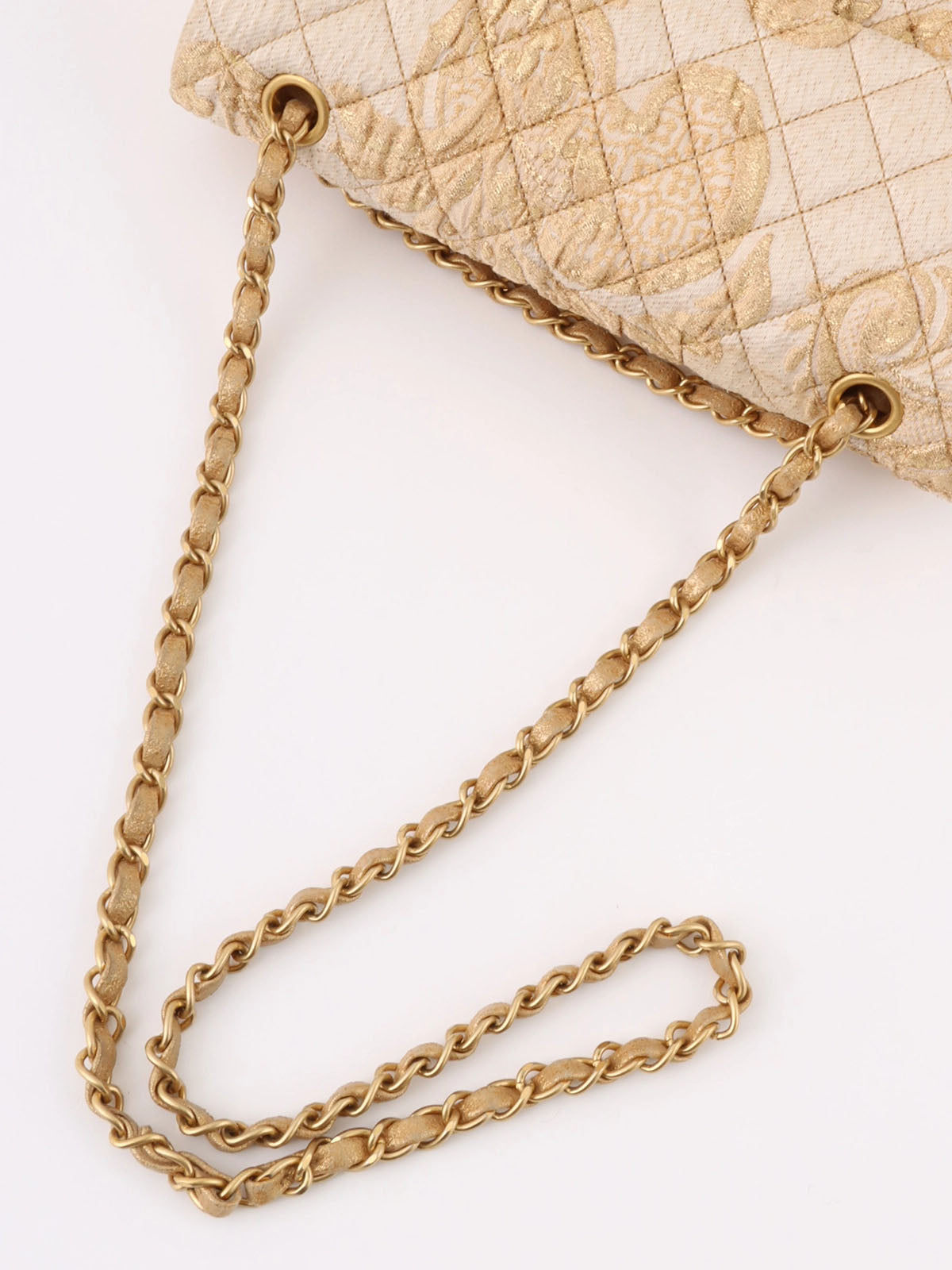 2013年頃製 ジャガードクラシックフラップチェーンバッグ ベージュ/ゴールド