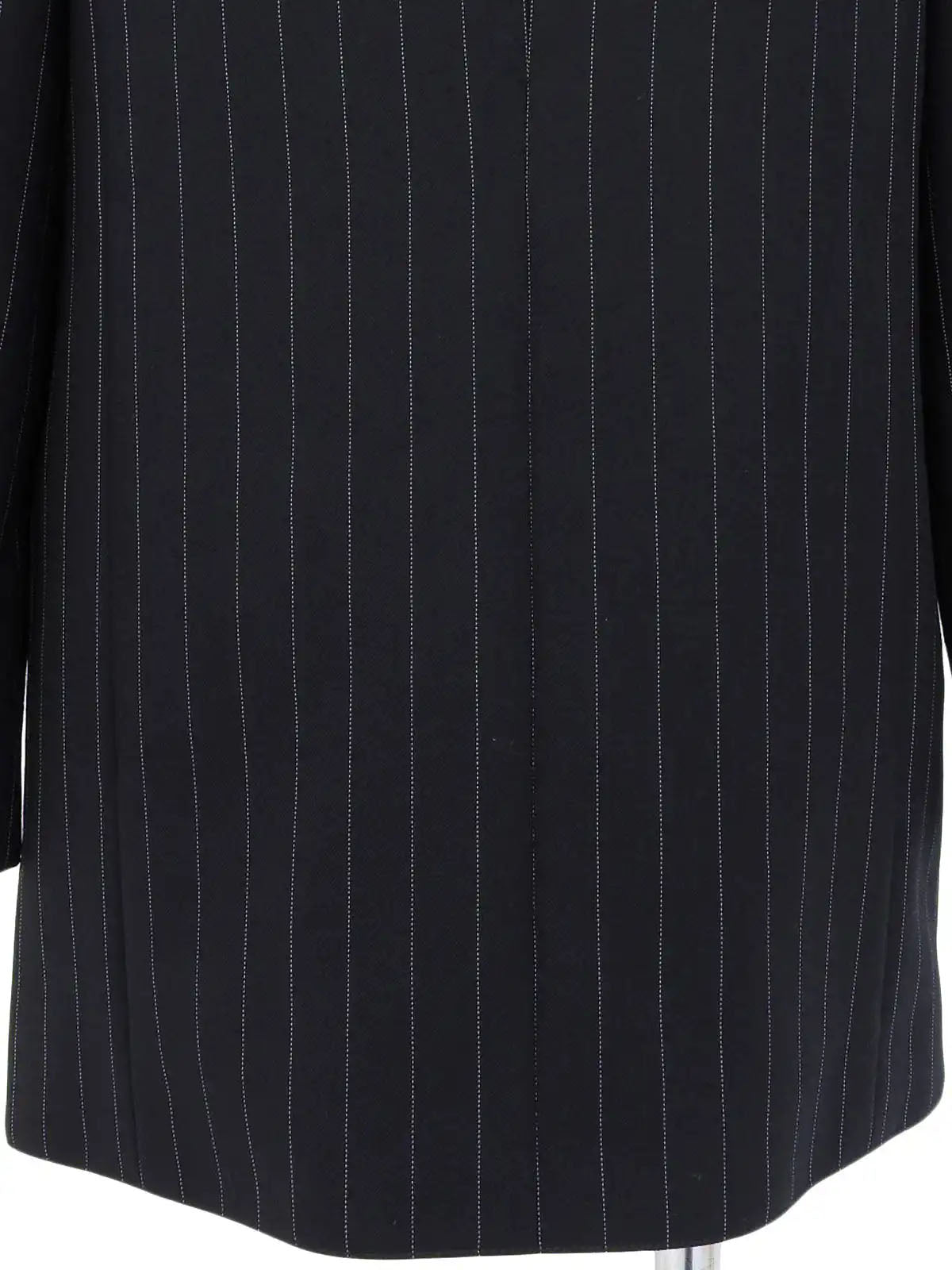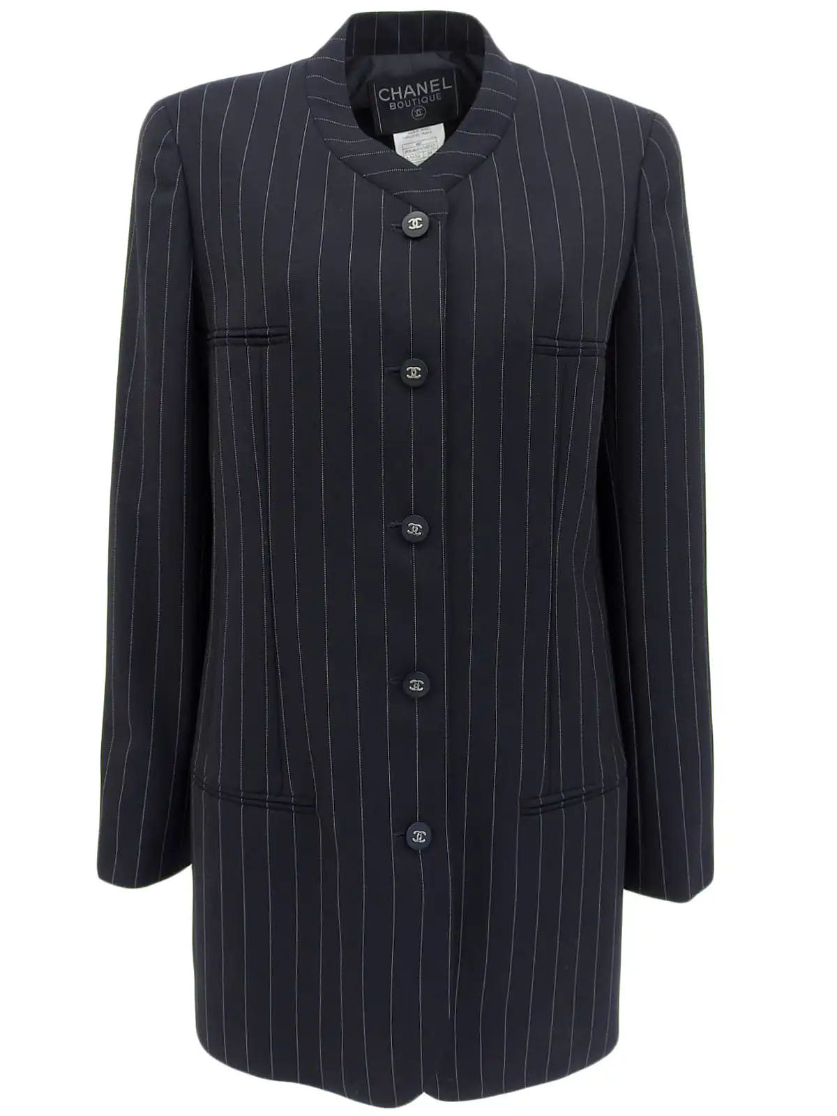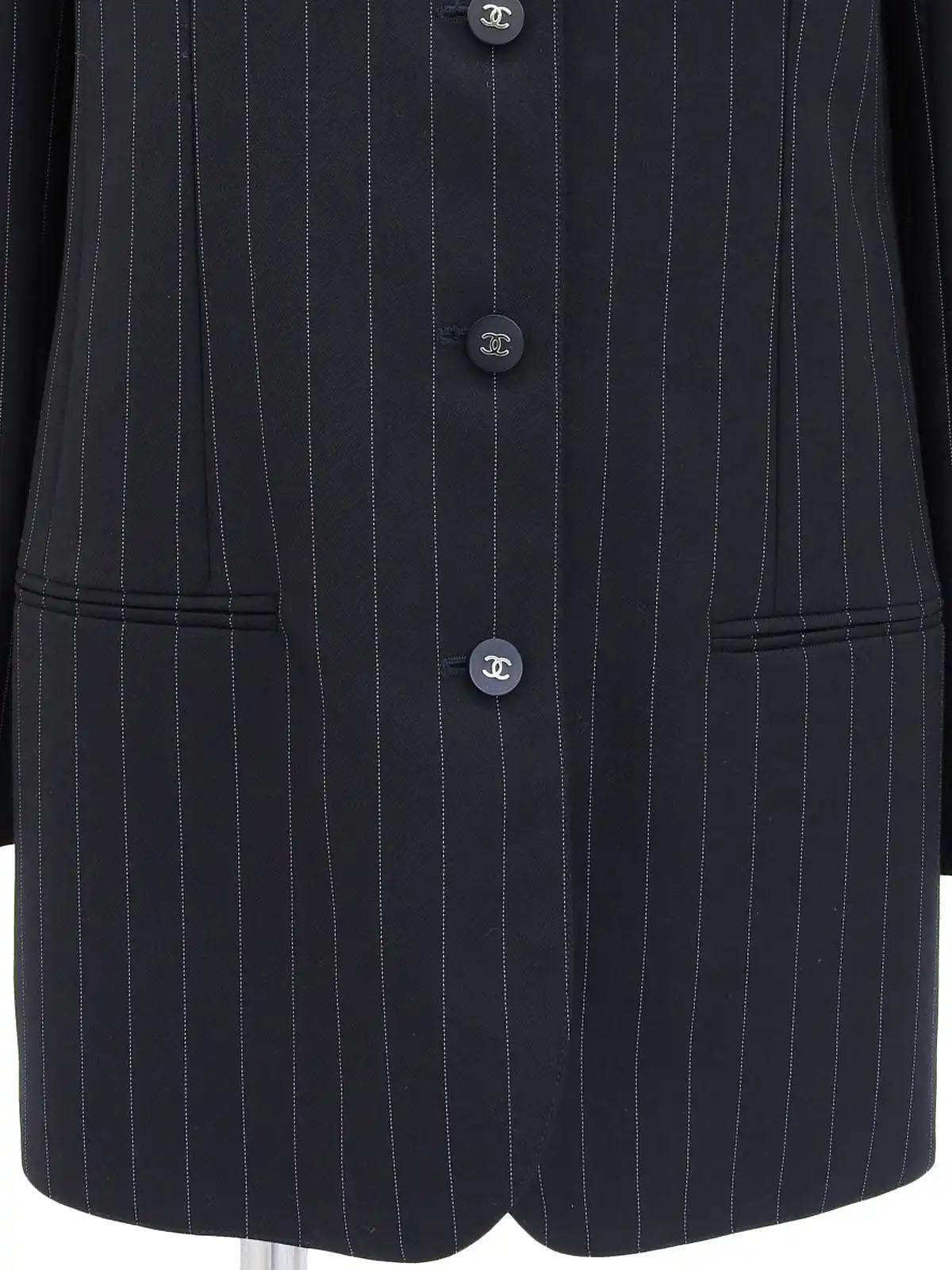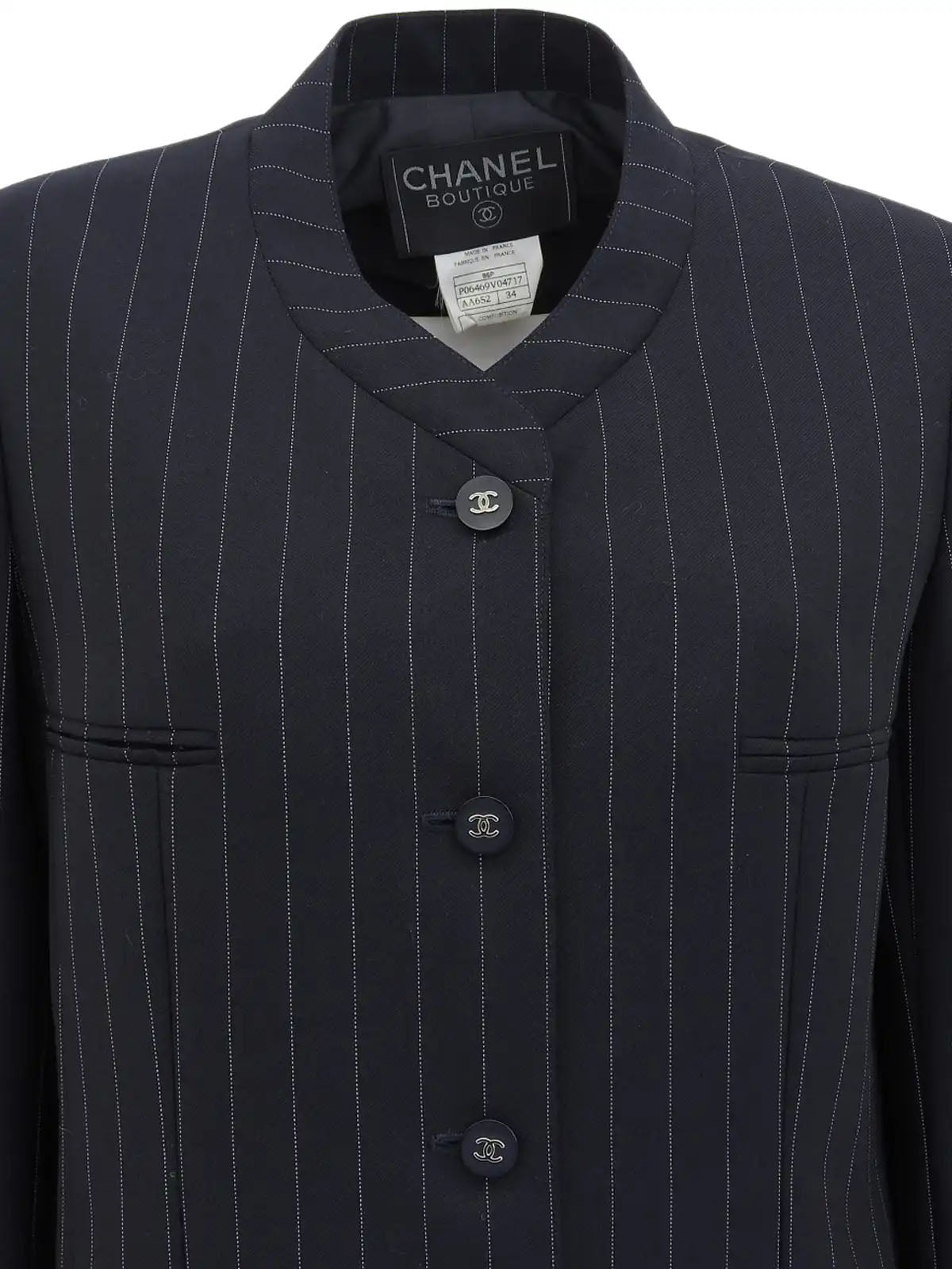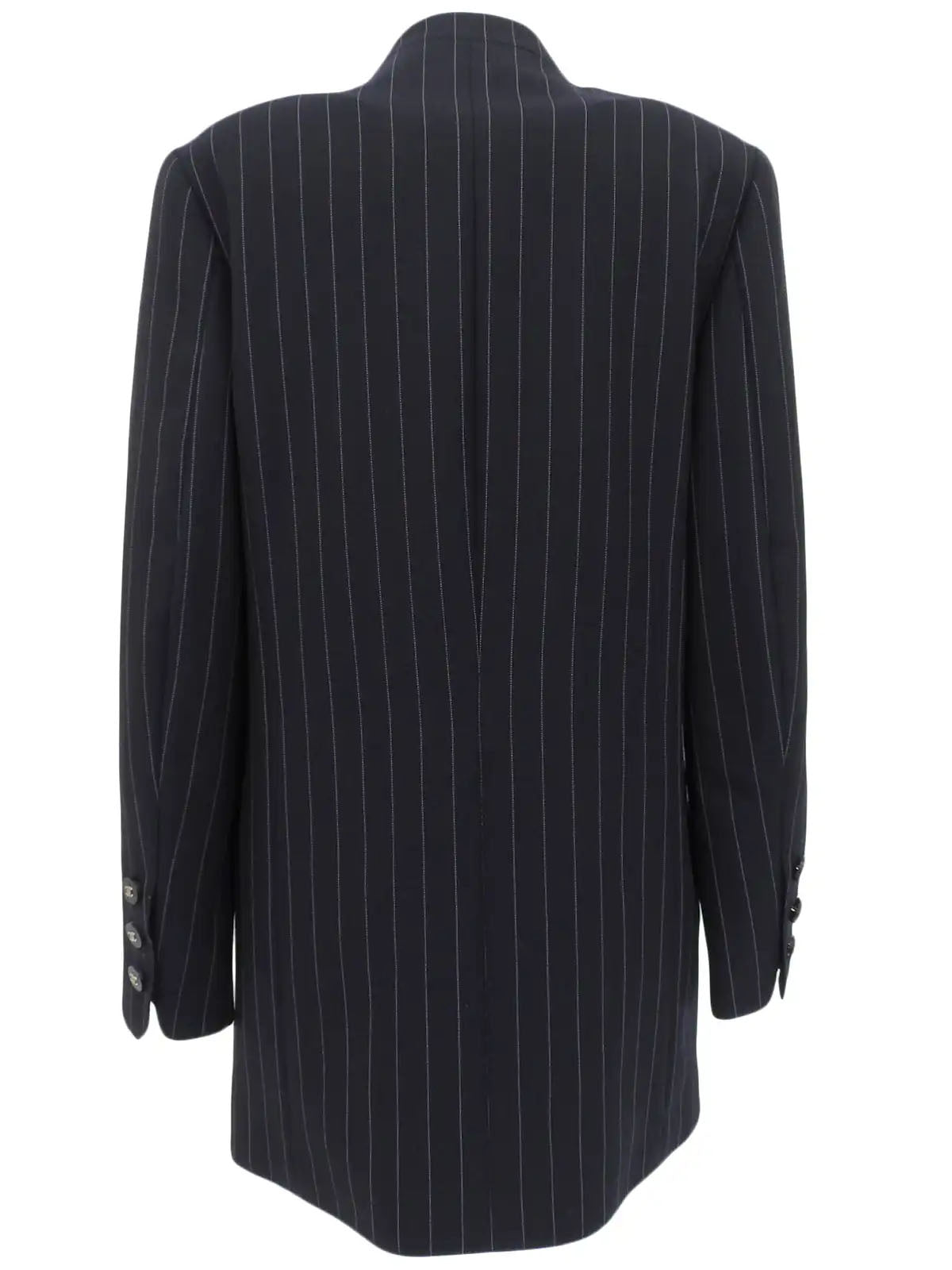 ウールストライプパターンCCマークボタンノーカラージャケット ネイビー