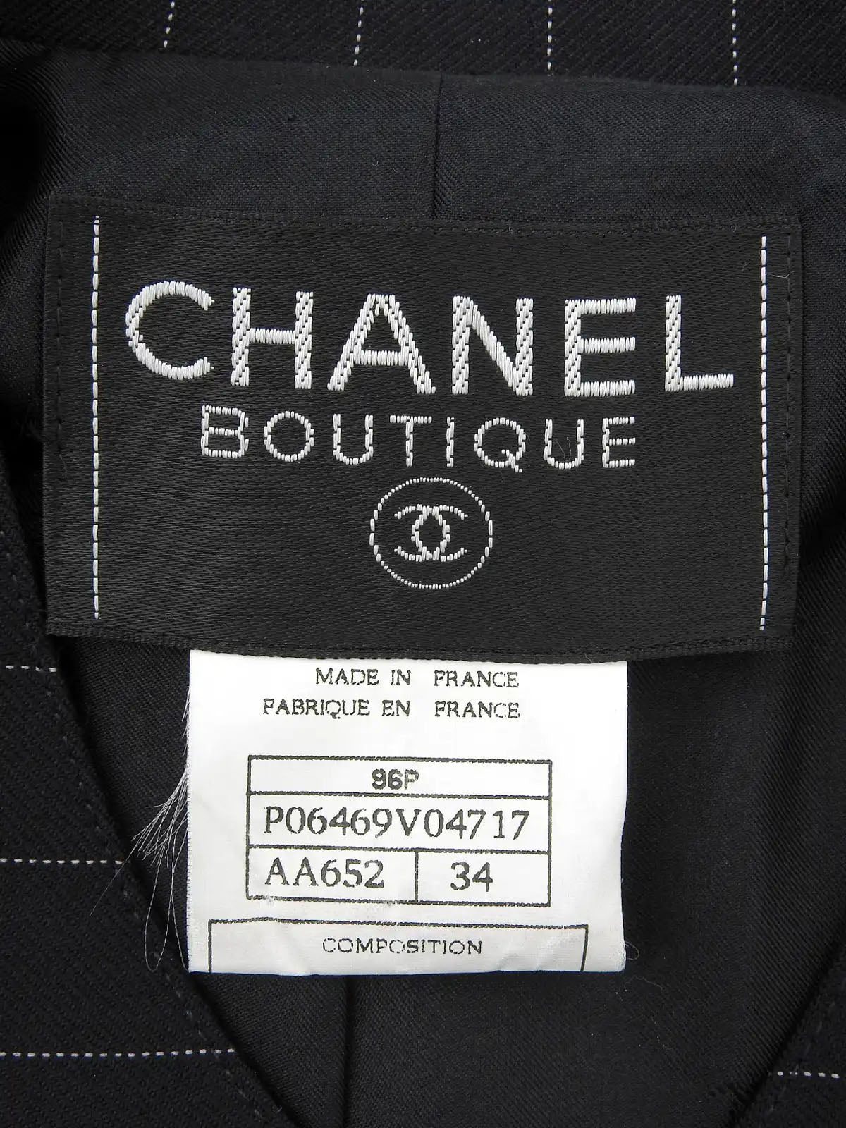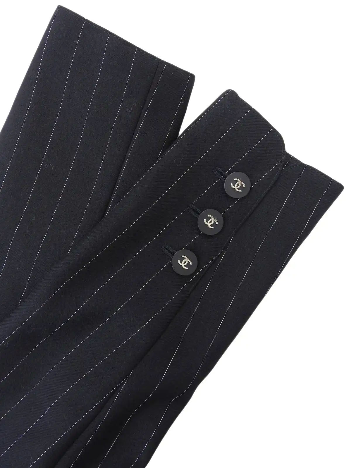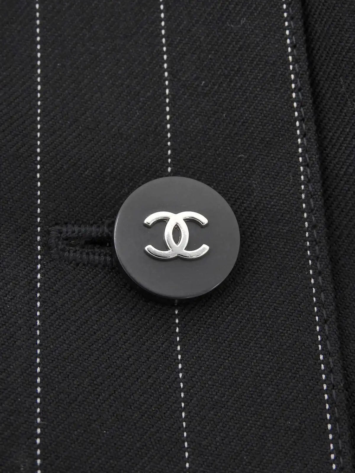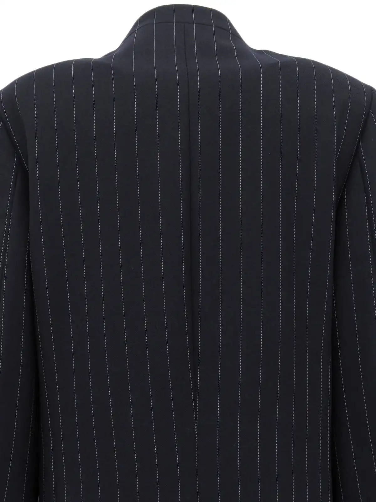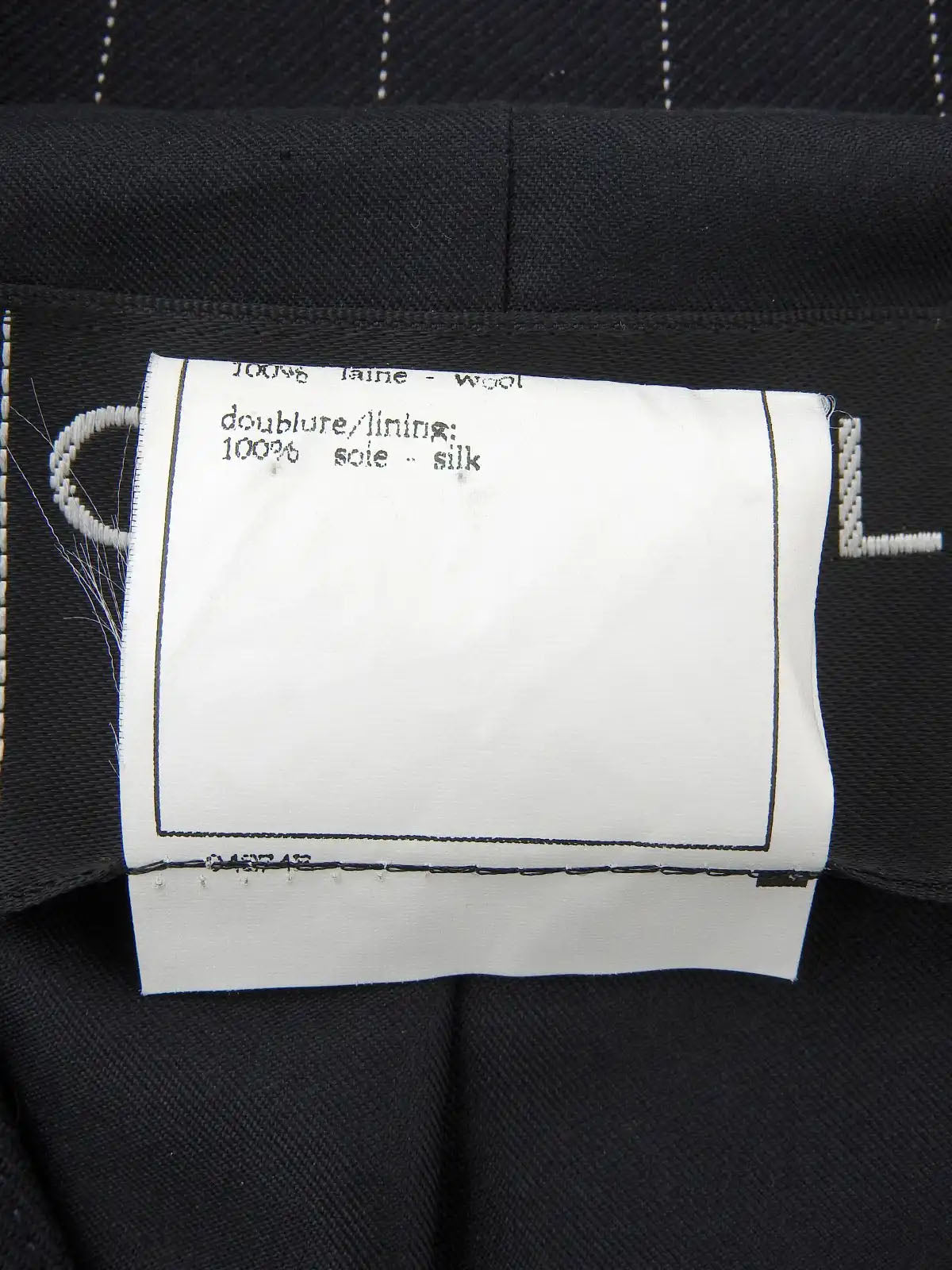 ウールストライプパターンCCマークボタンノーカラージャケット ネイビー