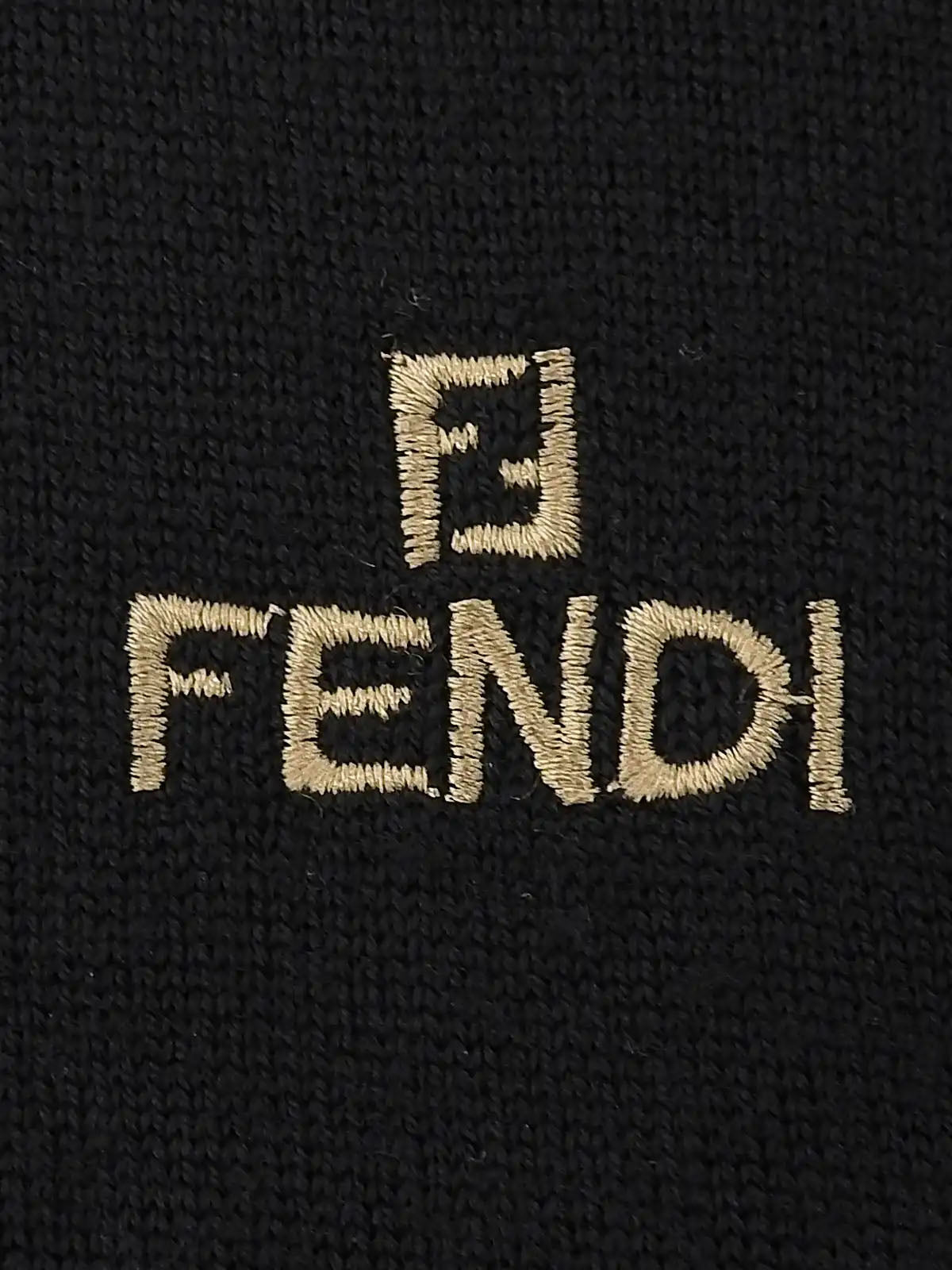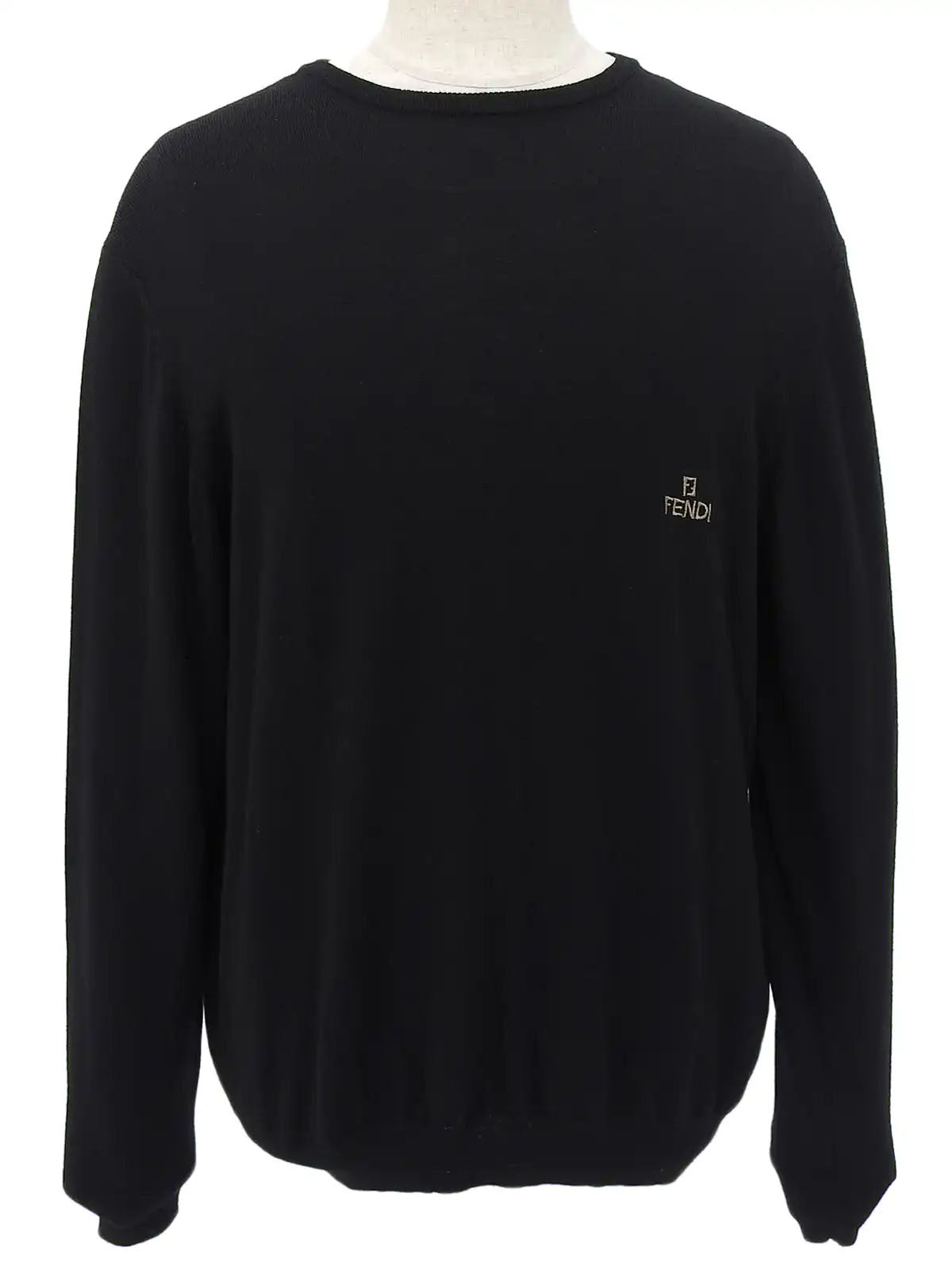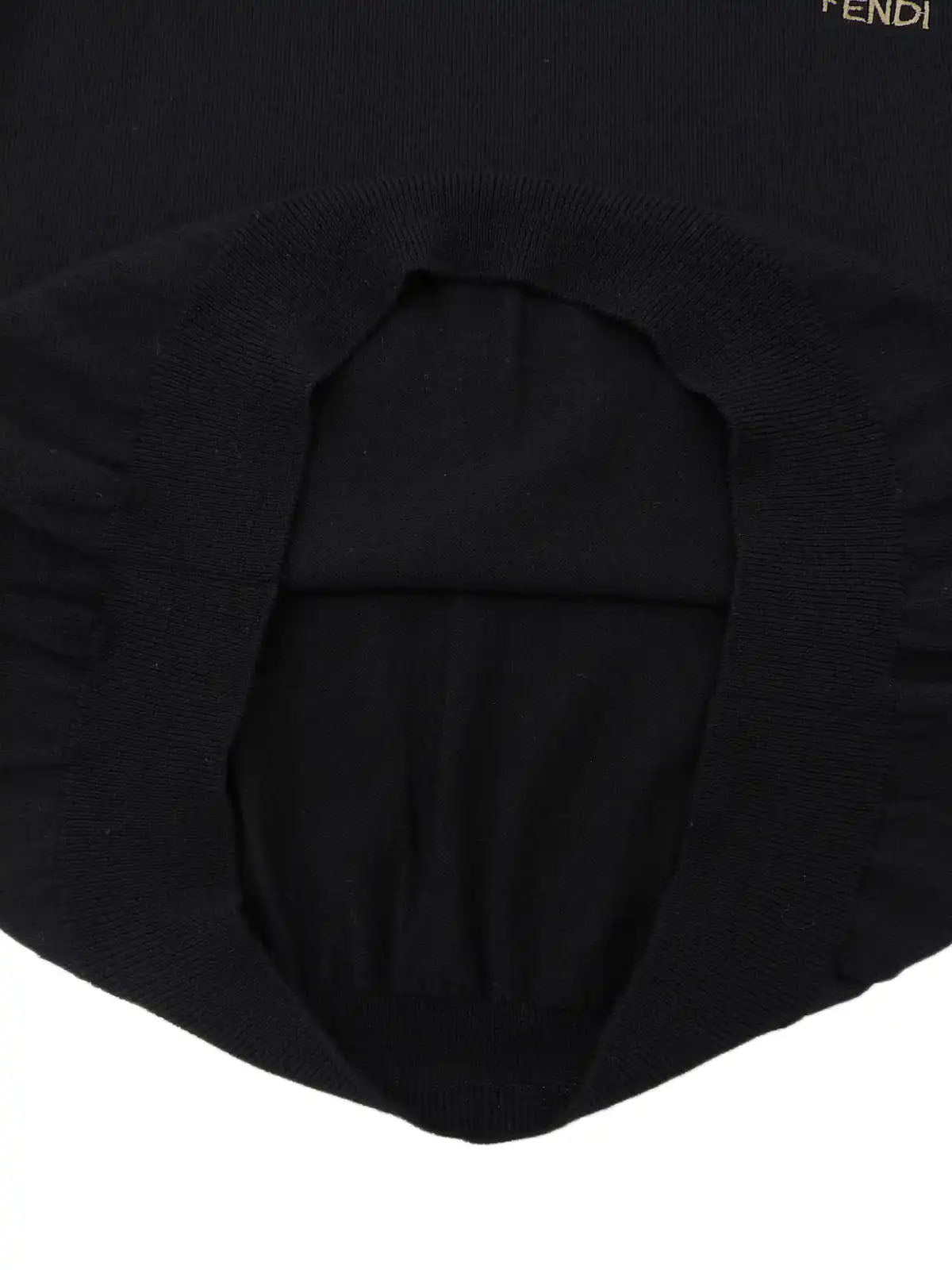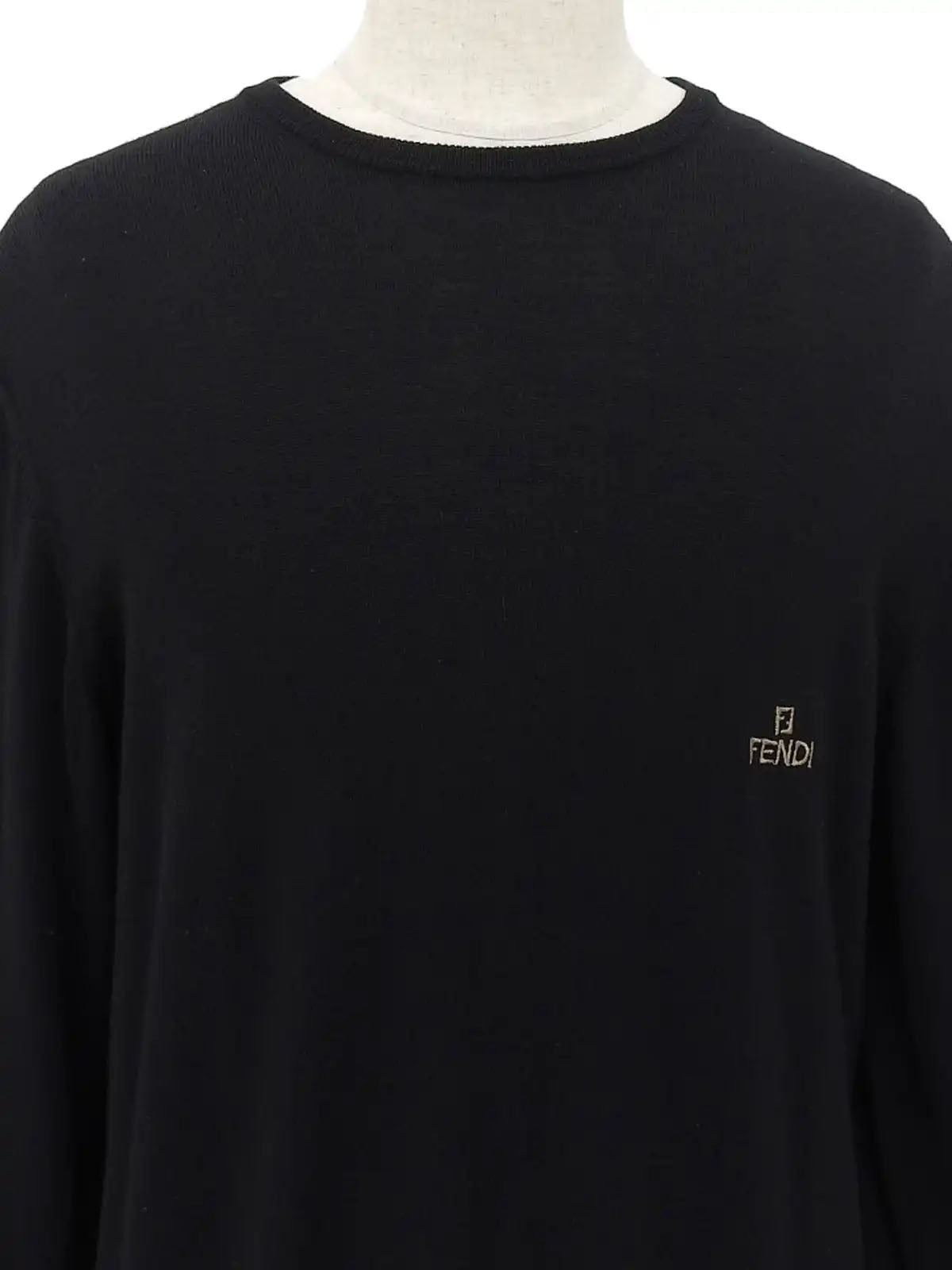 ロゴ刺繍ロングスリーブニットトップス ブラック