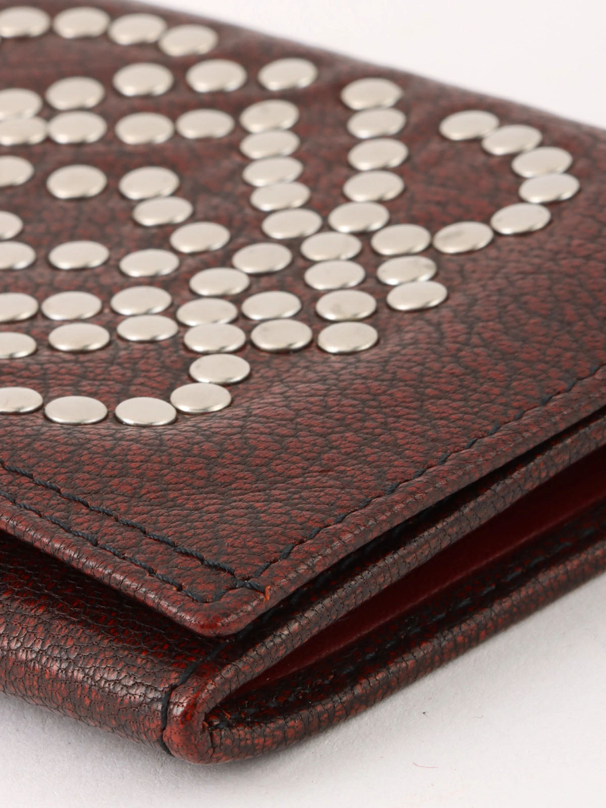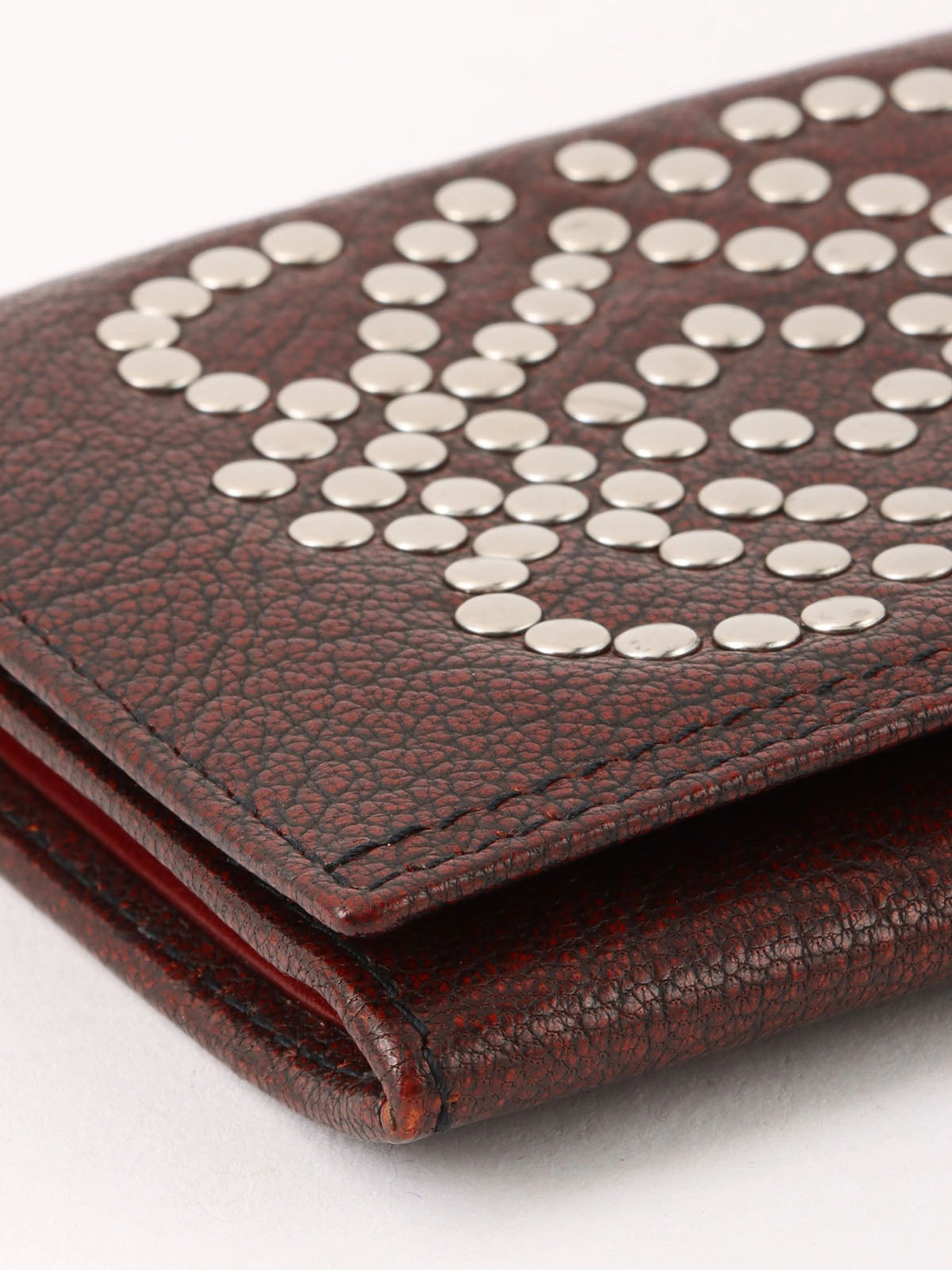 スタッズアナグラムロゴカードケース レッドブラウン