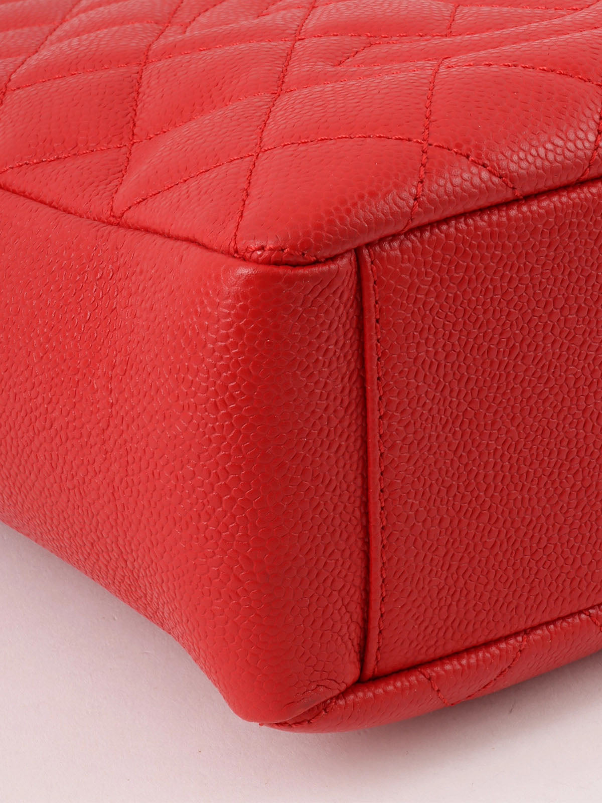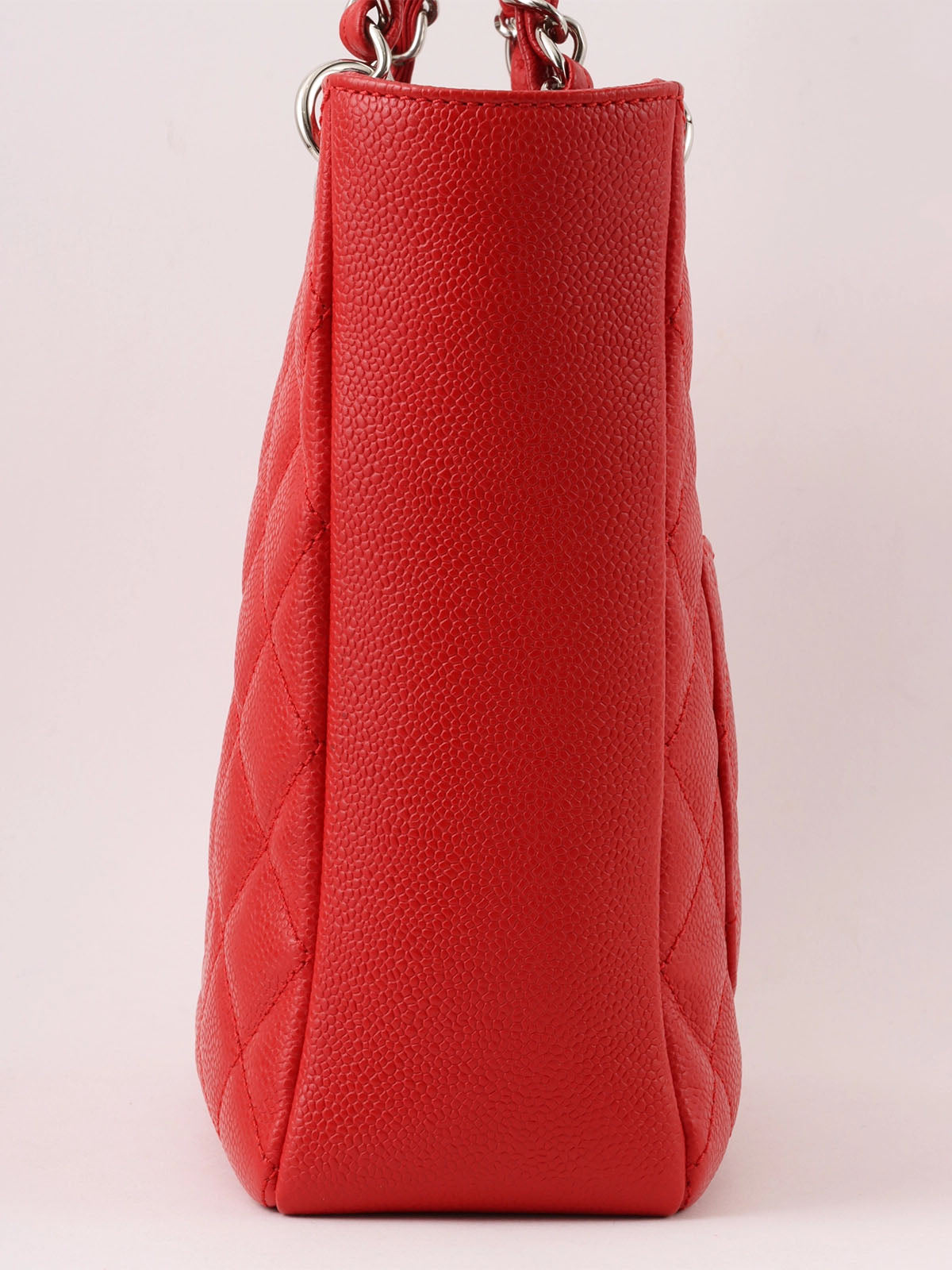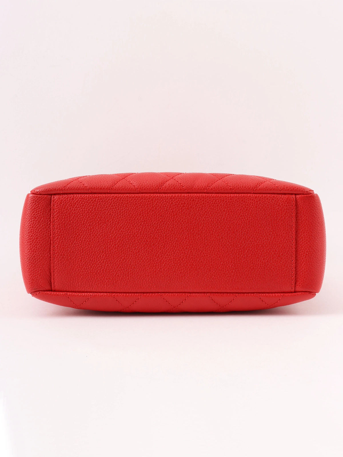 2014年頃製 キャビアスキンCCマークステッチチェーントートバッグ レッド