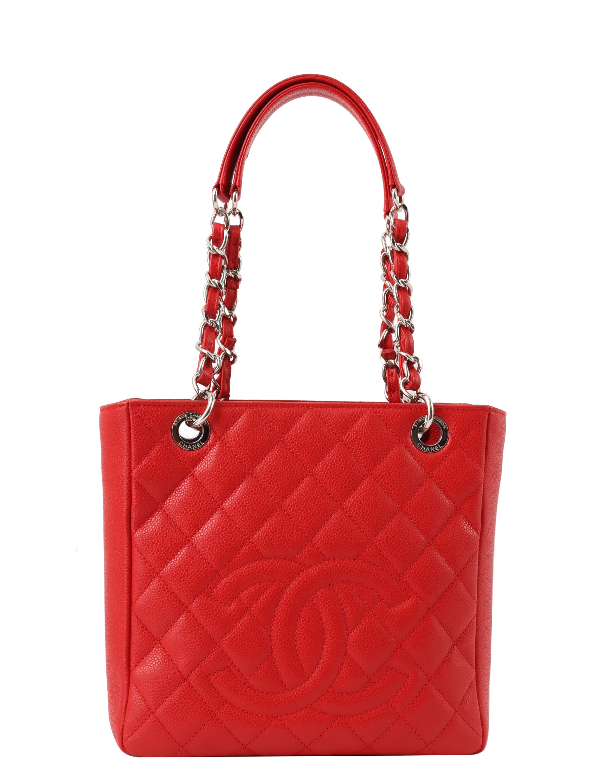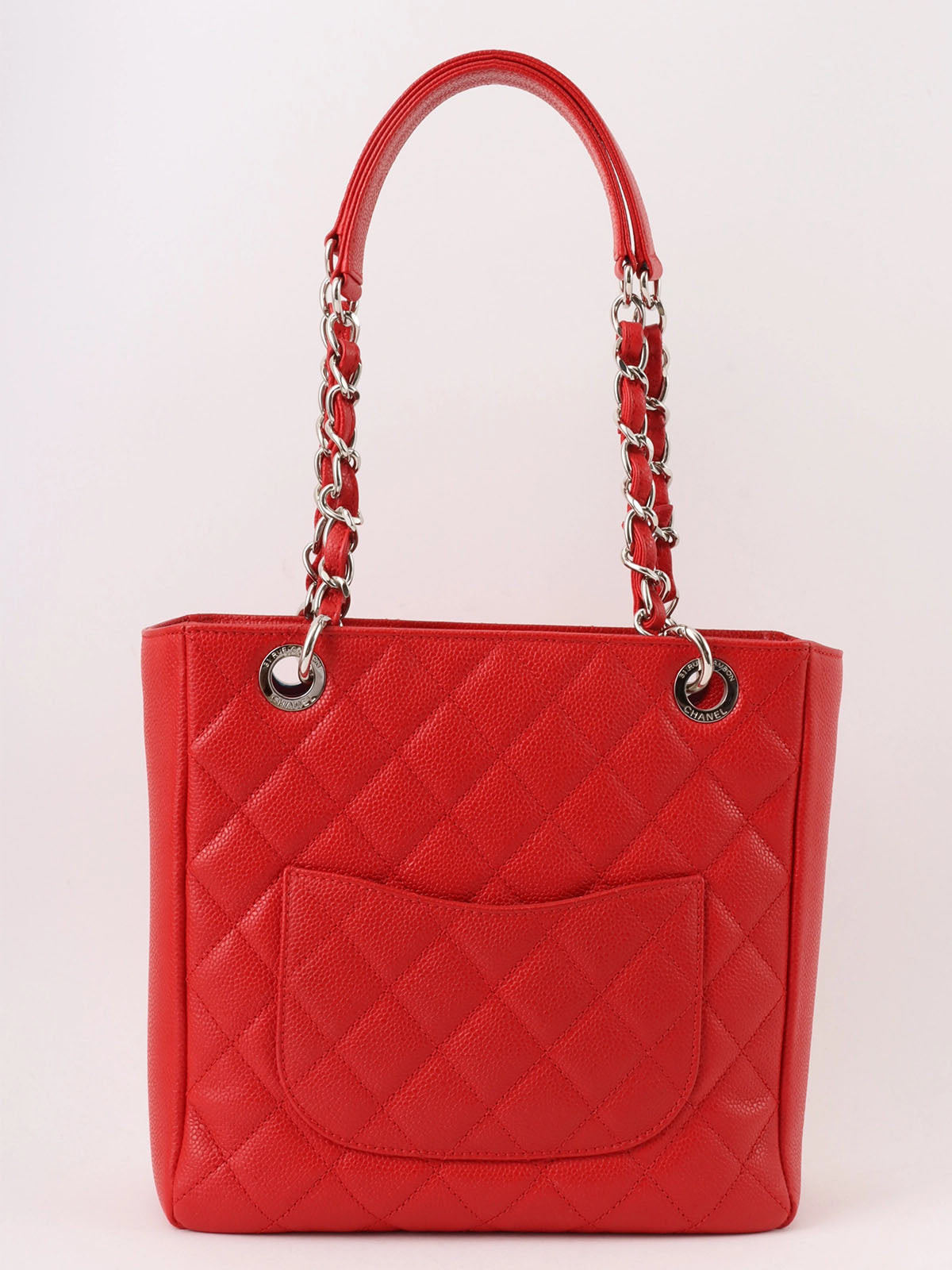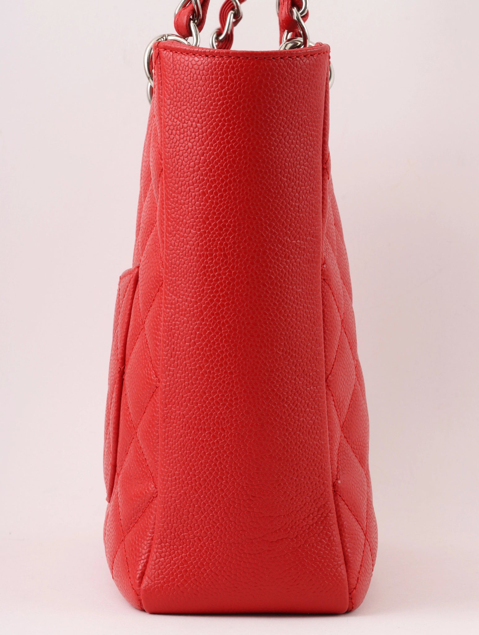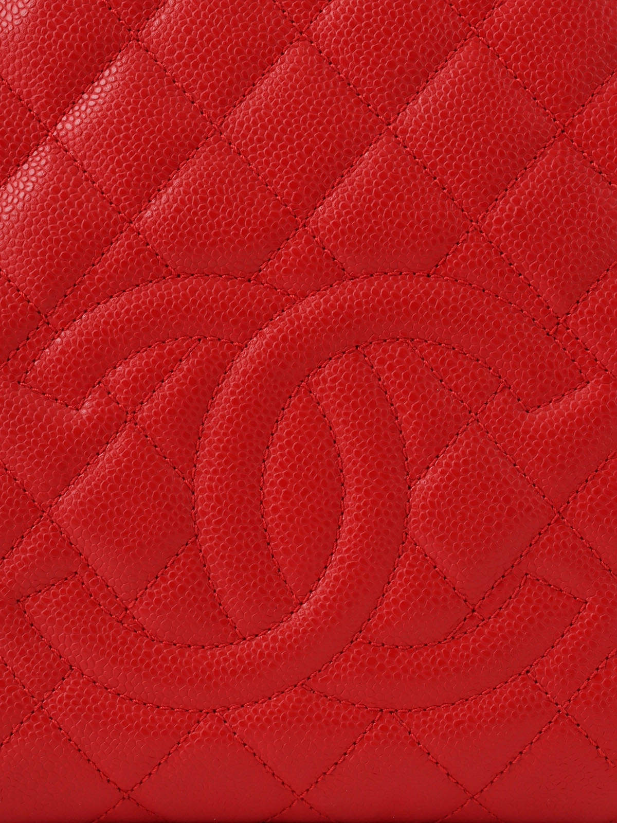 2014年頃製 キャビアスキンCCマークステッチチェーントートバッグ レッド