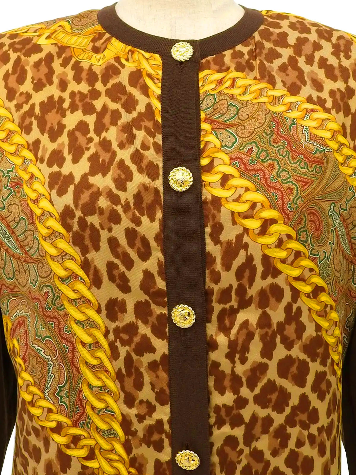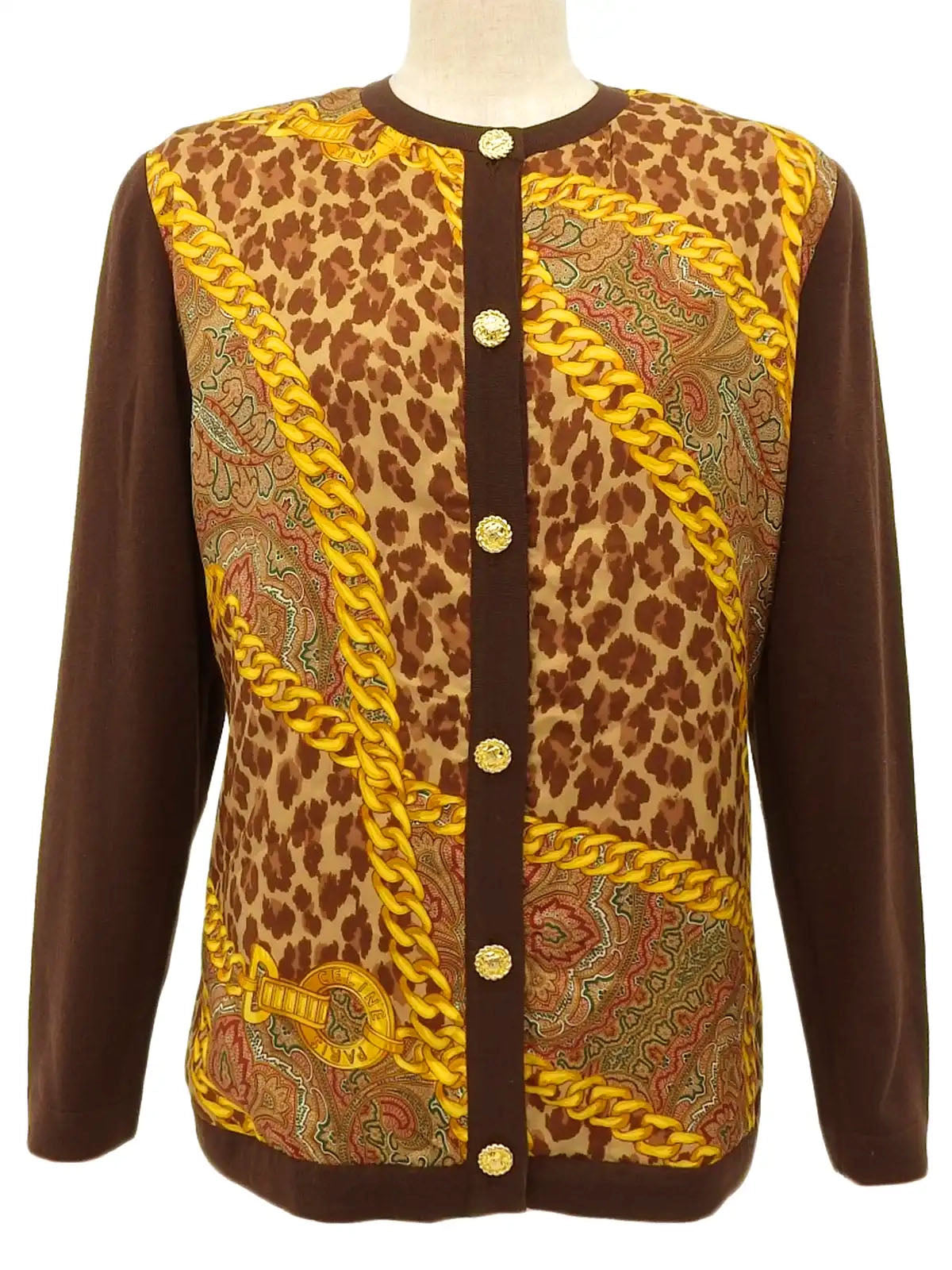 レオパードサークルロゴチェーンデザインパターンカーディガン ブラウン/マルチ