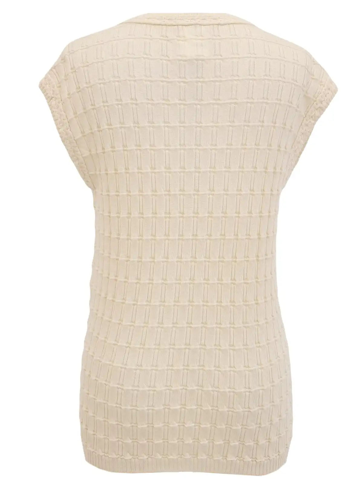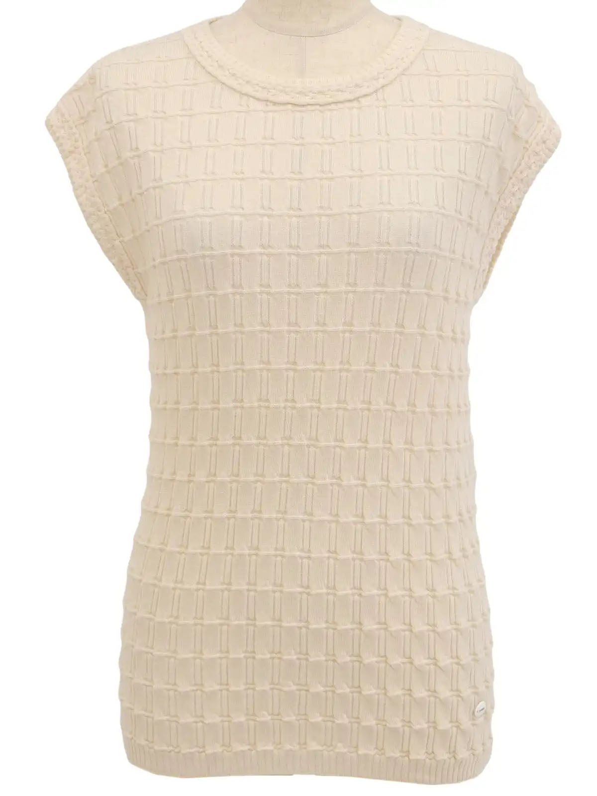 ロゴプレートノースリーブニットトップス アイボリー