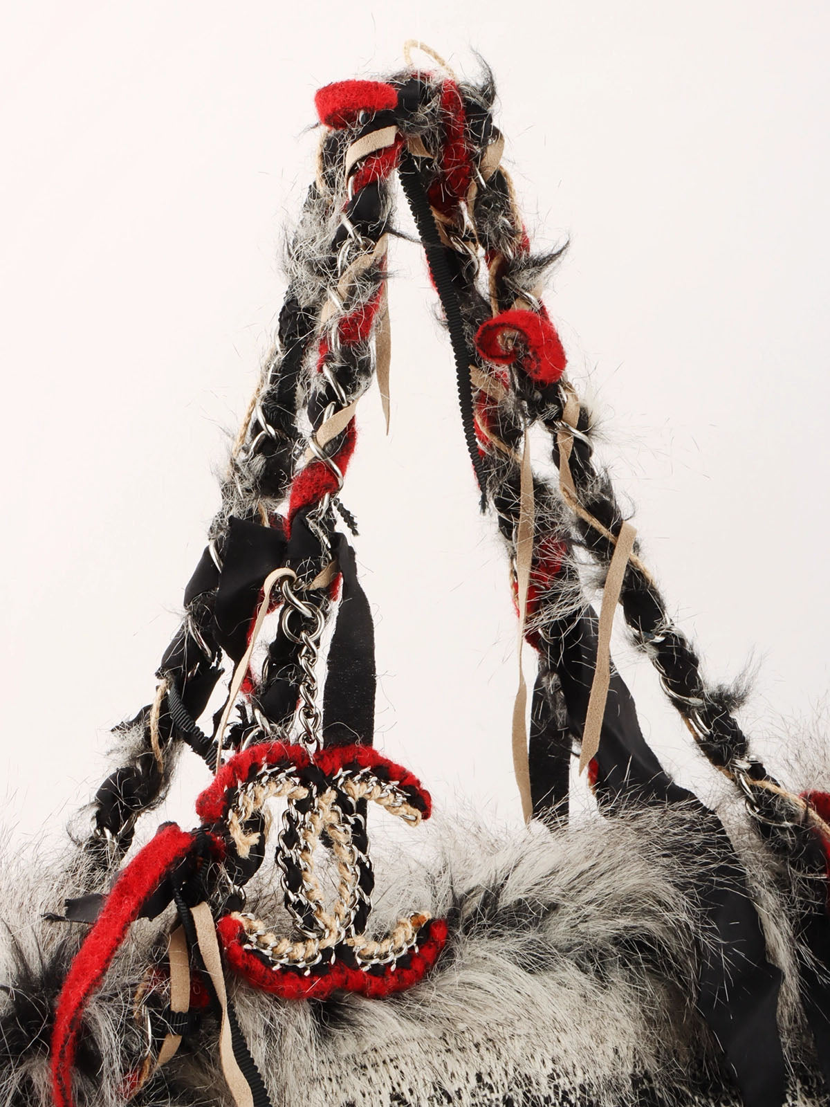 2010年頃製 ファンタジーファーCCマークチャームショルダーバッグ グレー/マルチ