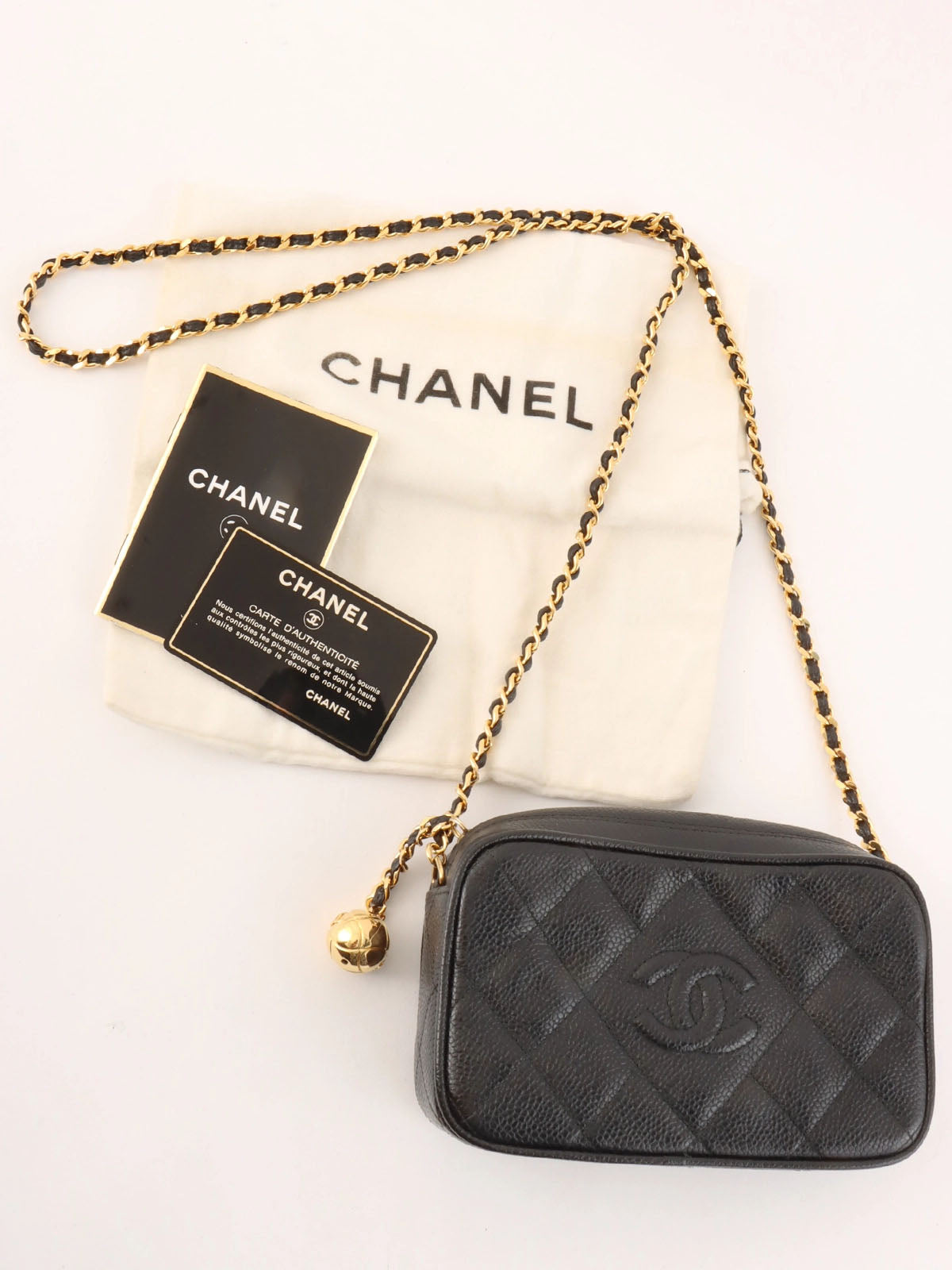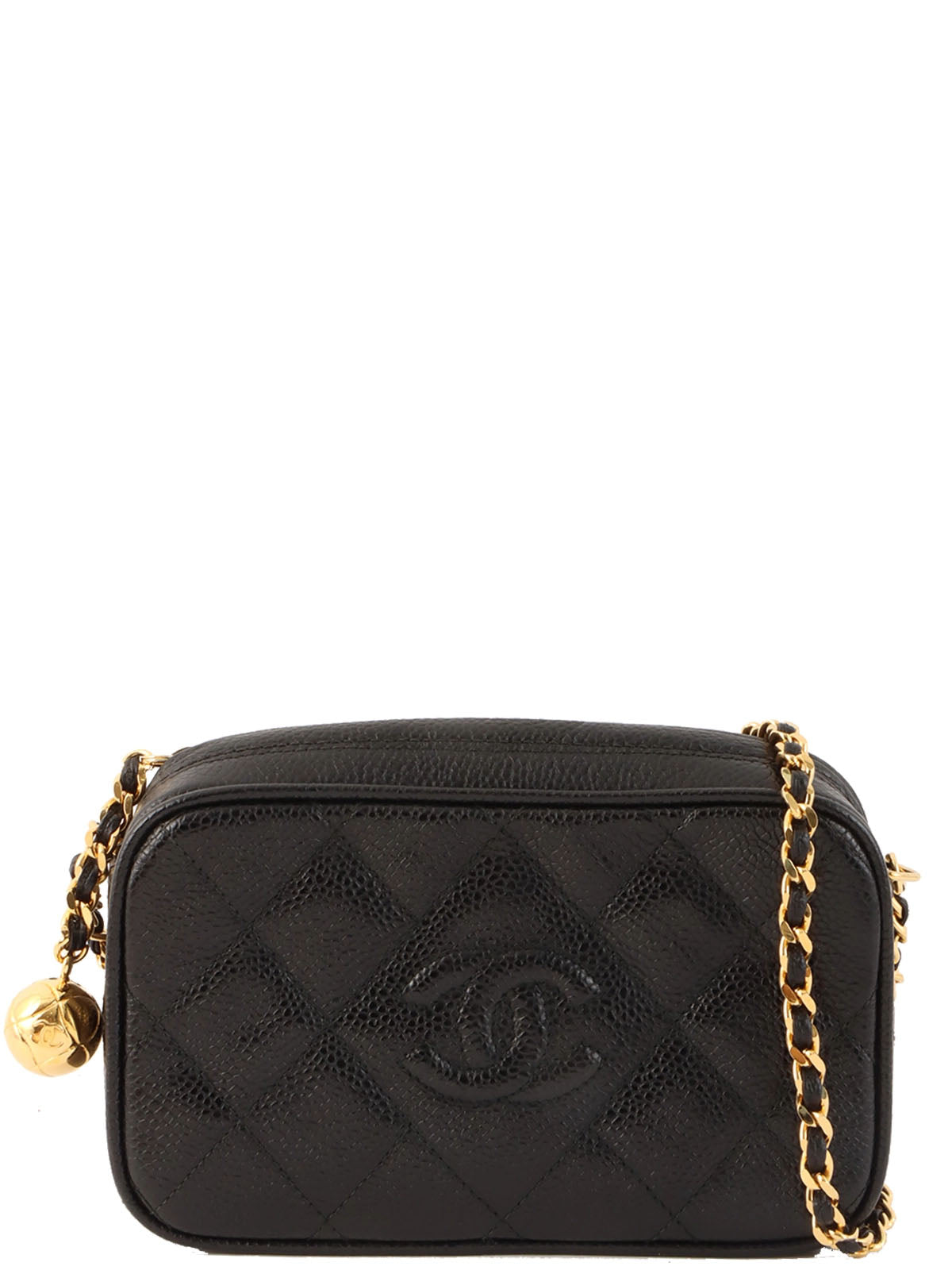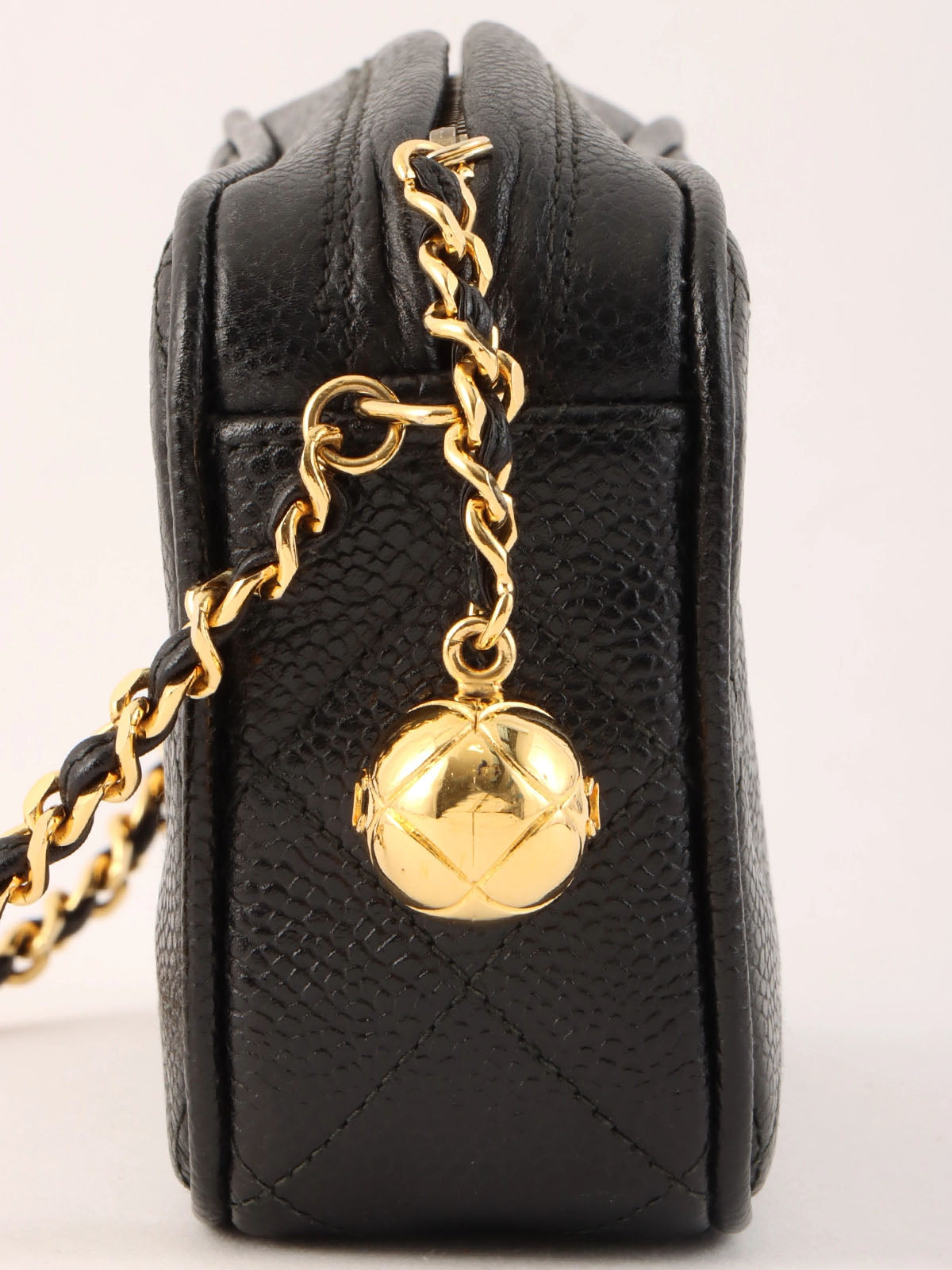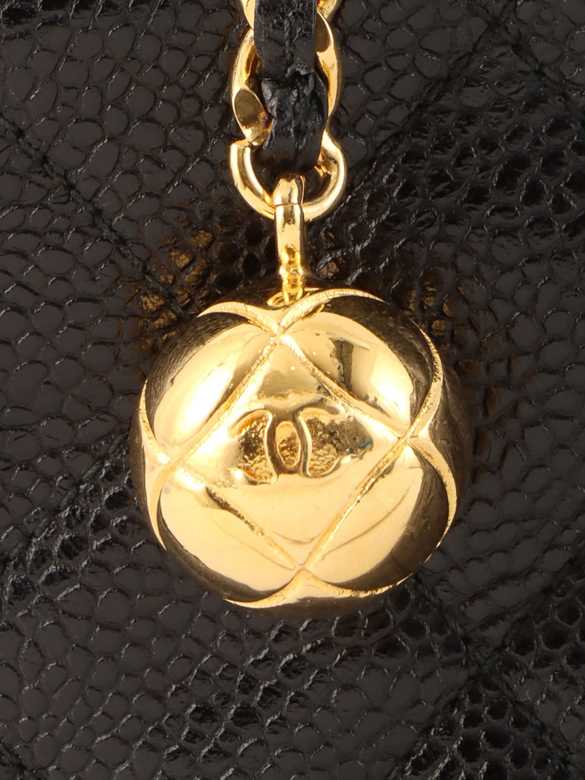 1992年頃製 キャビアスキンCCマークボールチャームミニチェーンショルダーバッグ ブラック