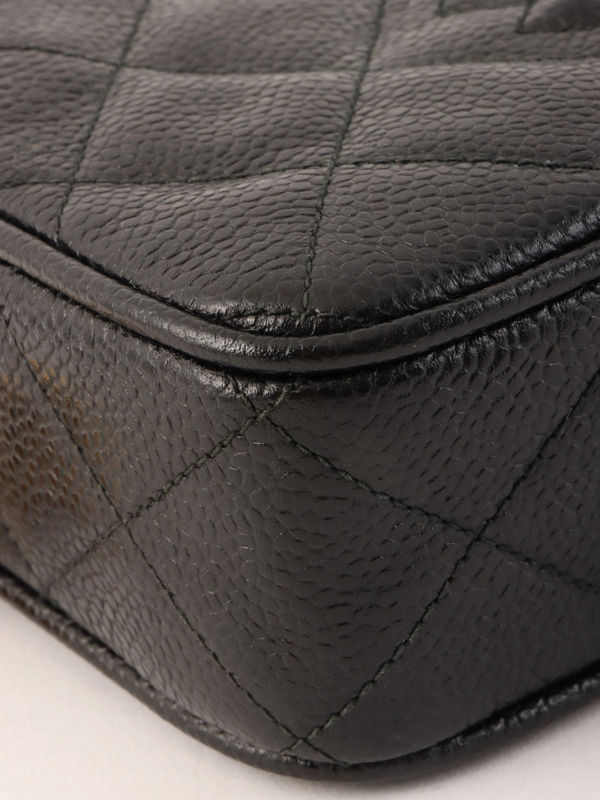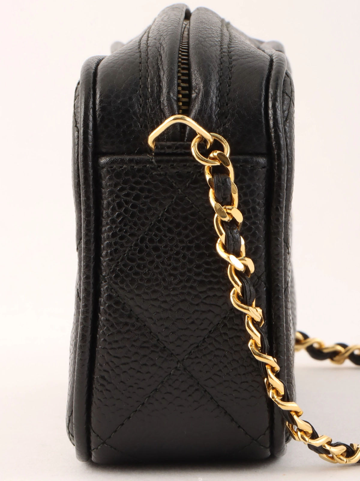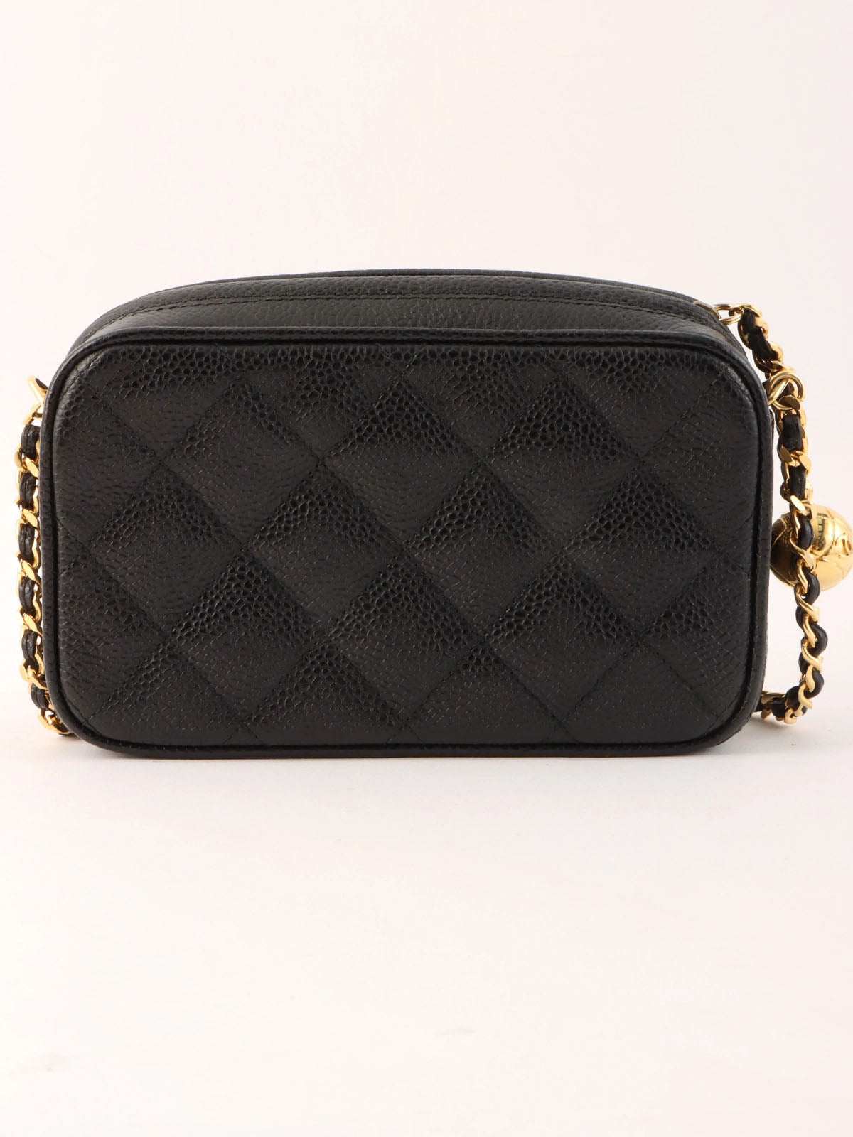 1992年頃製 キャビアスキンCCマークボールチャームミニチェーンショルダーバッグ ブラック