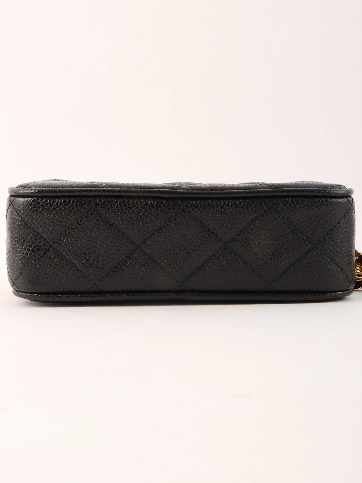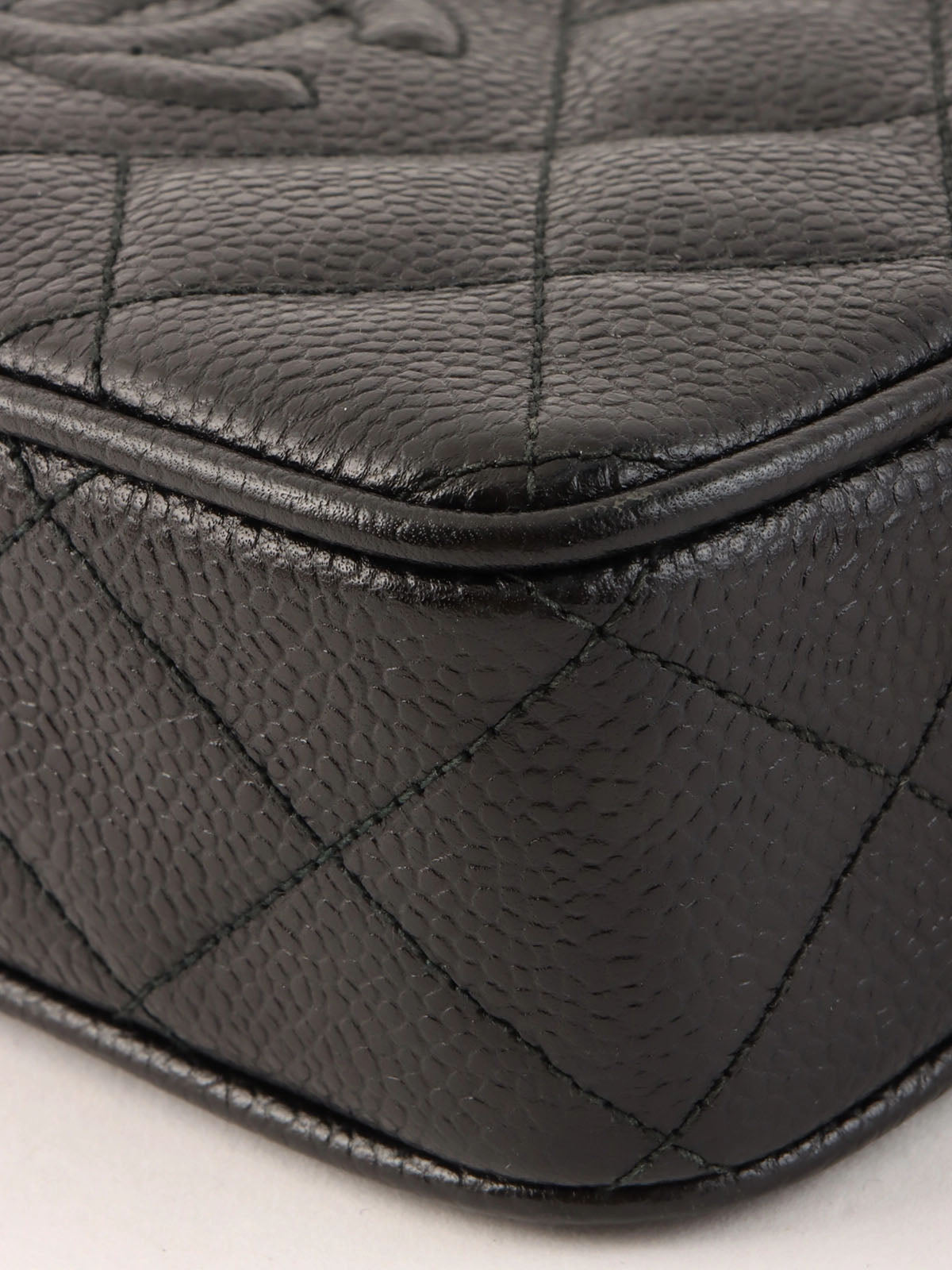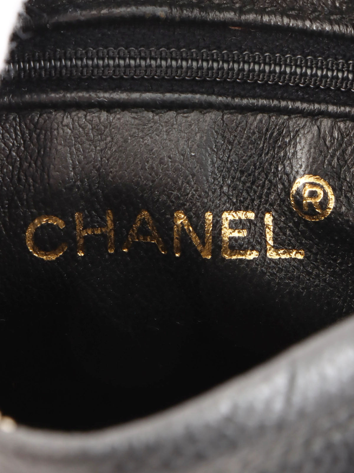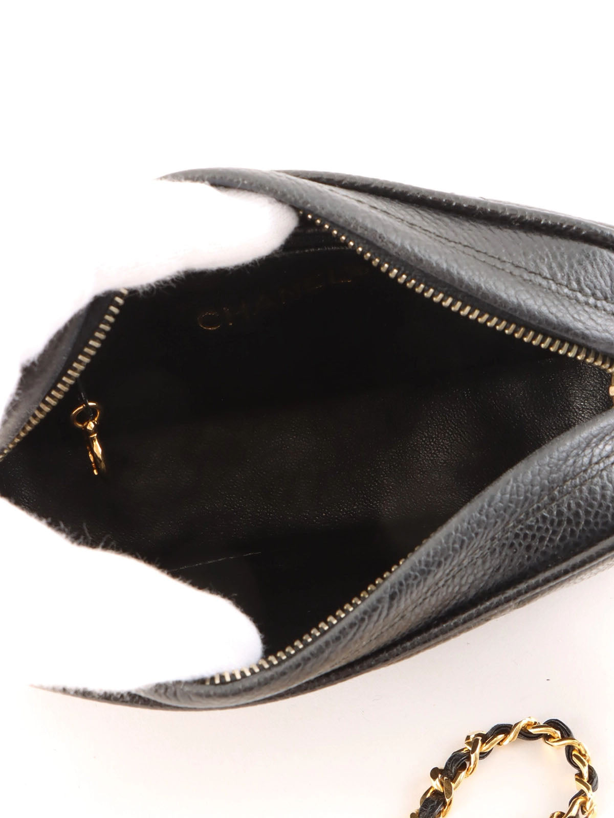 1992年頃製 キャビアスキンCCマークボールチャームミニチェーンショルダーバッグ ブラック