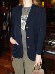 ウールマカダムボタンジャケット ネイビー