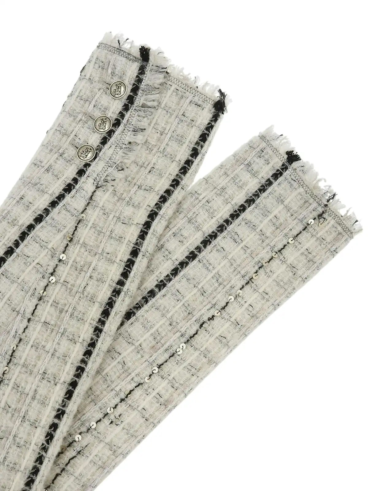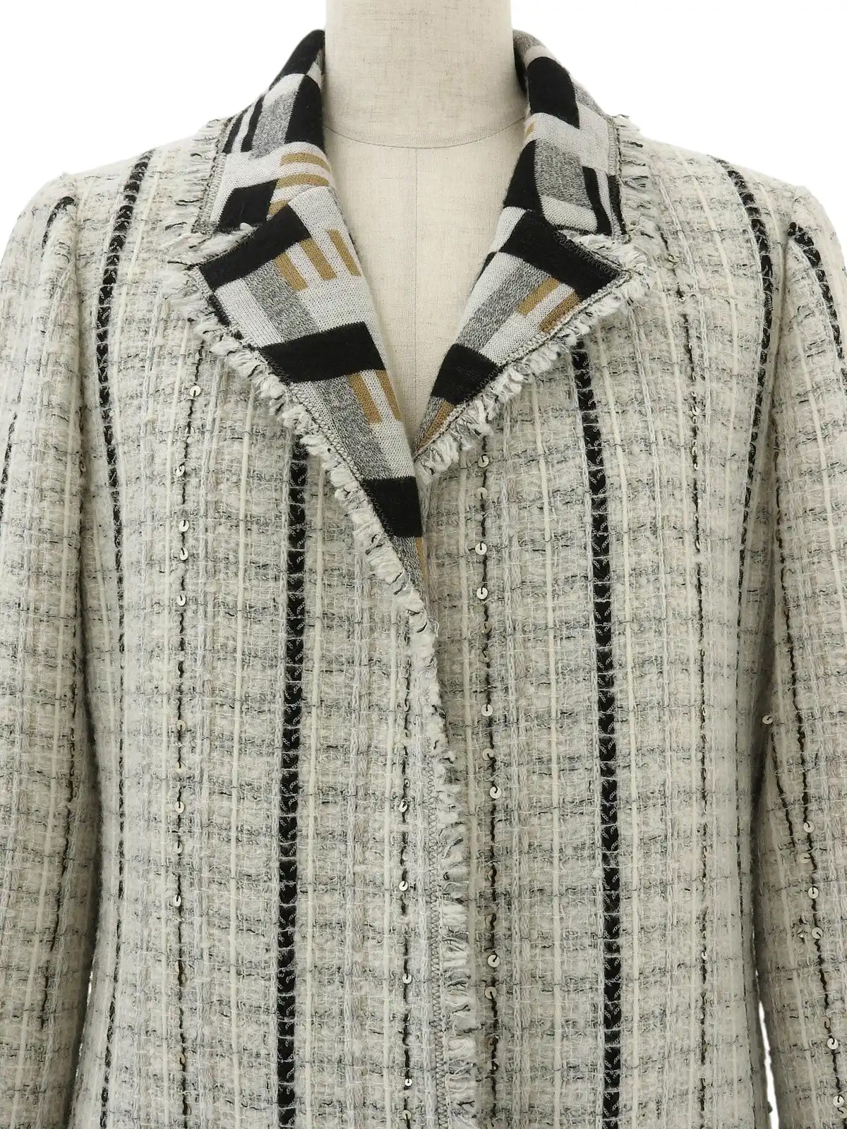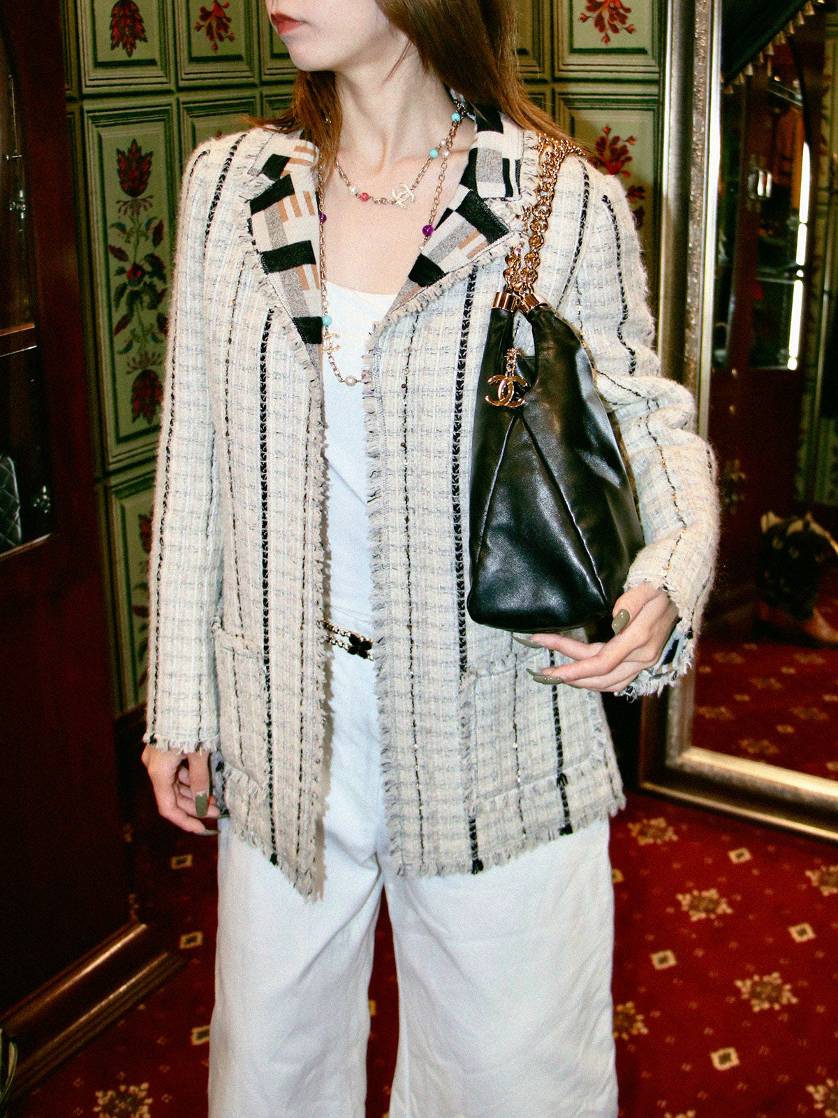 2004年製 ツイードリボンCCマークボタンジャケット ホワイト/ブラック/グレー