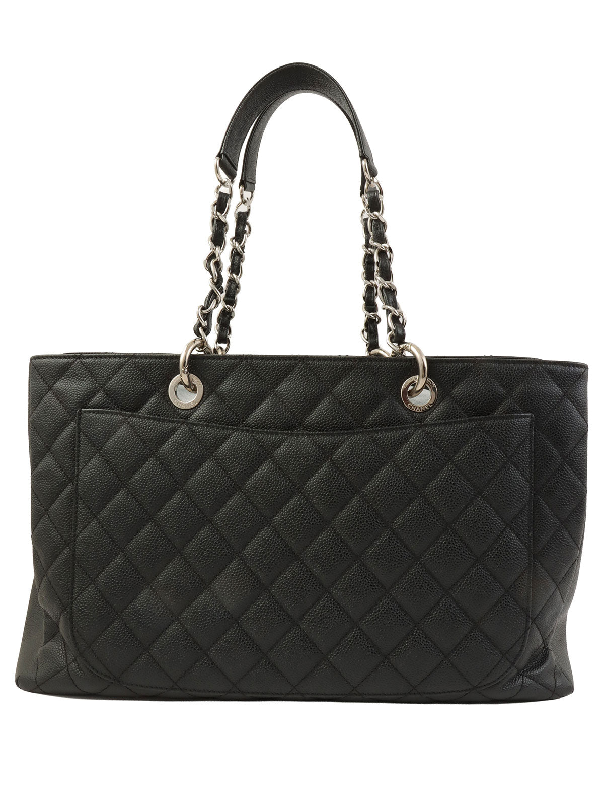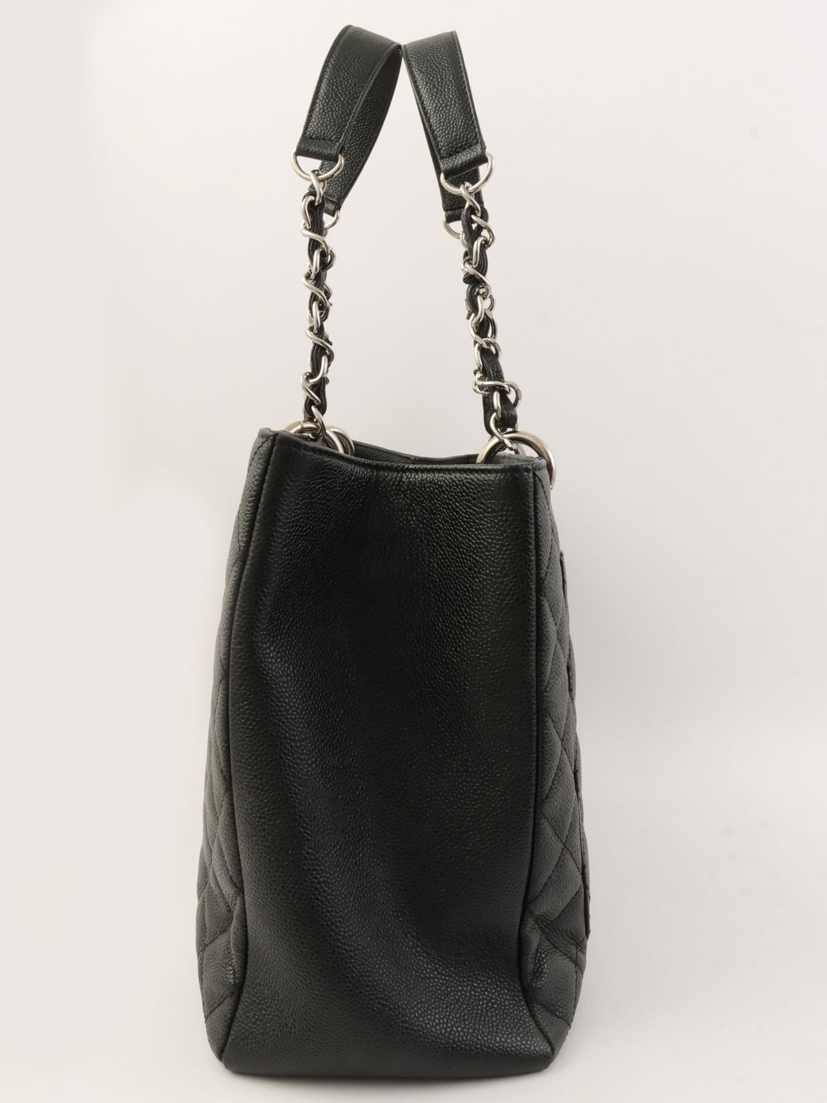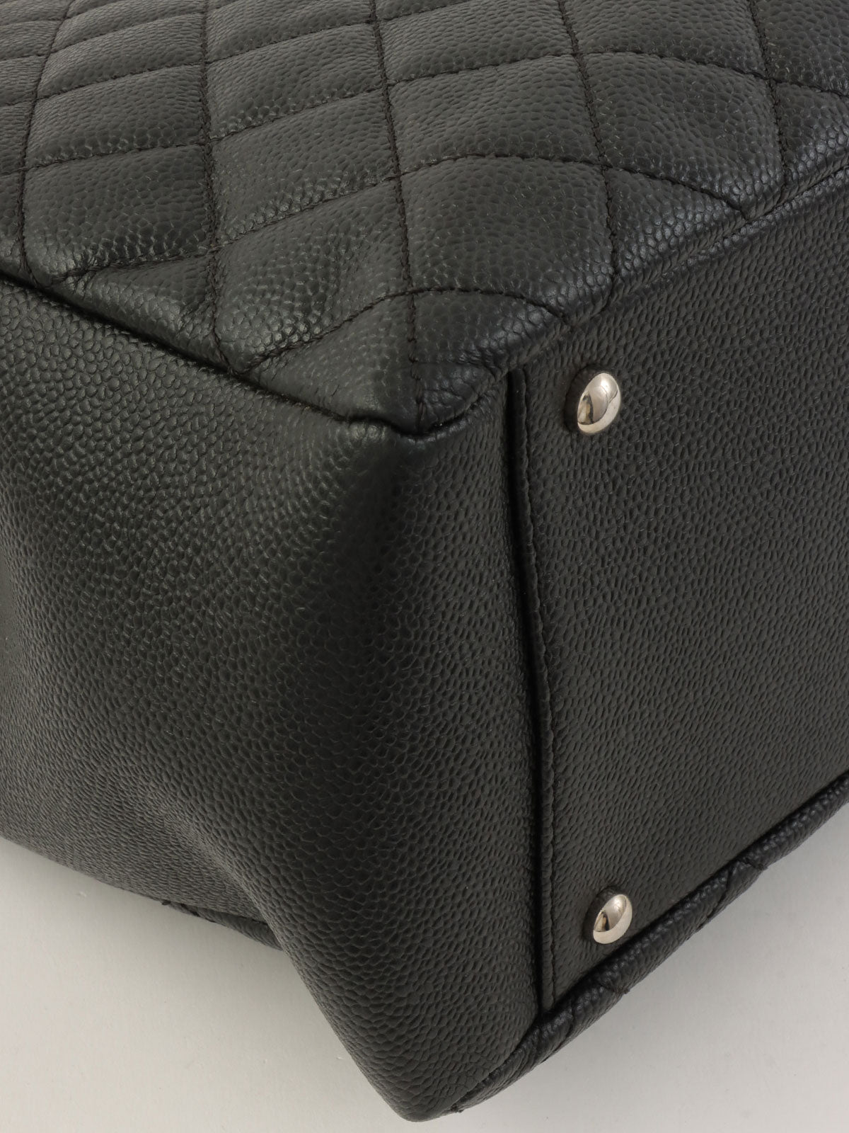 2012年頃製 キャビアスキンCCマークステッチチェーントートバッグ ブラック