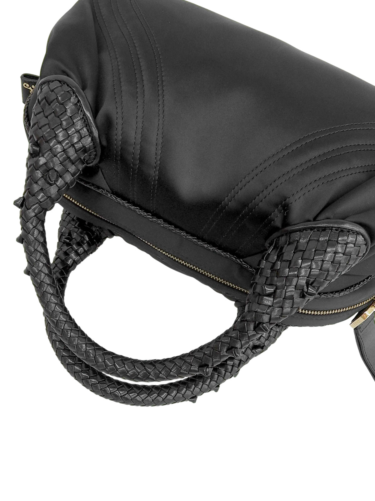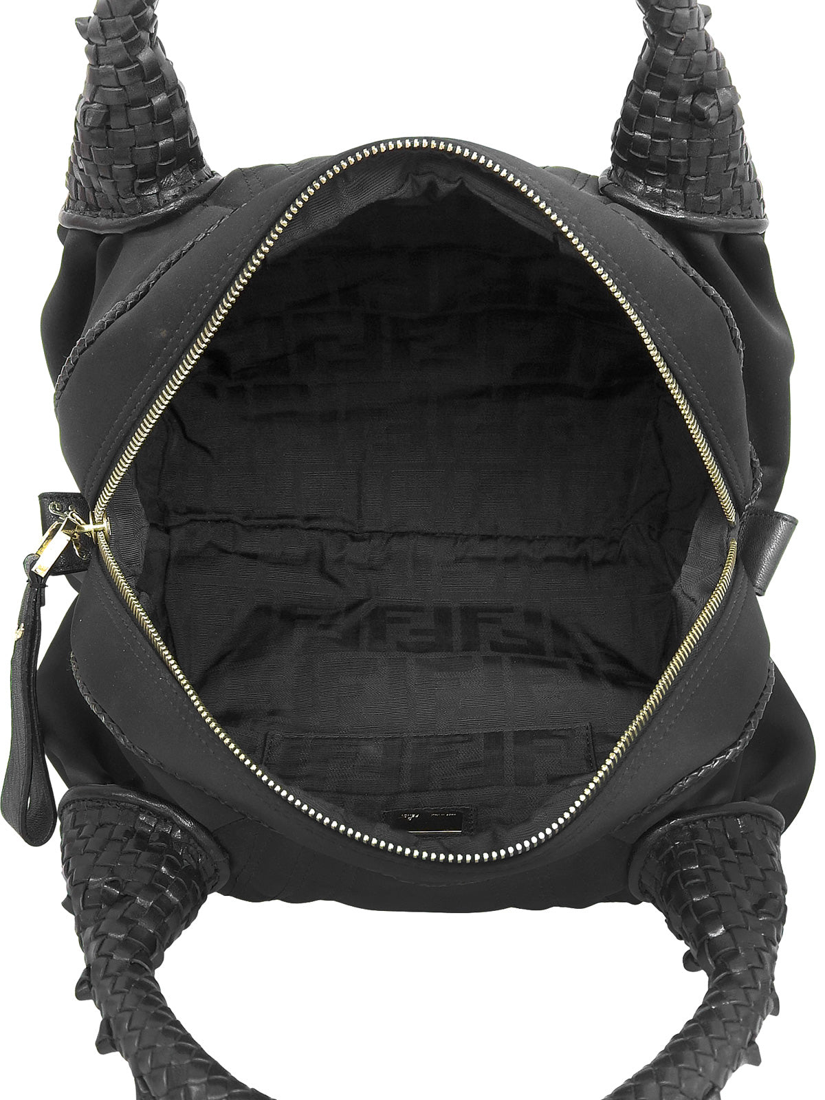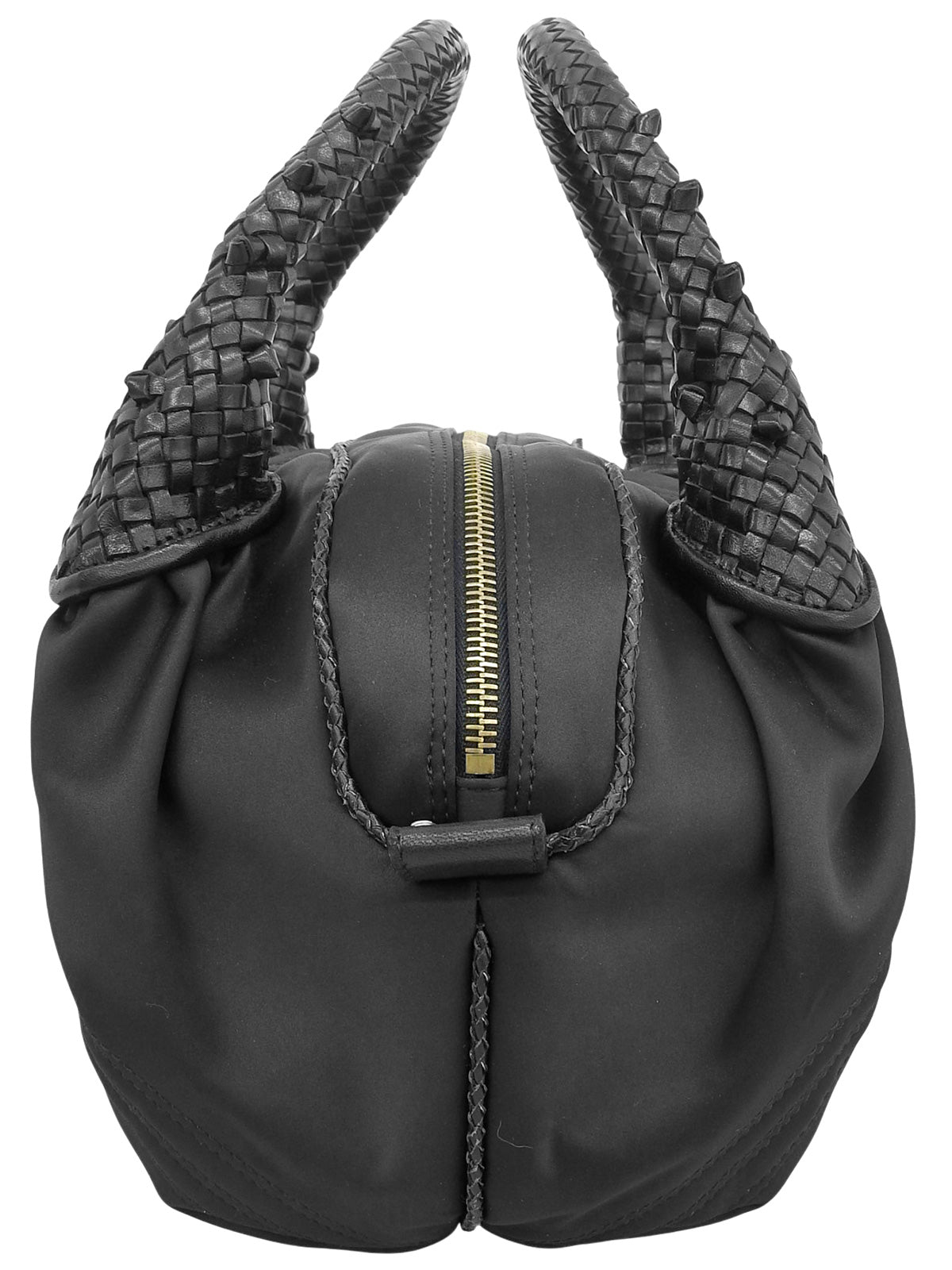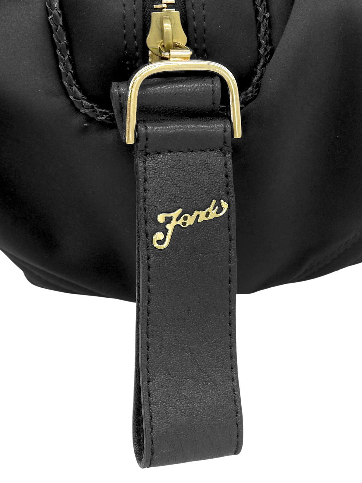 ナイロンレザーコンビロゴチャームハンドバッグ ブラック