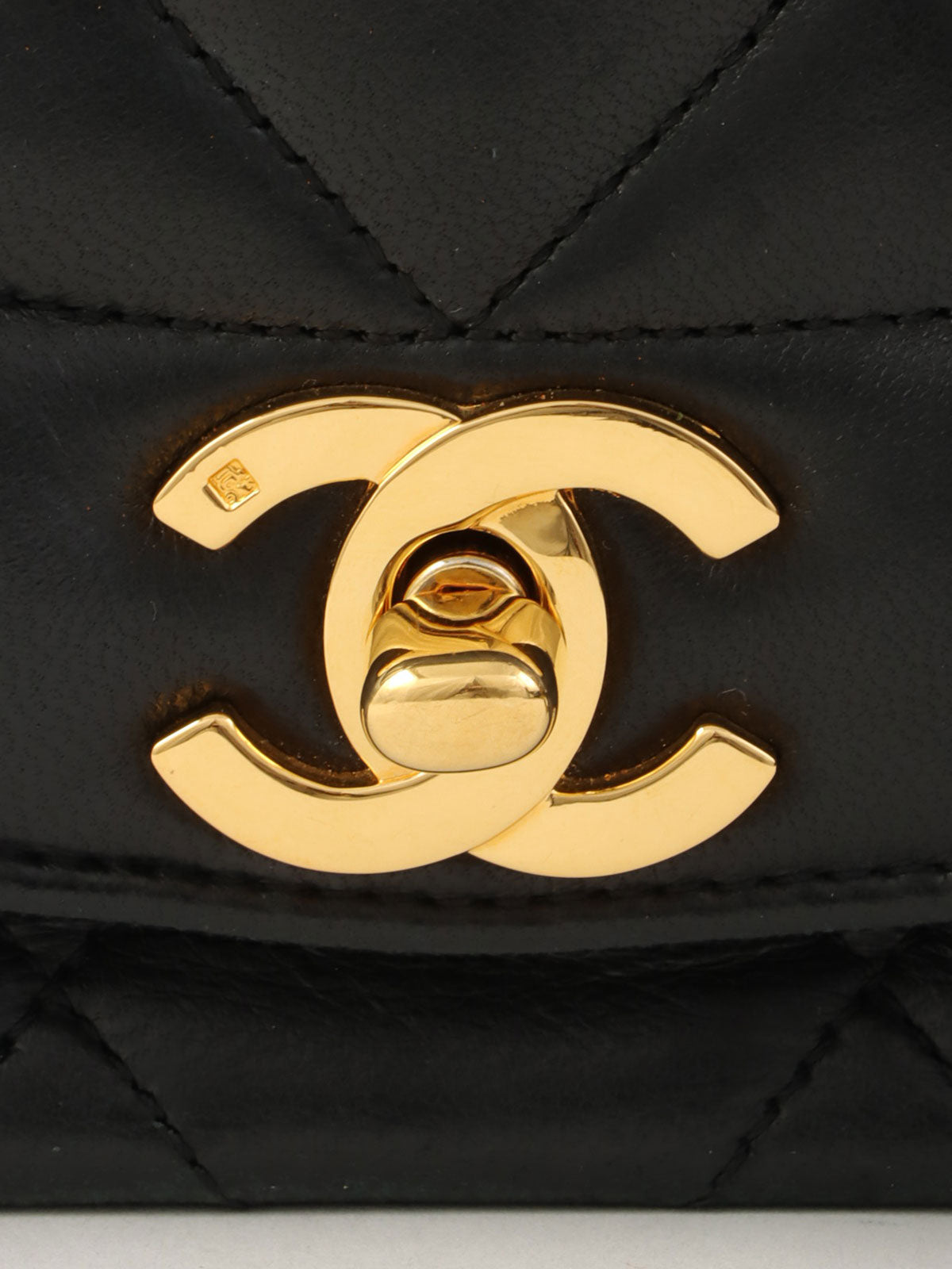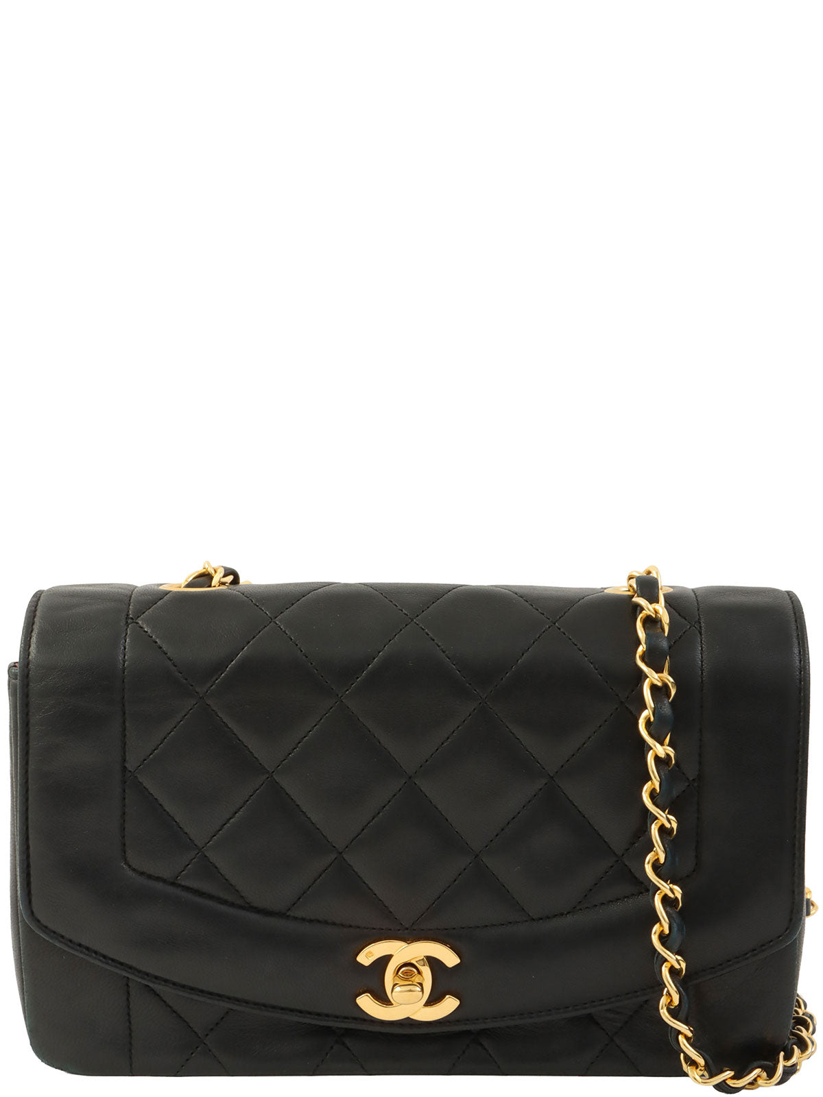 1990年頃製 ダイアナフラップチェーンバッグ22cm ブラック