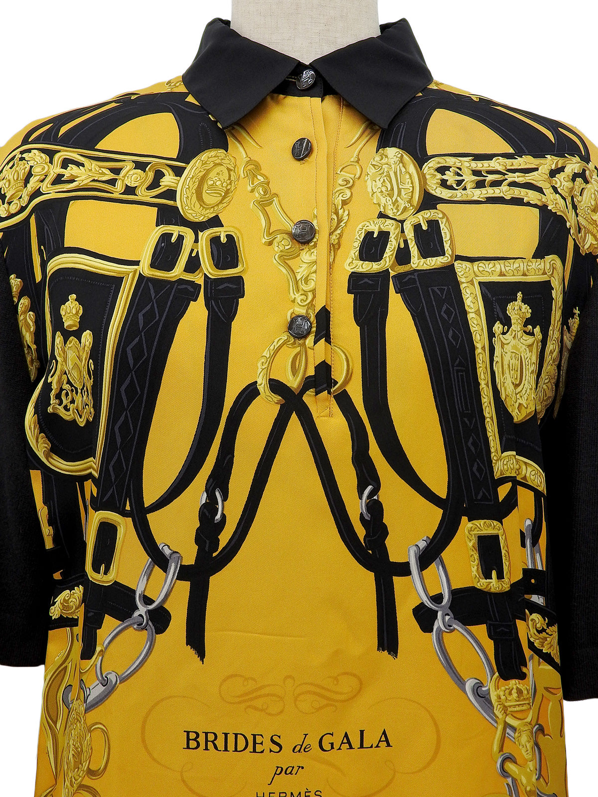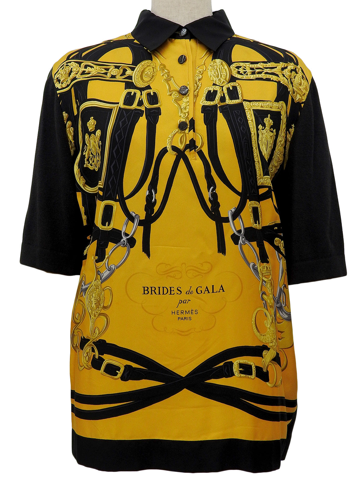 シルクニットコンビスカーフパターンニットポロシャツ ブラック/イエロー