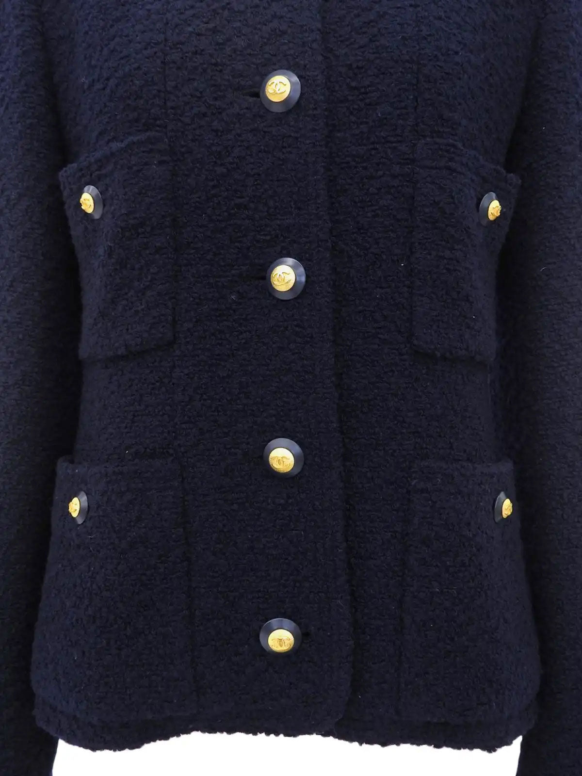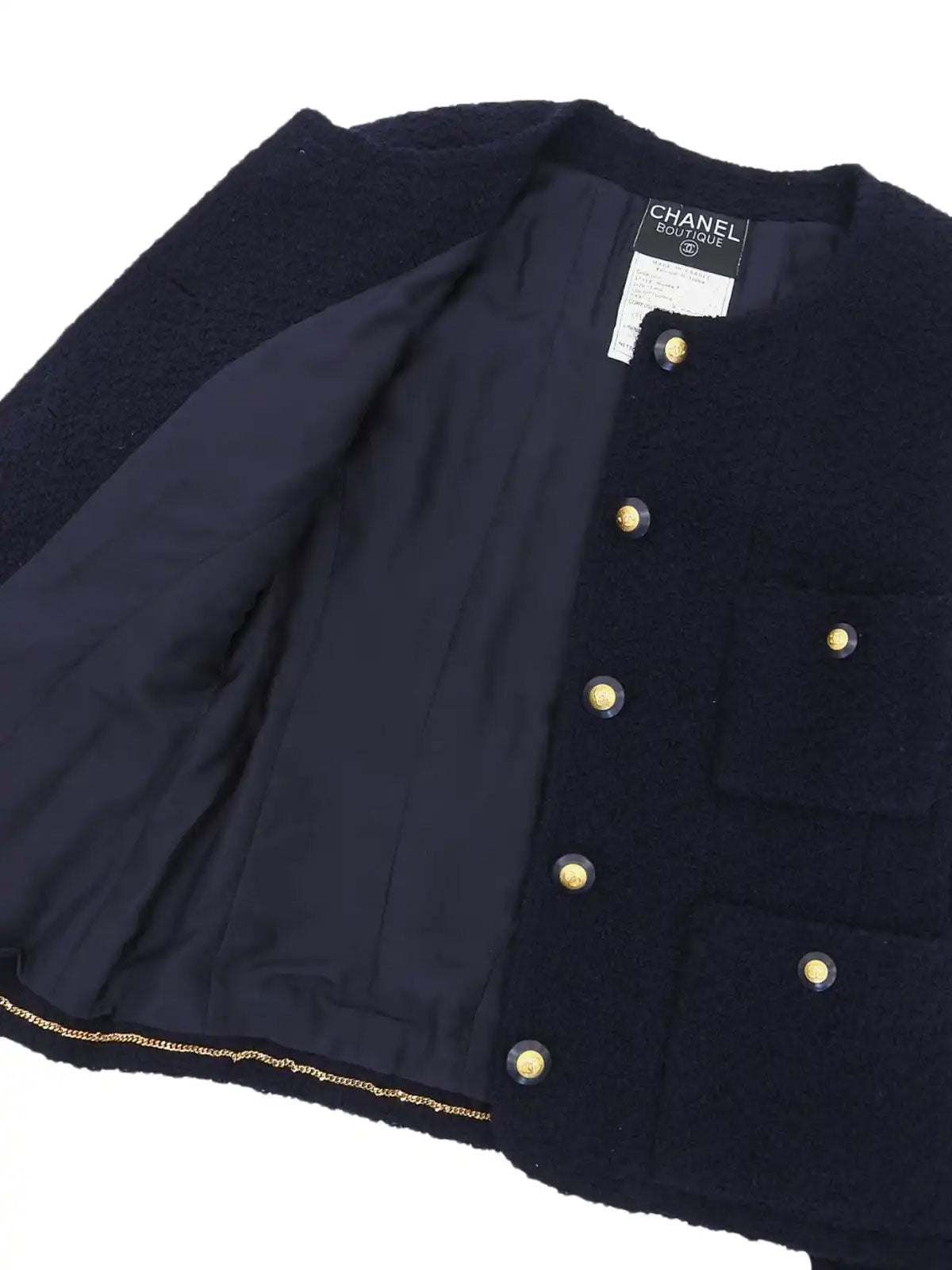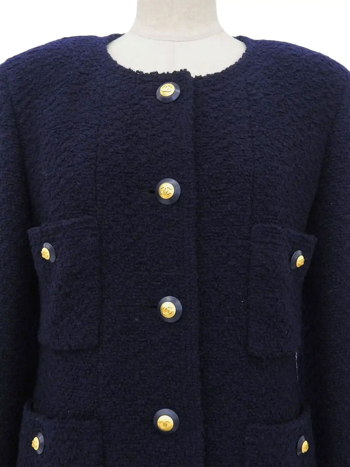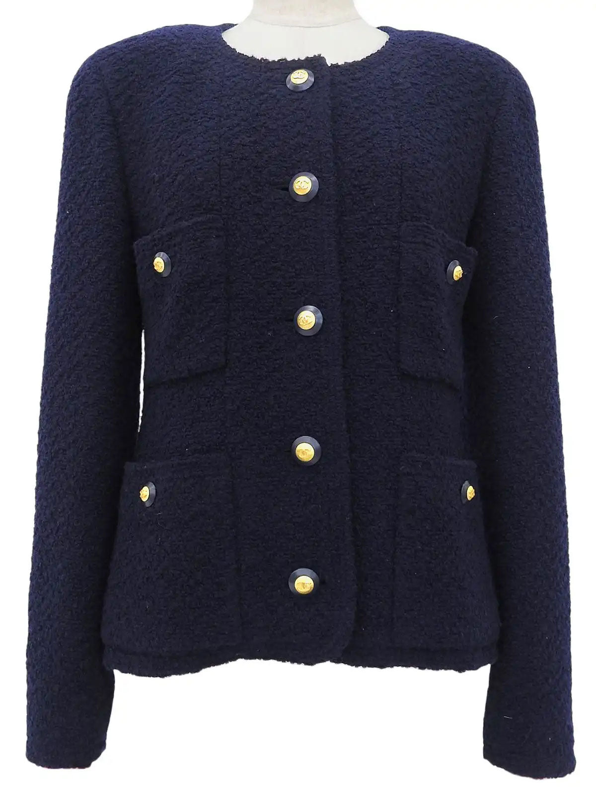1993年製 ウールCCマークボタンノーカラージャケット ネイビー