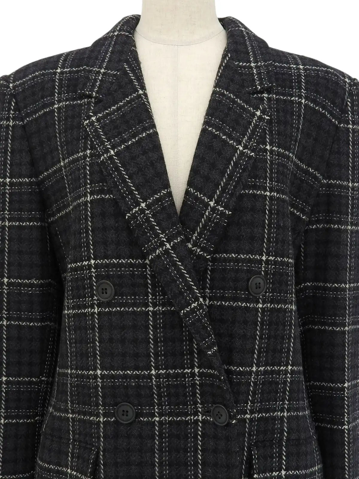 チェックパターンダブルブレストジャケット チャコールグレー/ホワイト/ブラック