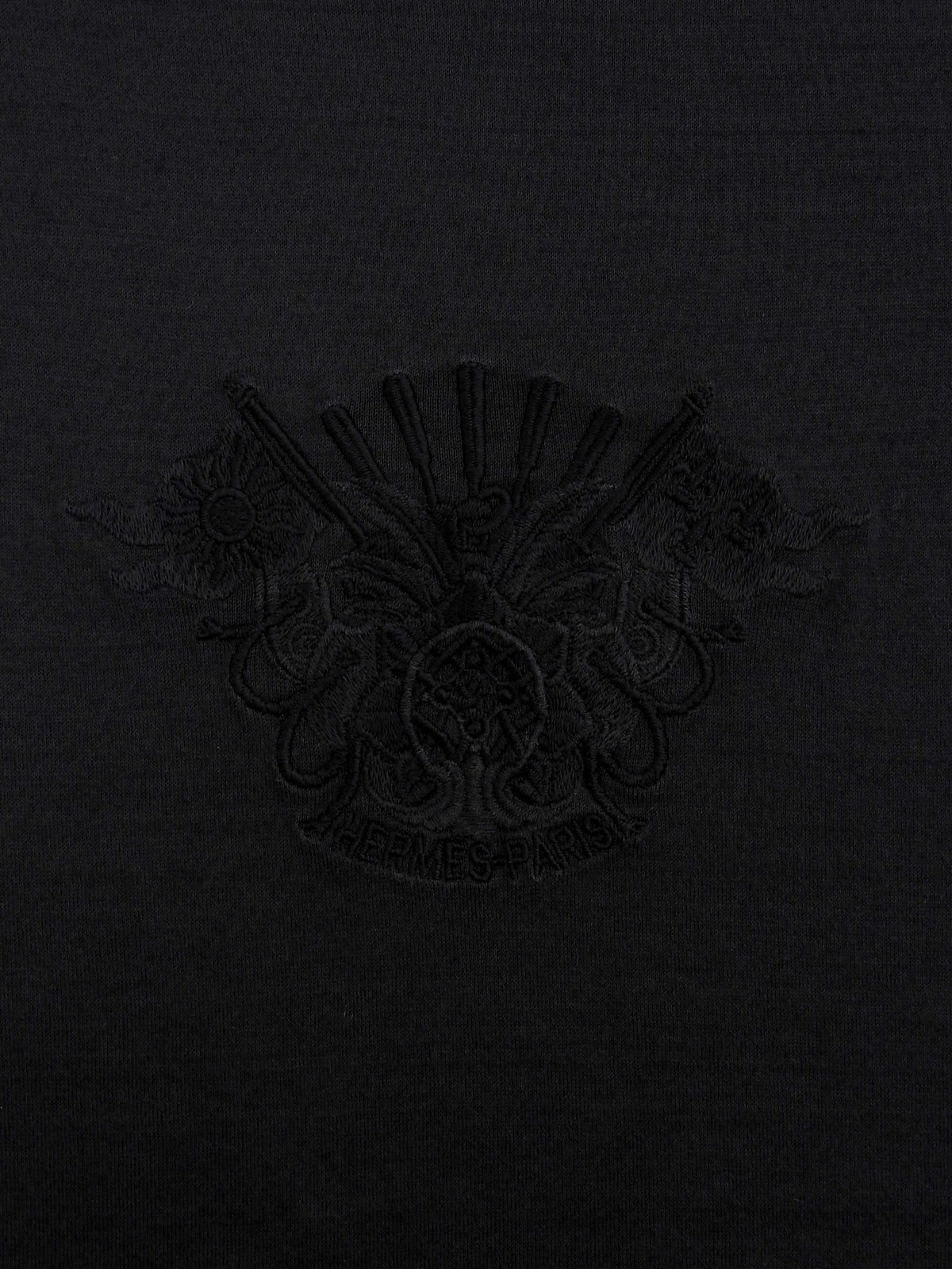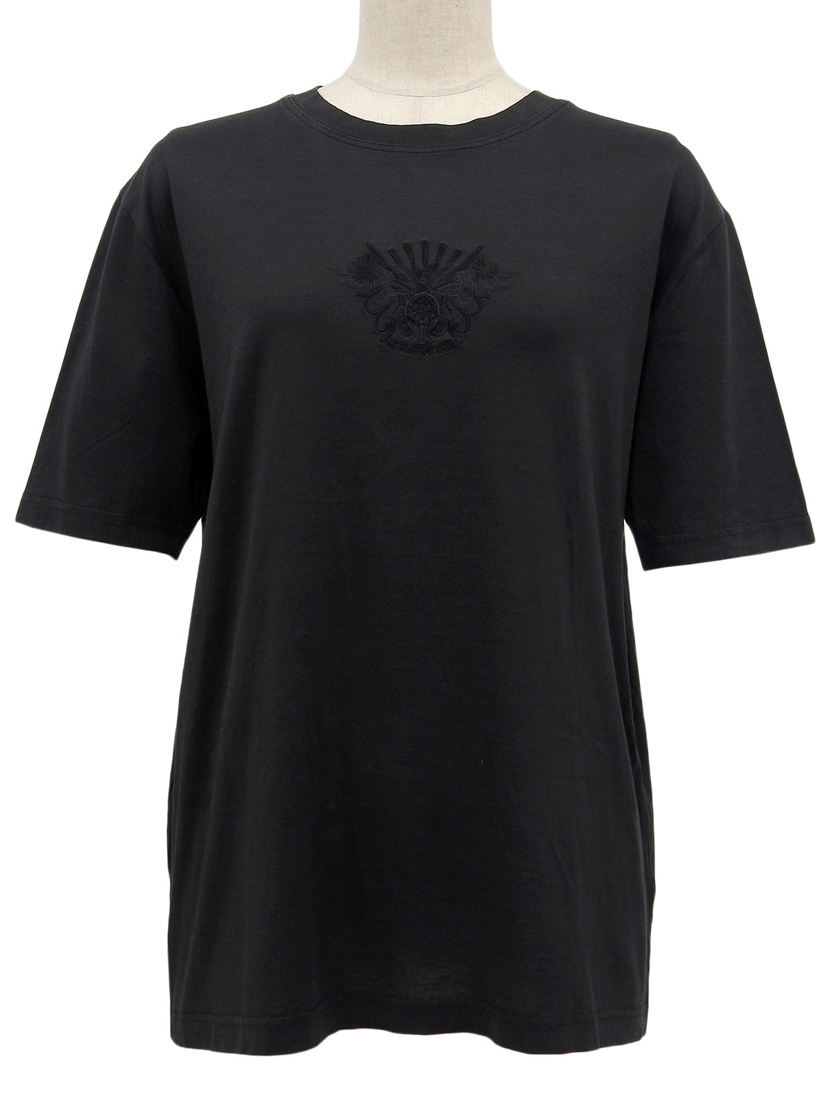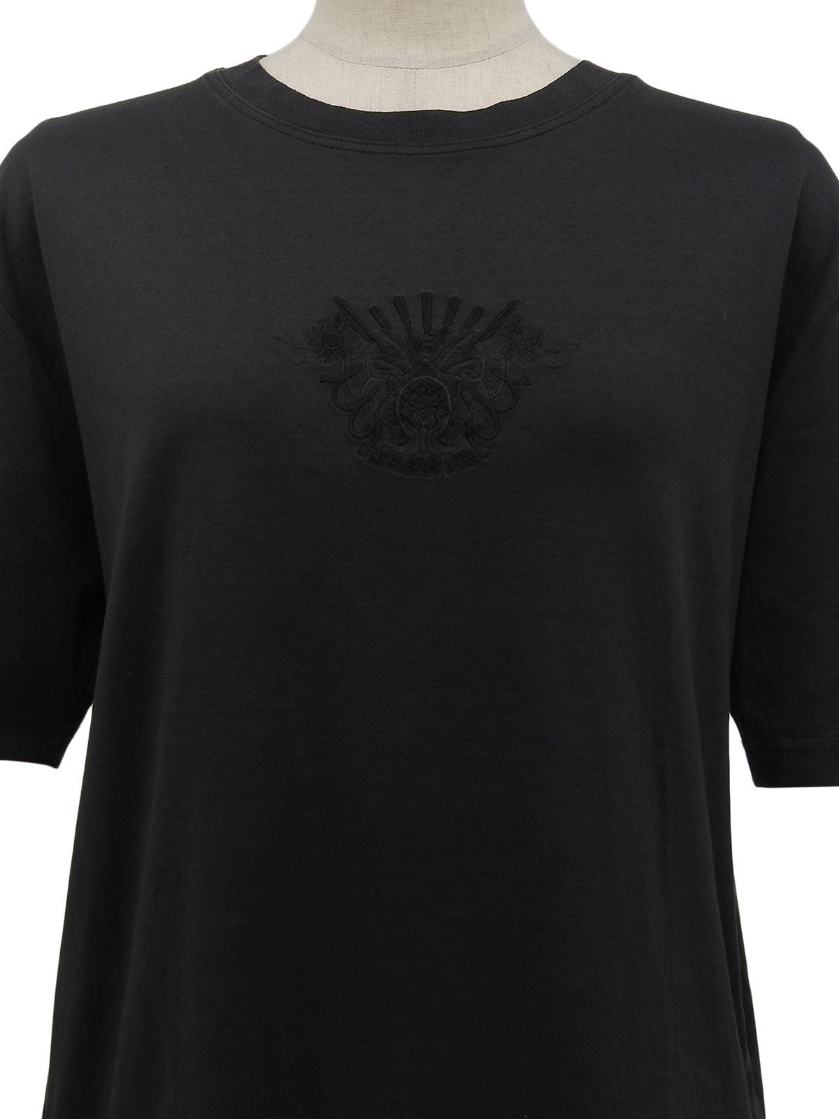 エンブレム刺繍ハーフスリーブトップス ブラック