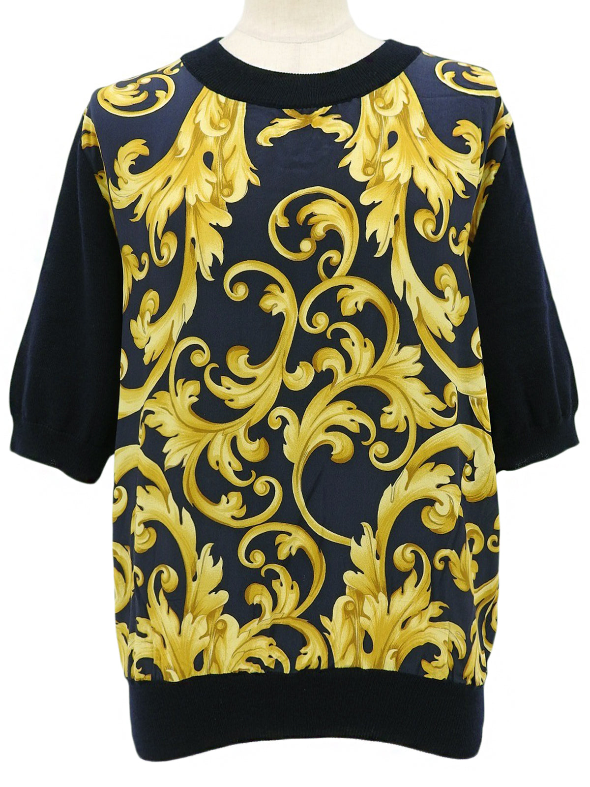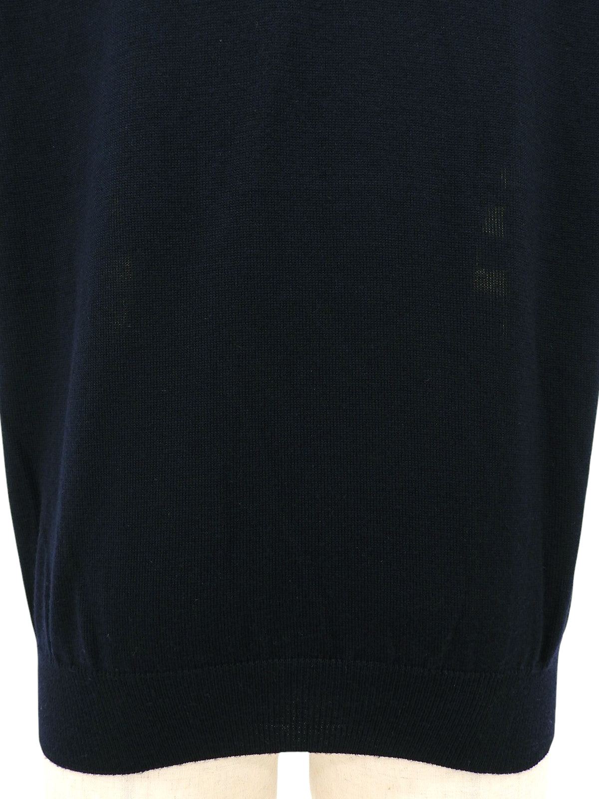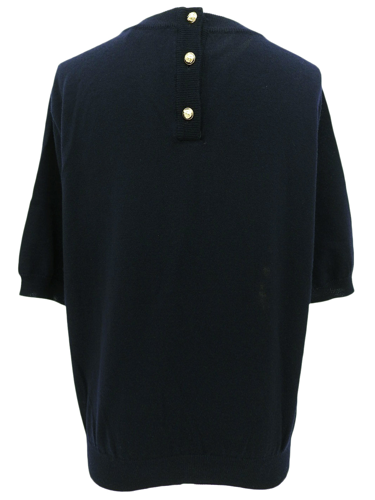 ウールシルクコンビデザイン半袖トップス ネイビー